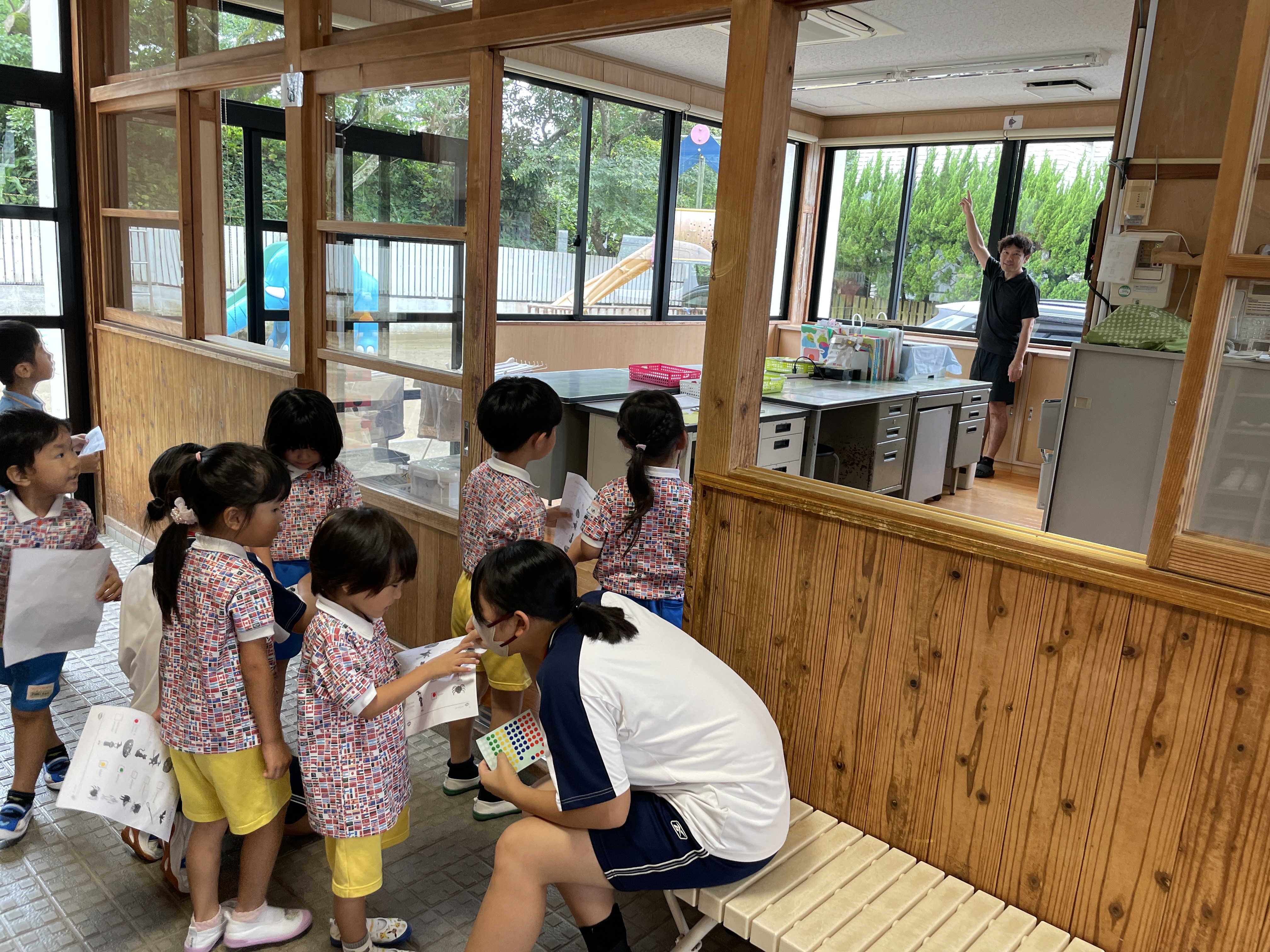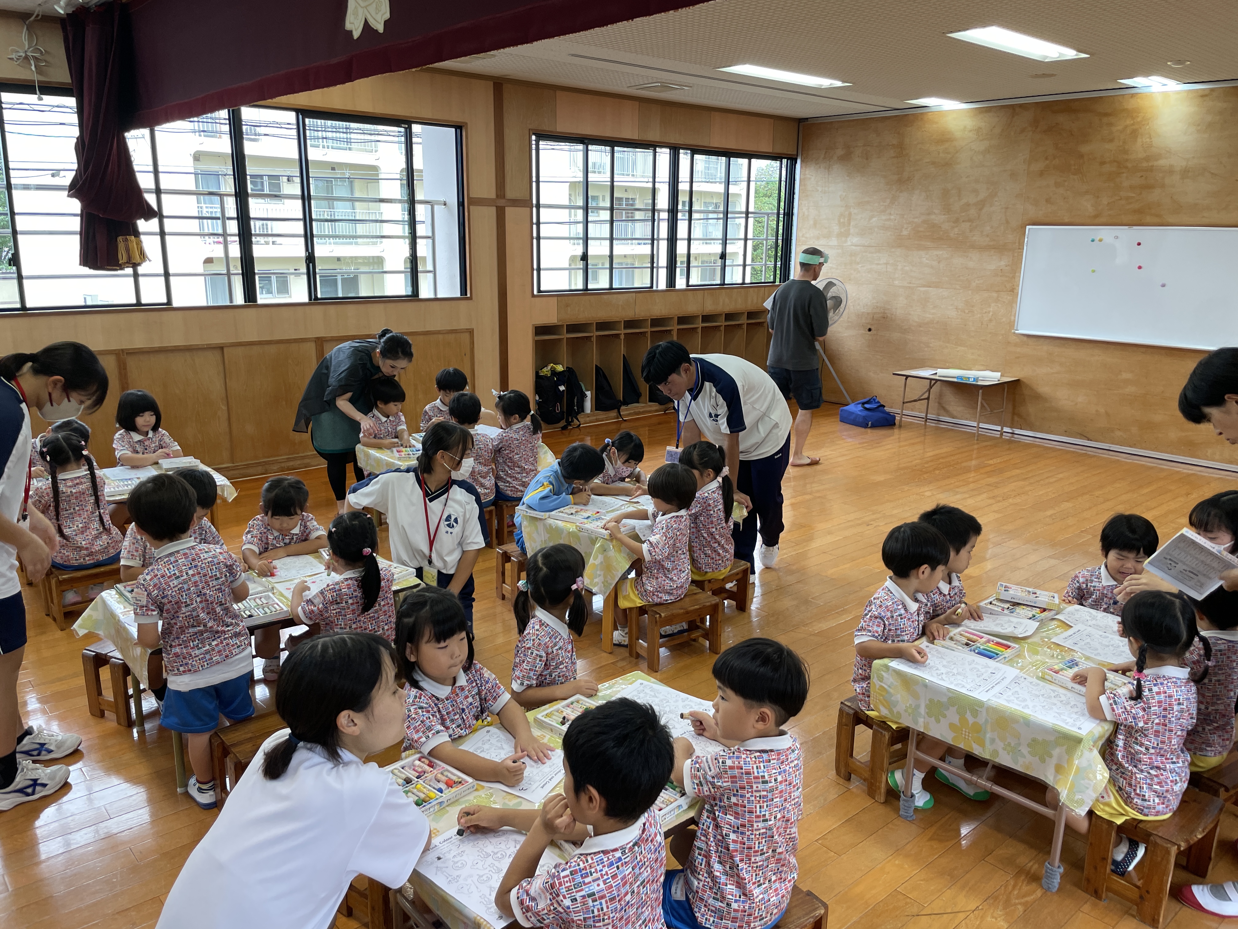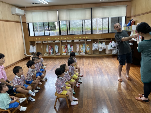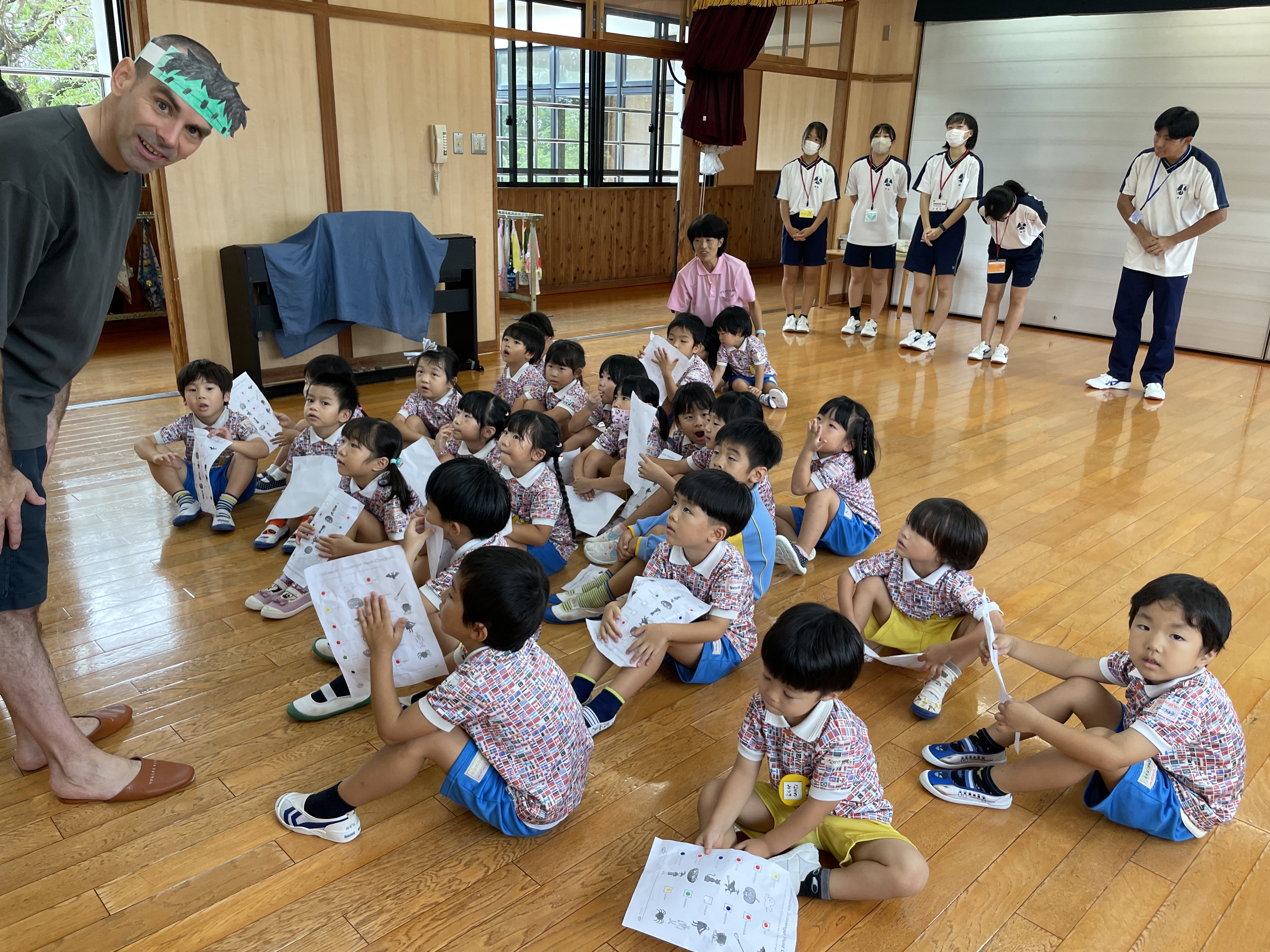 バンビさんは、いつも通りの挨拶や色の練習をしました。