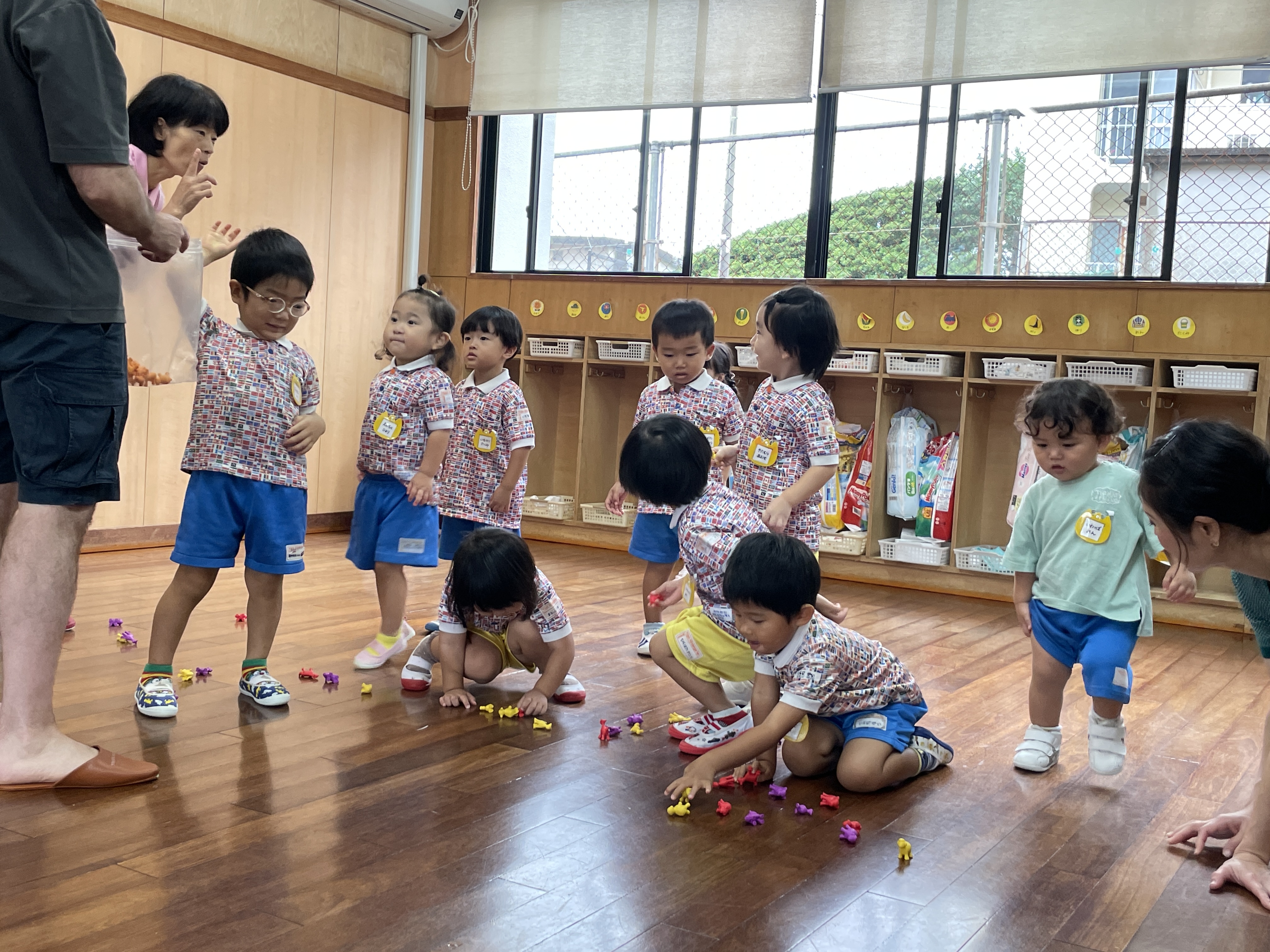 はらぺこあおむしの絵本も見ましたよ。最後に先生が言った色のおもちゃを