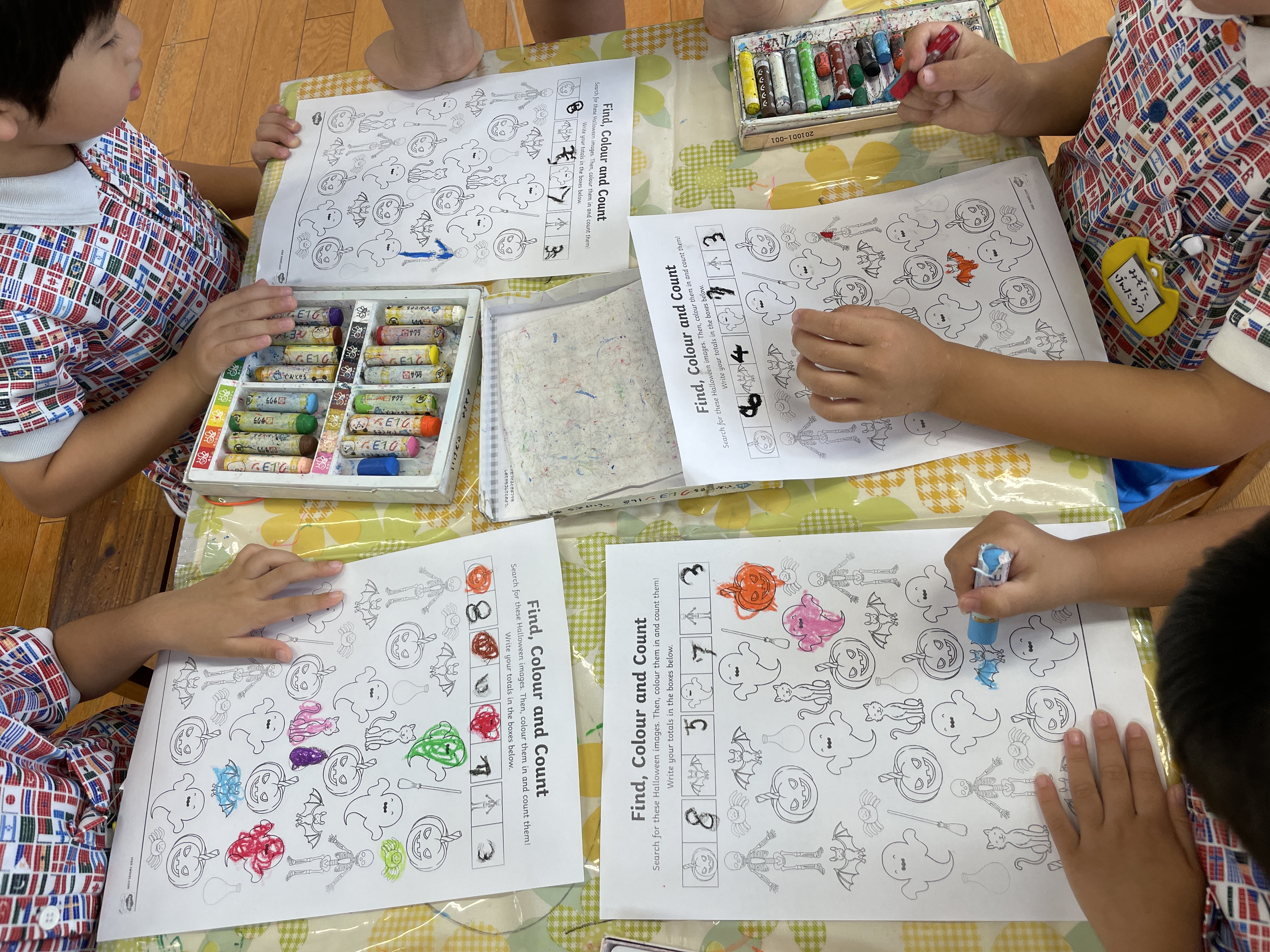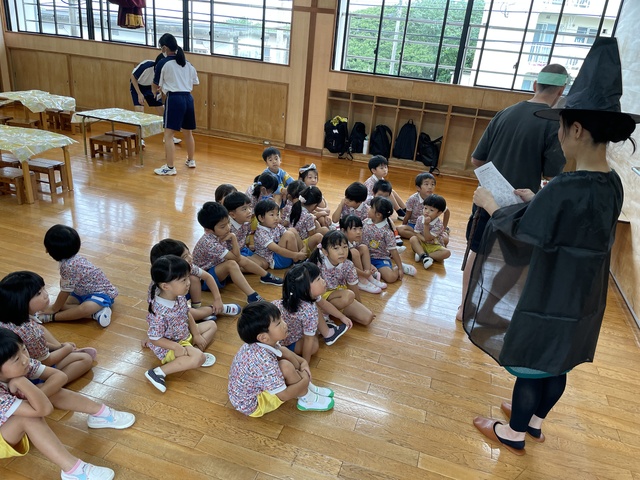 楽しみました。最後は幼稚園に隠れたハロウィンのキャラクターを探しに行きました。
