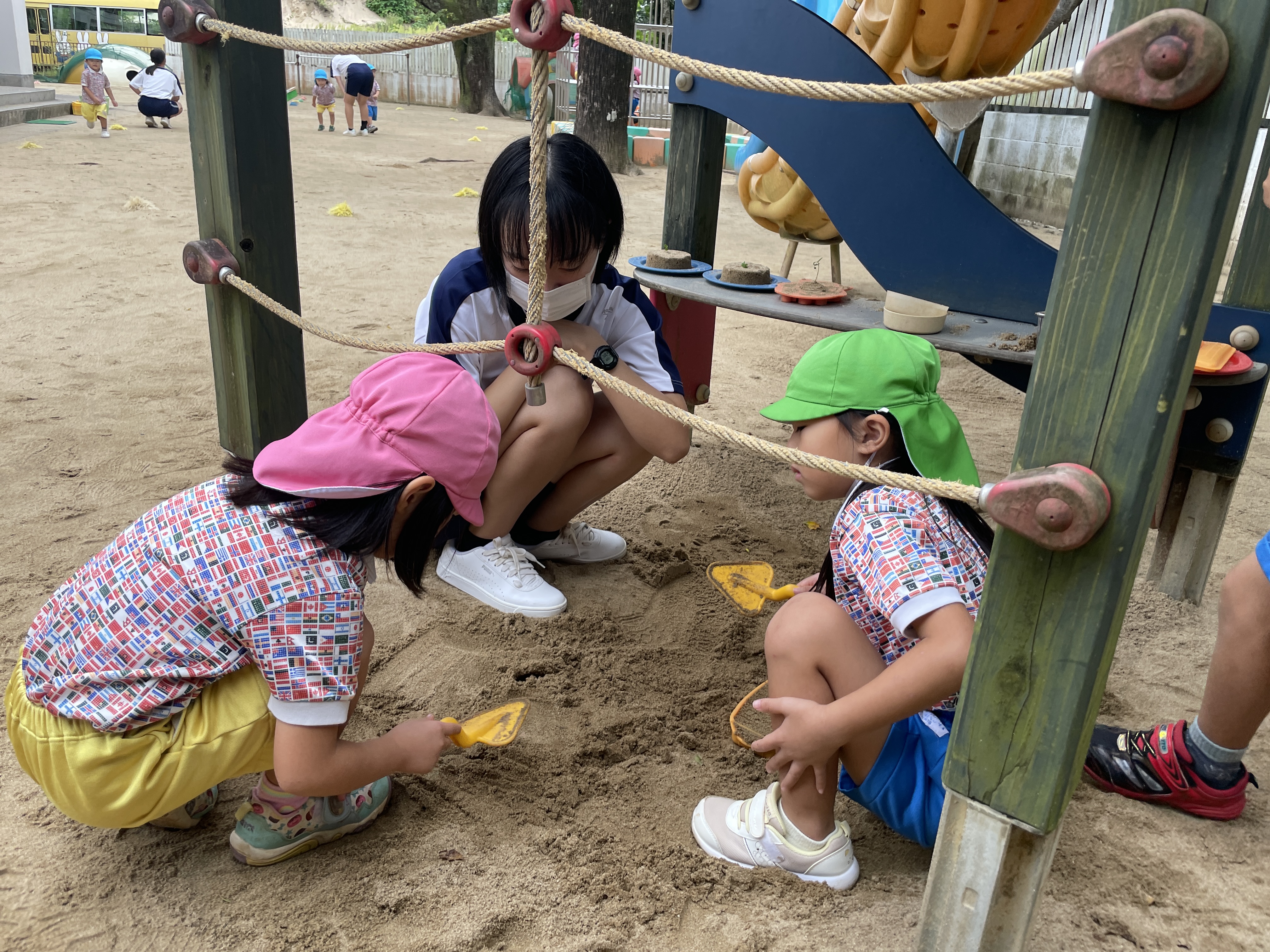 園庭やお部屋でいっぱい遊んだり、絵本を読んでもらったり