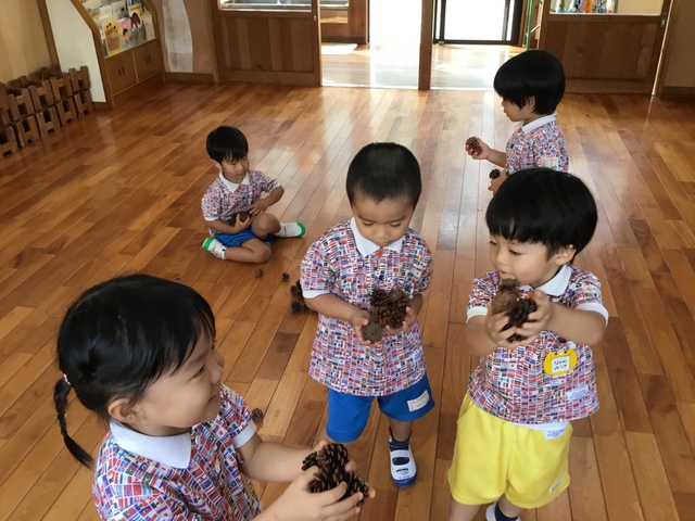 きのこや松ぼっくりがとれると大喜びでした\(^o^)/