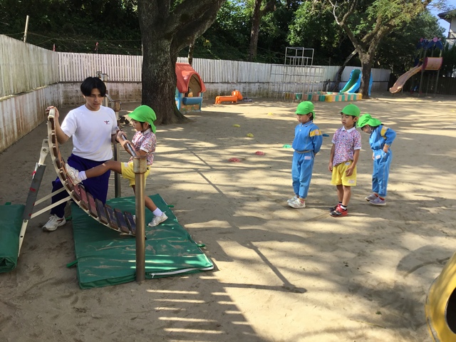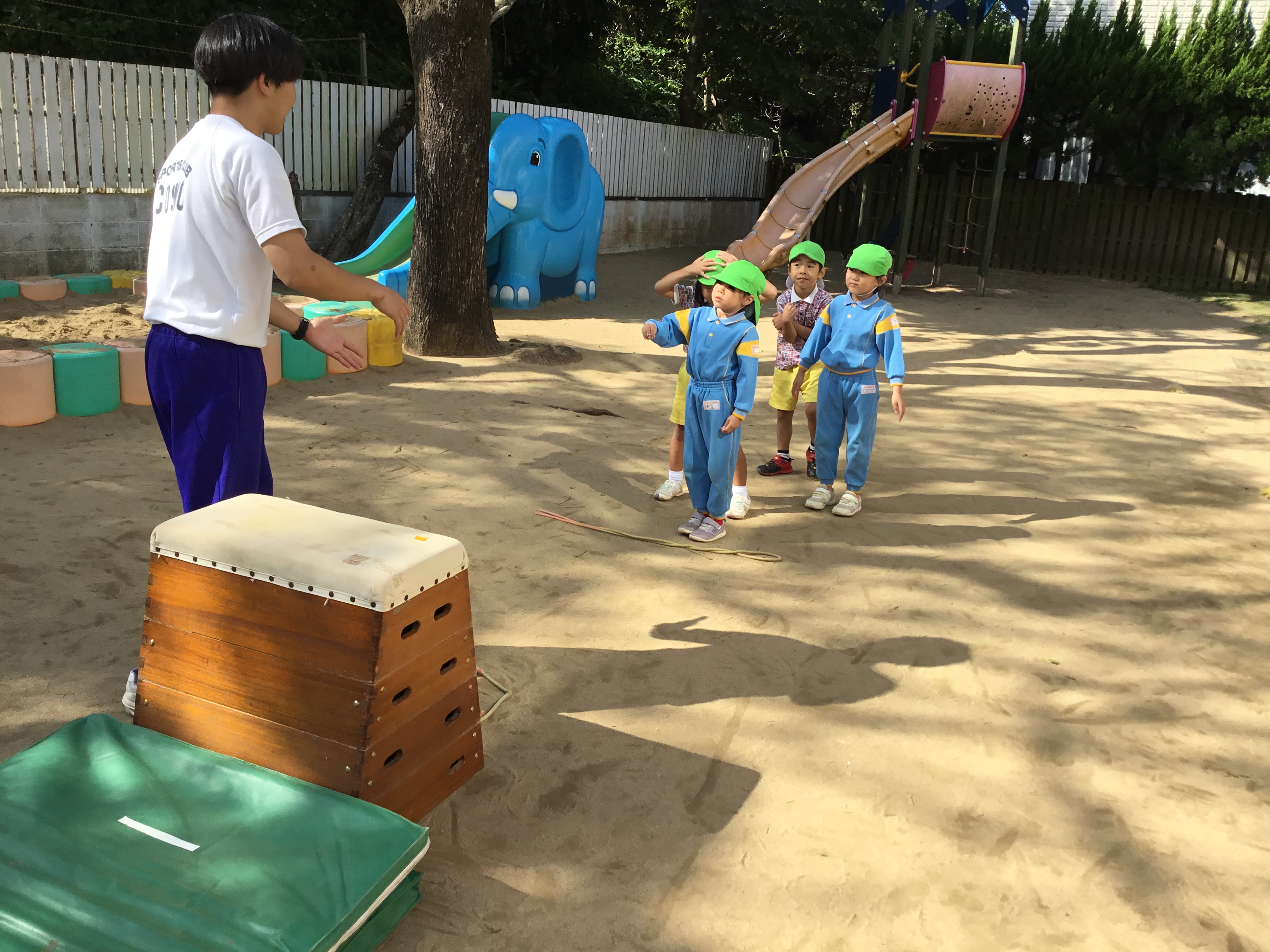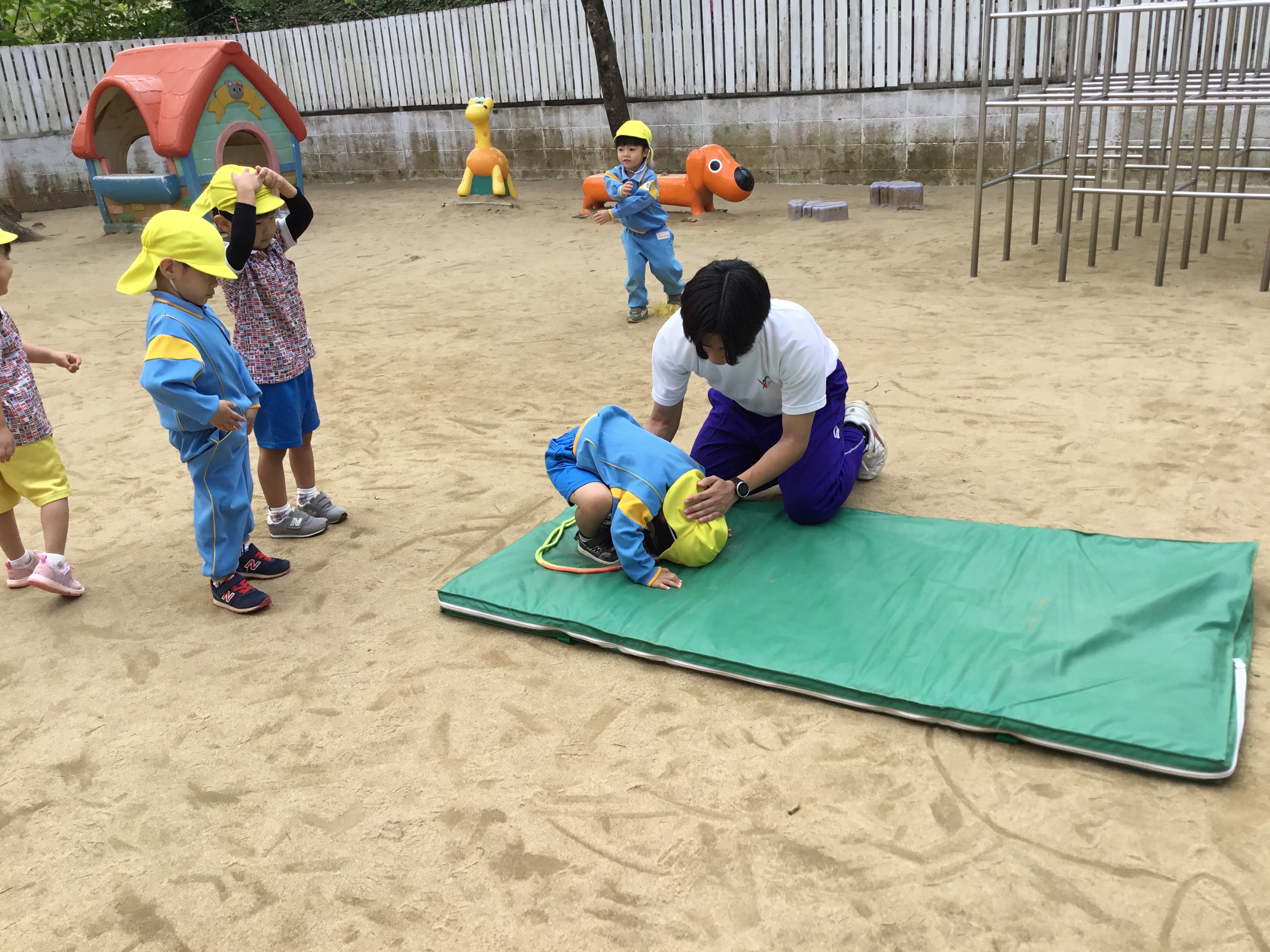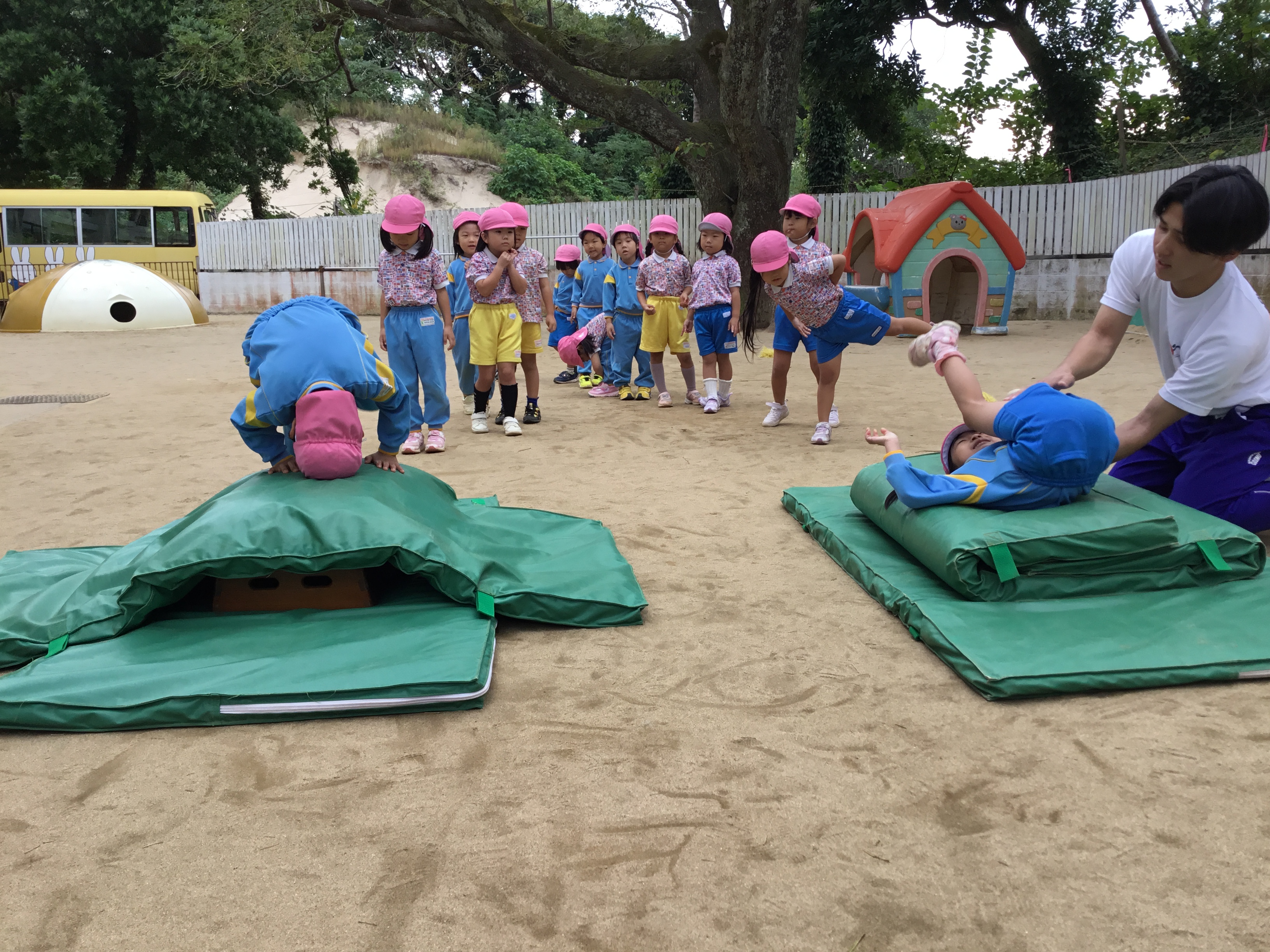 鉄棒では前回り、逆上がりの練習が始まりました。