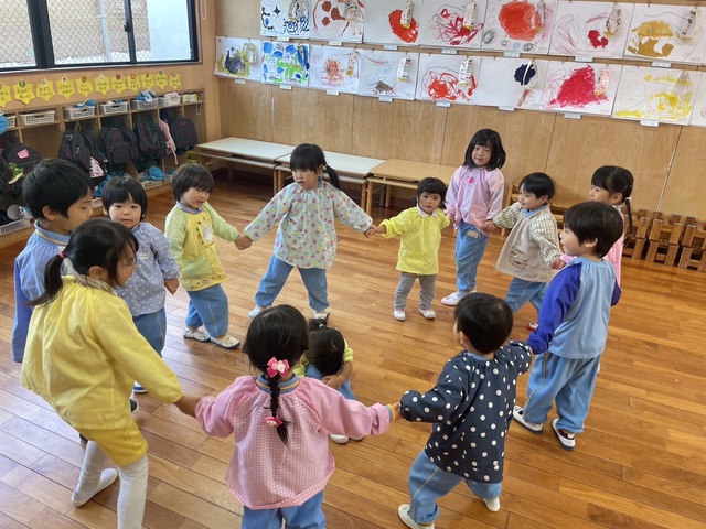*かごめかごめ・・・歌を歌いだすと自然とぐるぐる回って楽しんでいました。