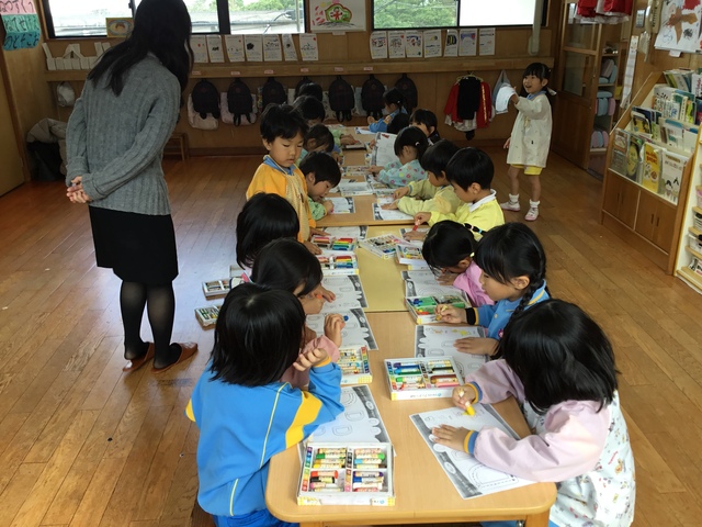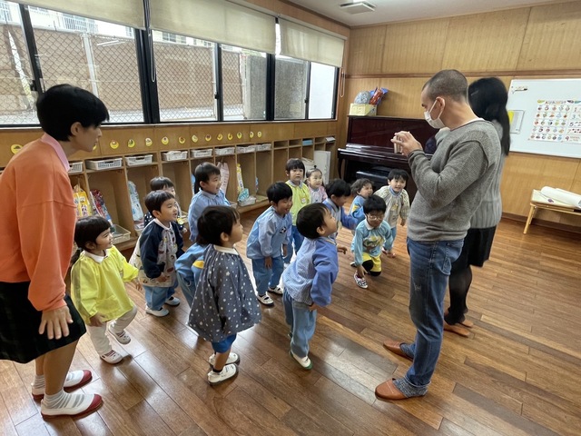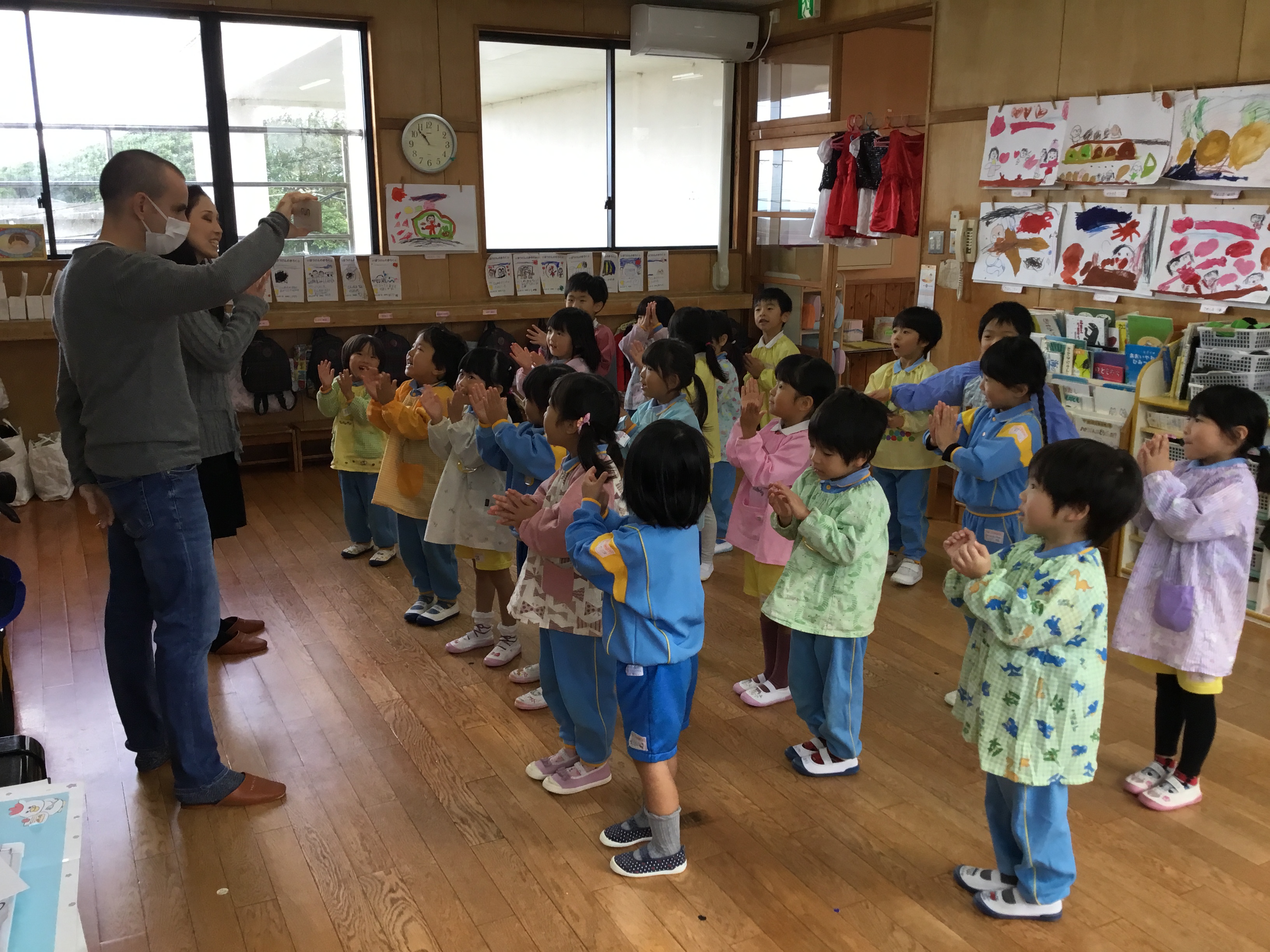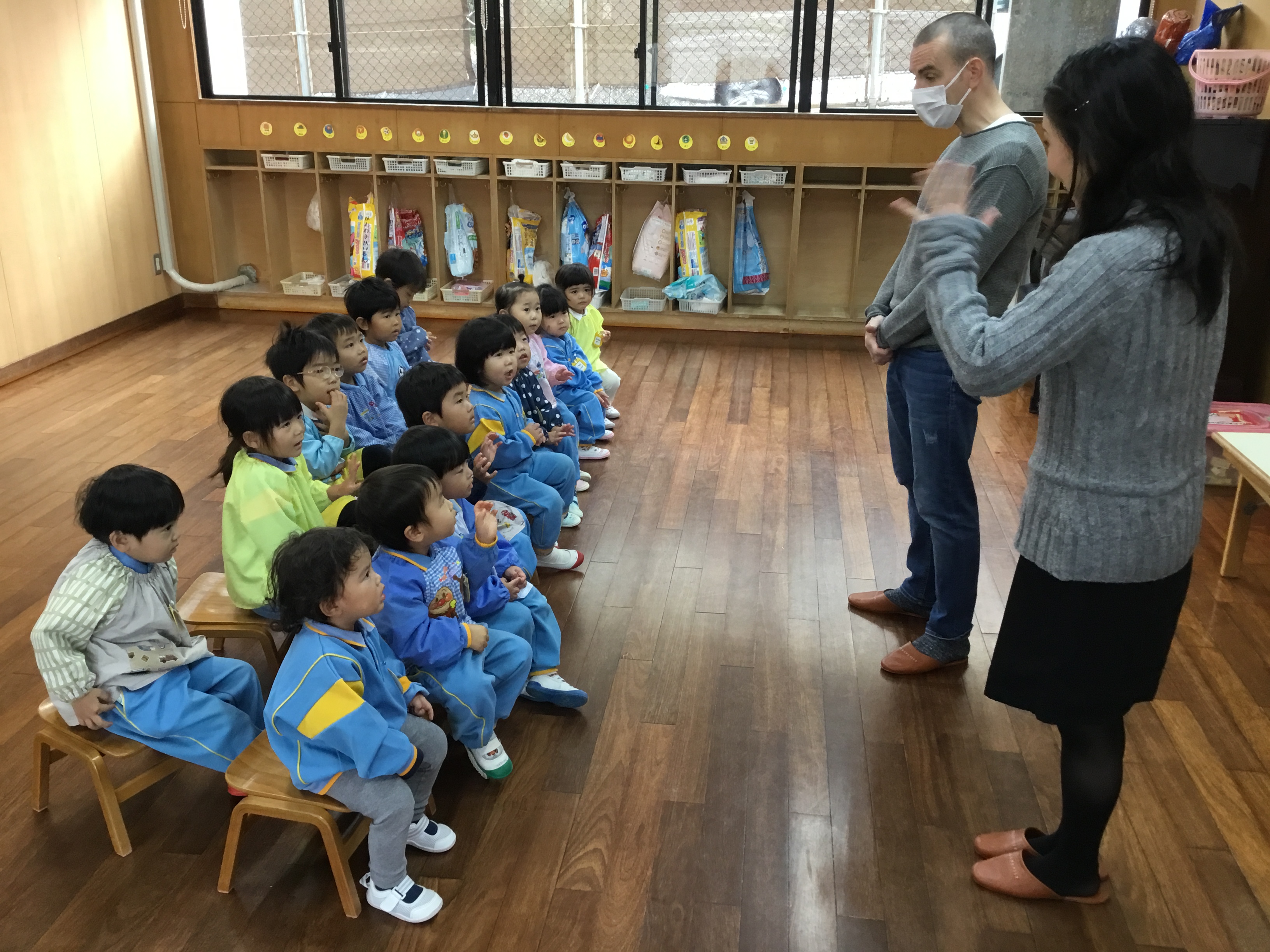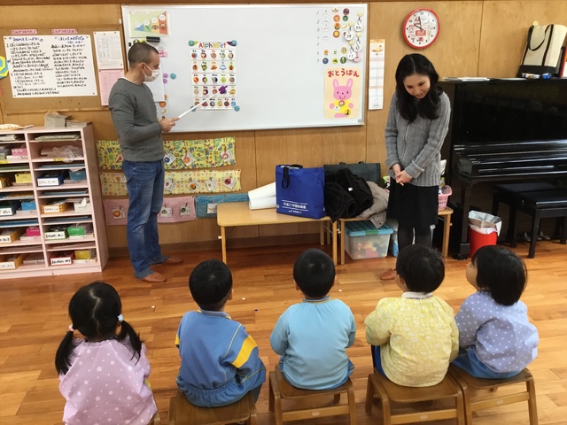 挨拶やアルファベット、発音等真似をしながら楽しむバンビさん・ダンボさん。