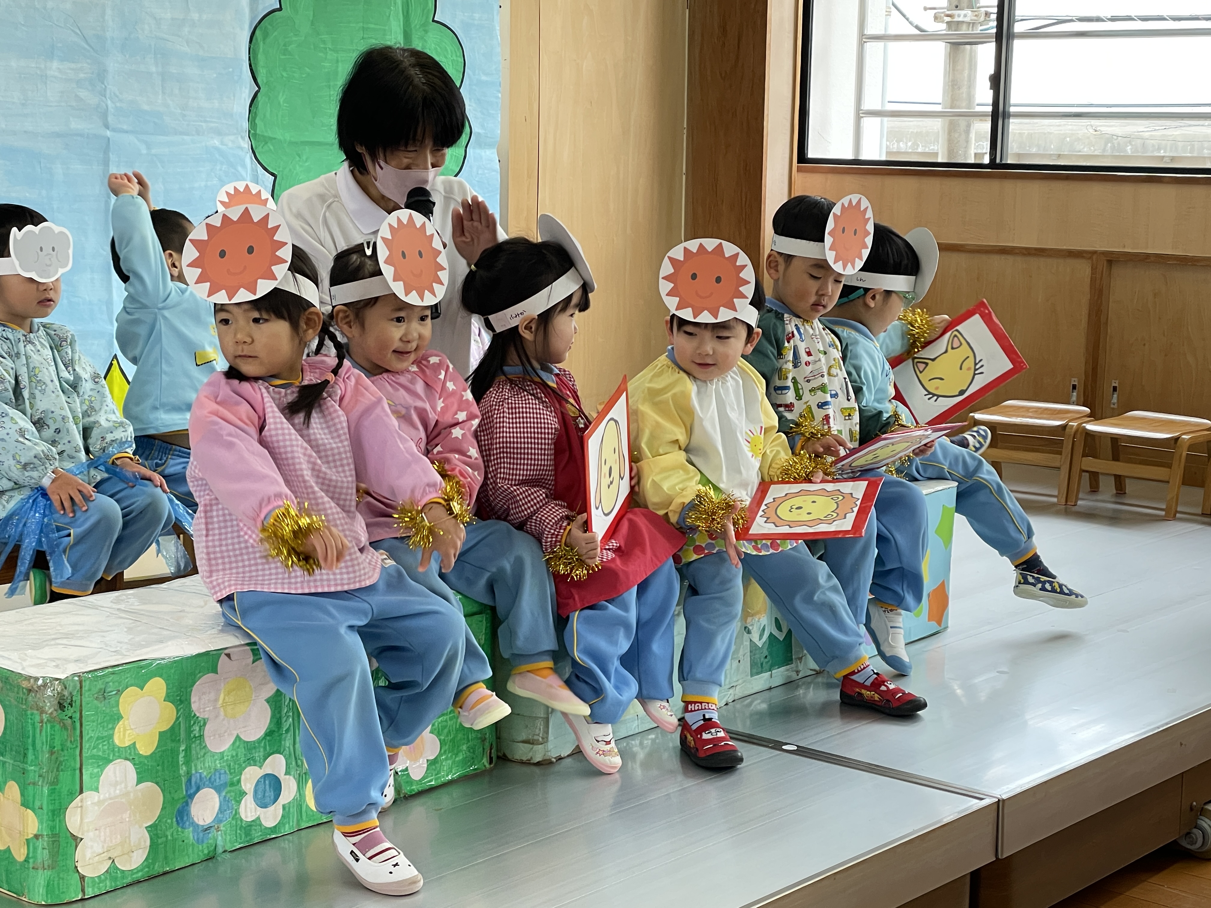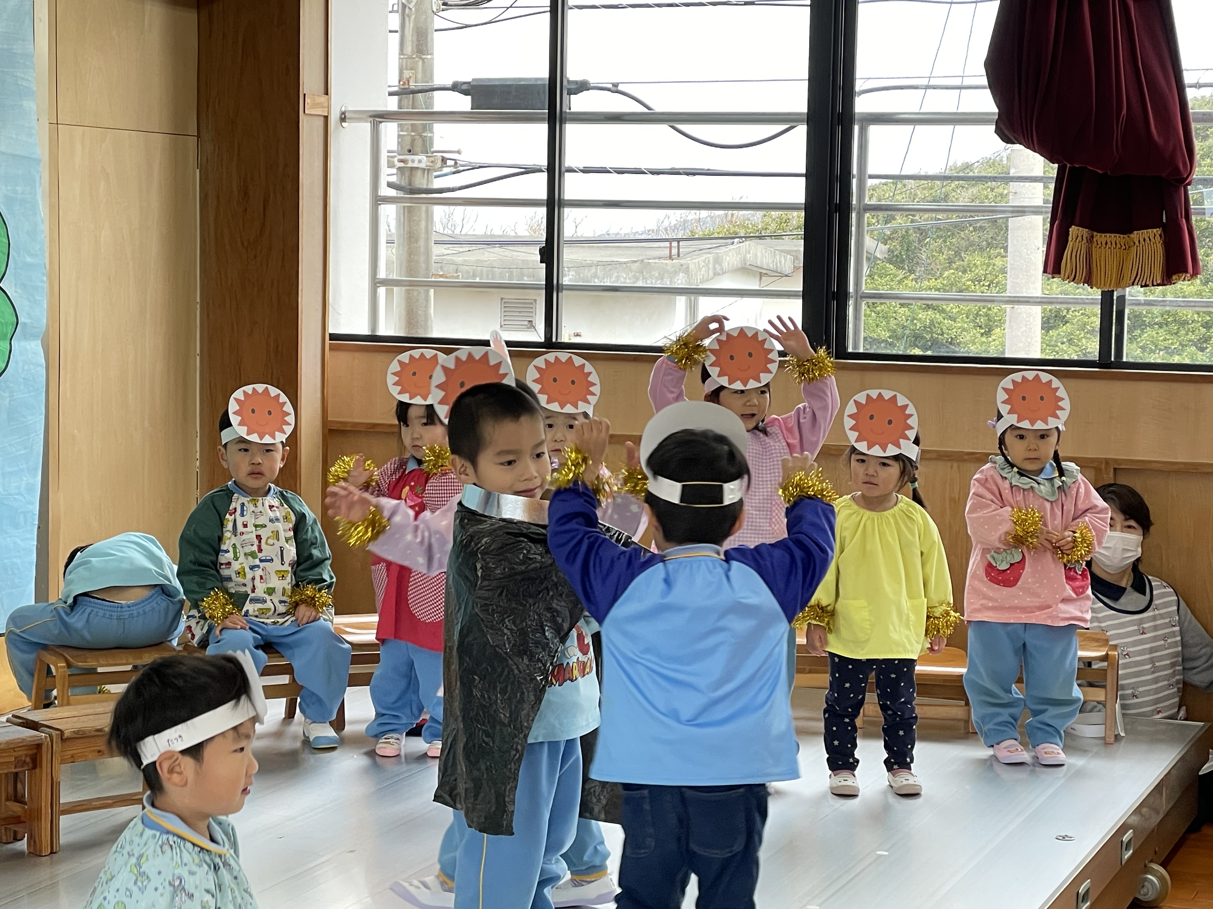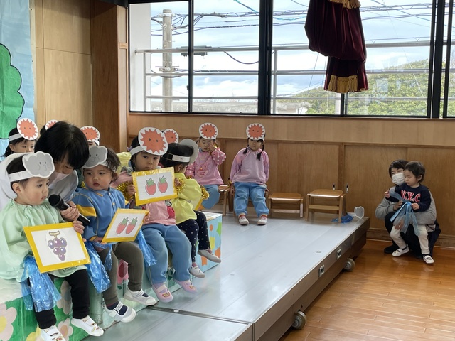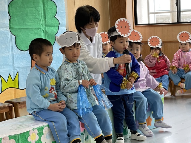 舞台でのオペレッタ『北風と太陽』、宝物の発表など練習も頑張ってきました。