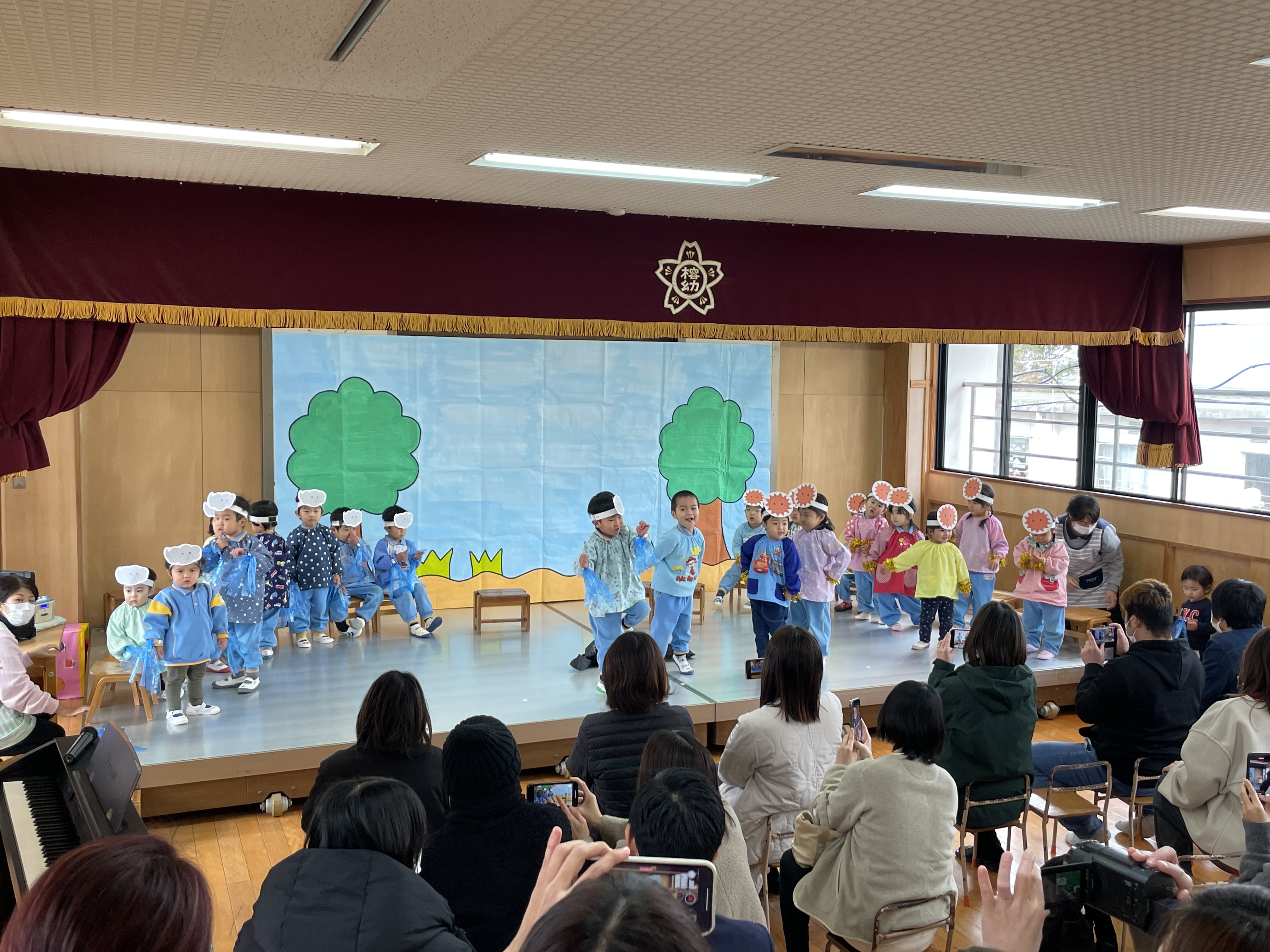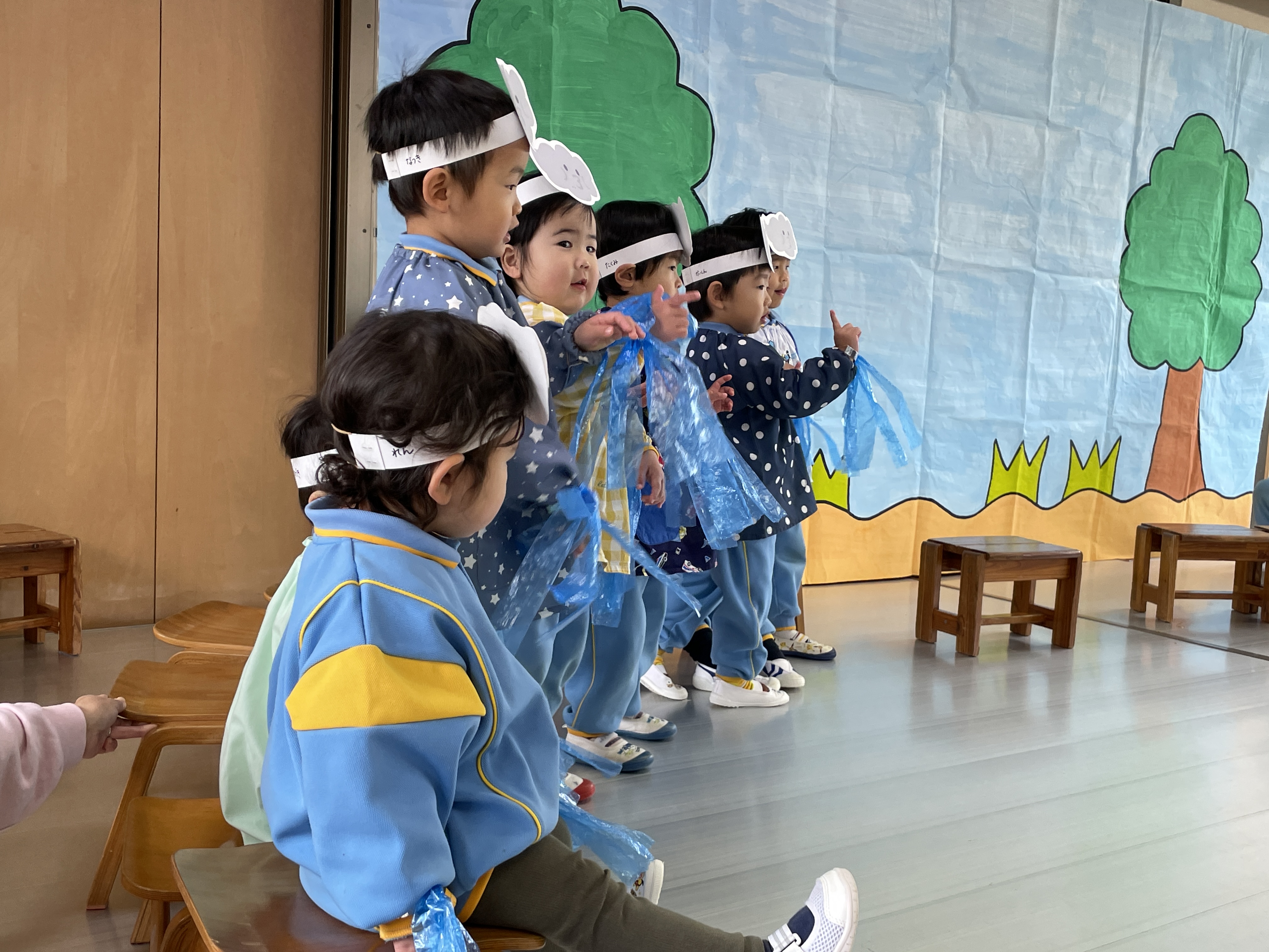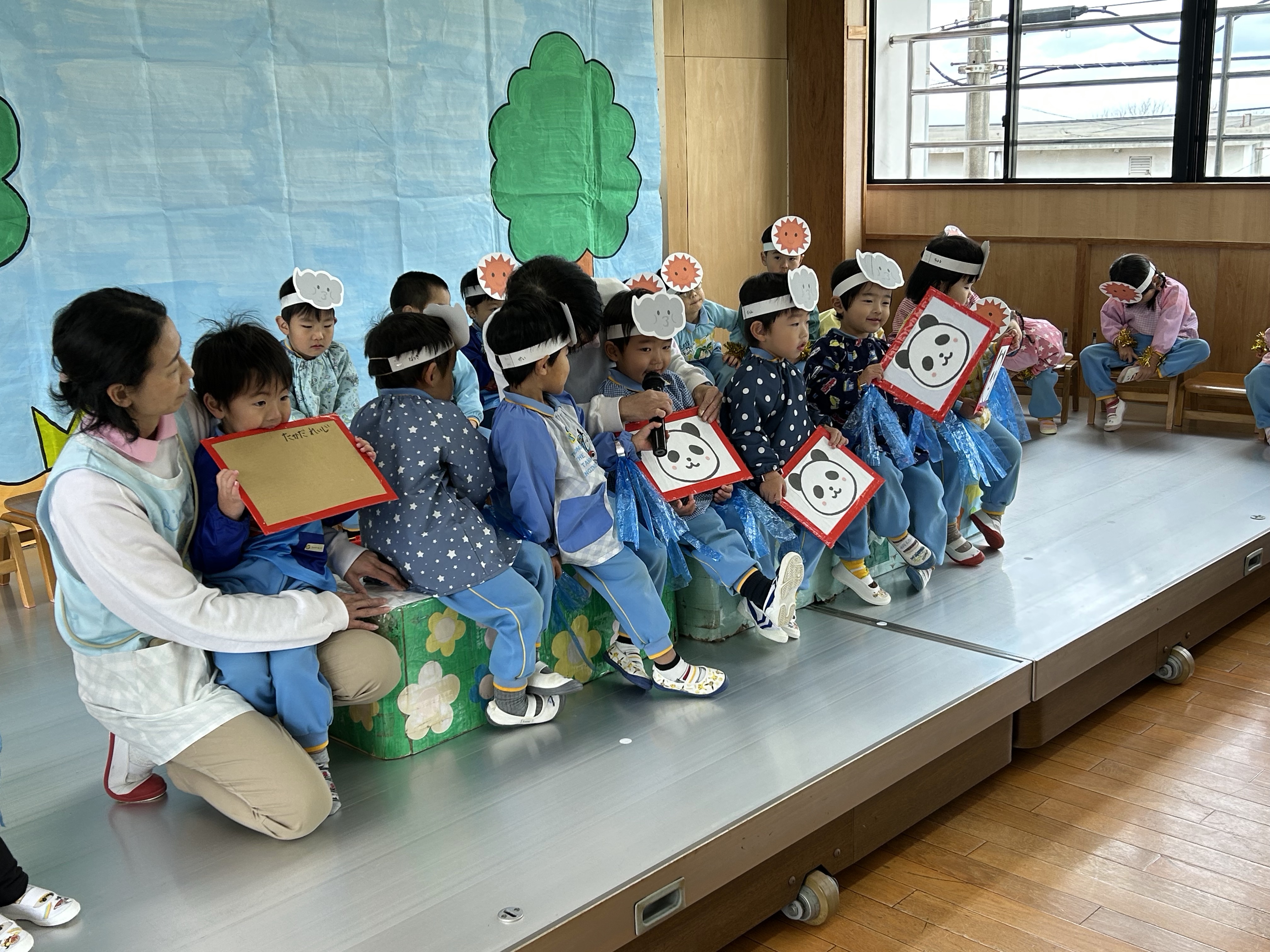 舞台でのオペレッタ『北風と太陽』、宝物の発表など練習も頑張ってきました。