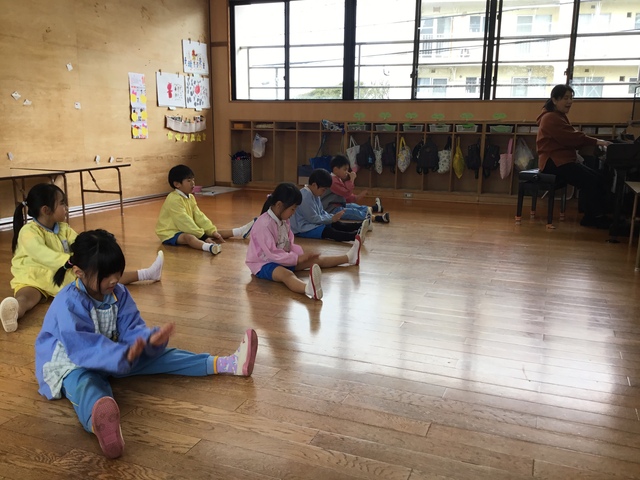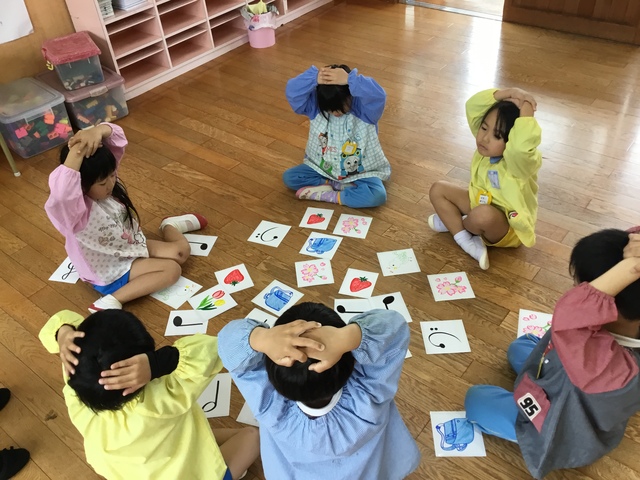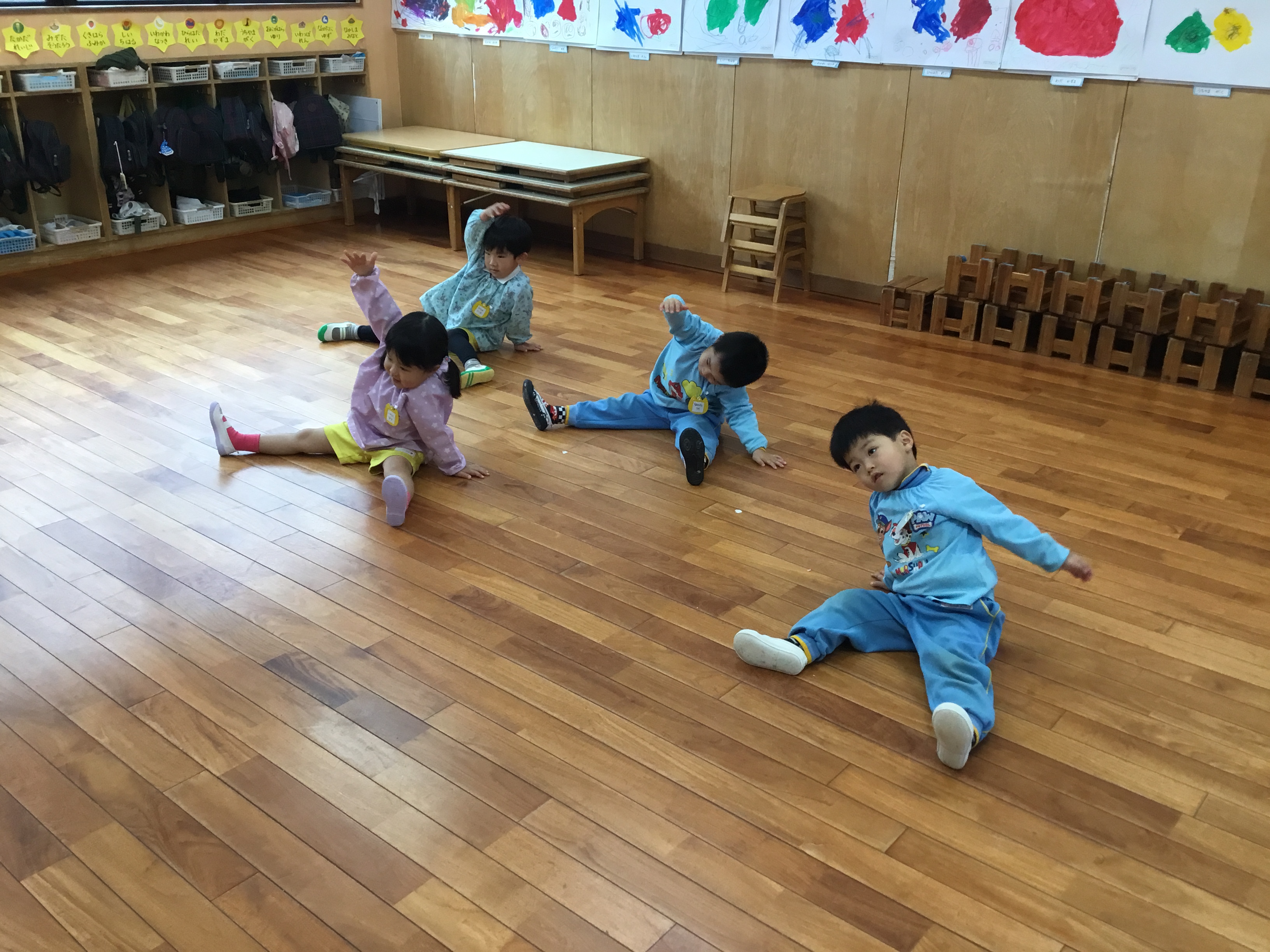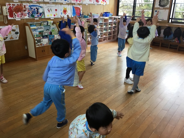 歌やリズムに合わせて体を動かしたり、止まったり…