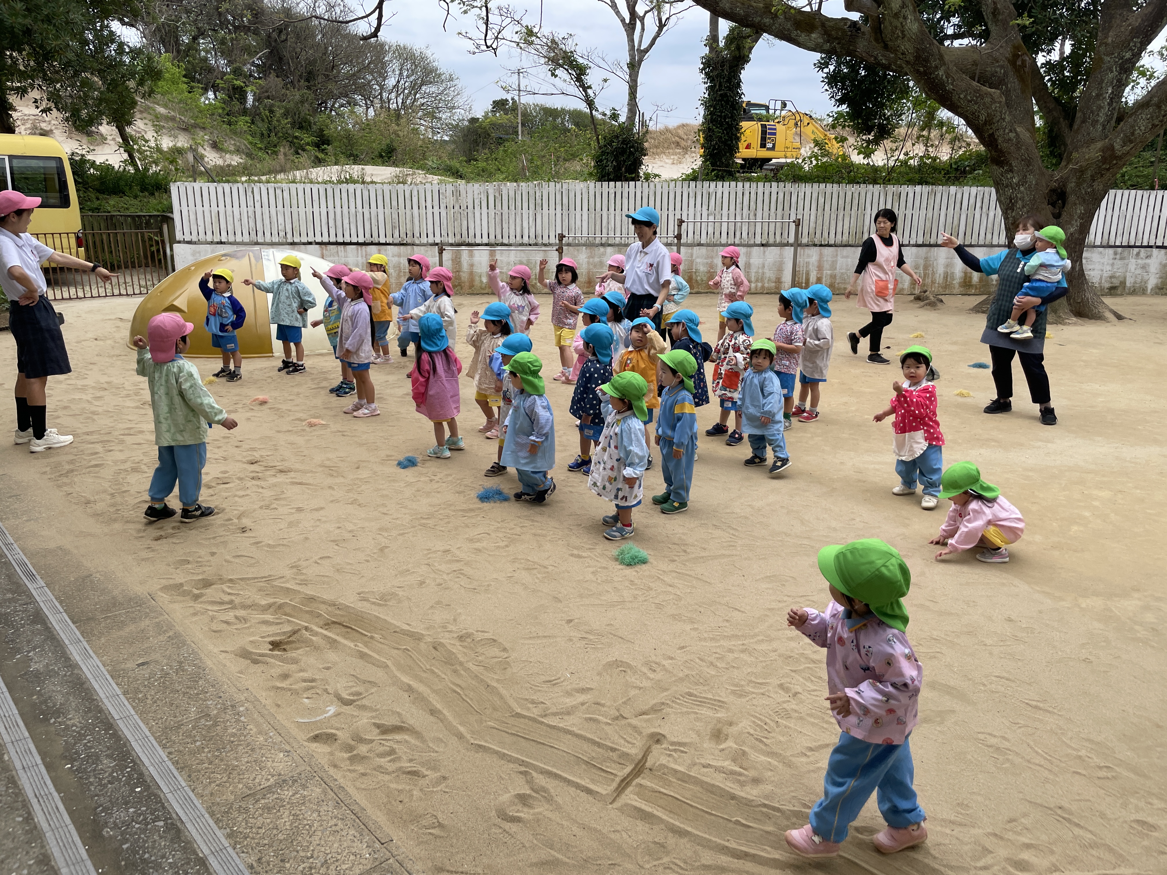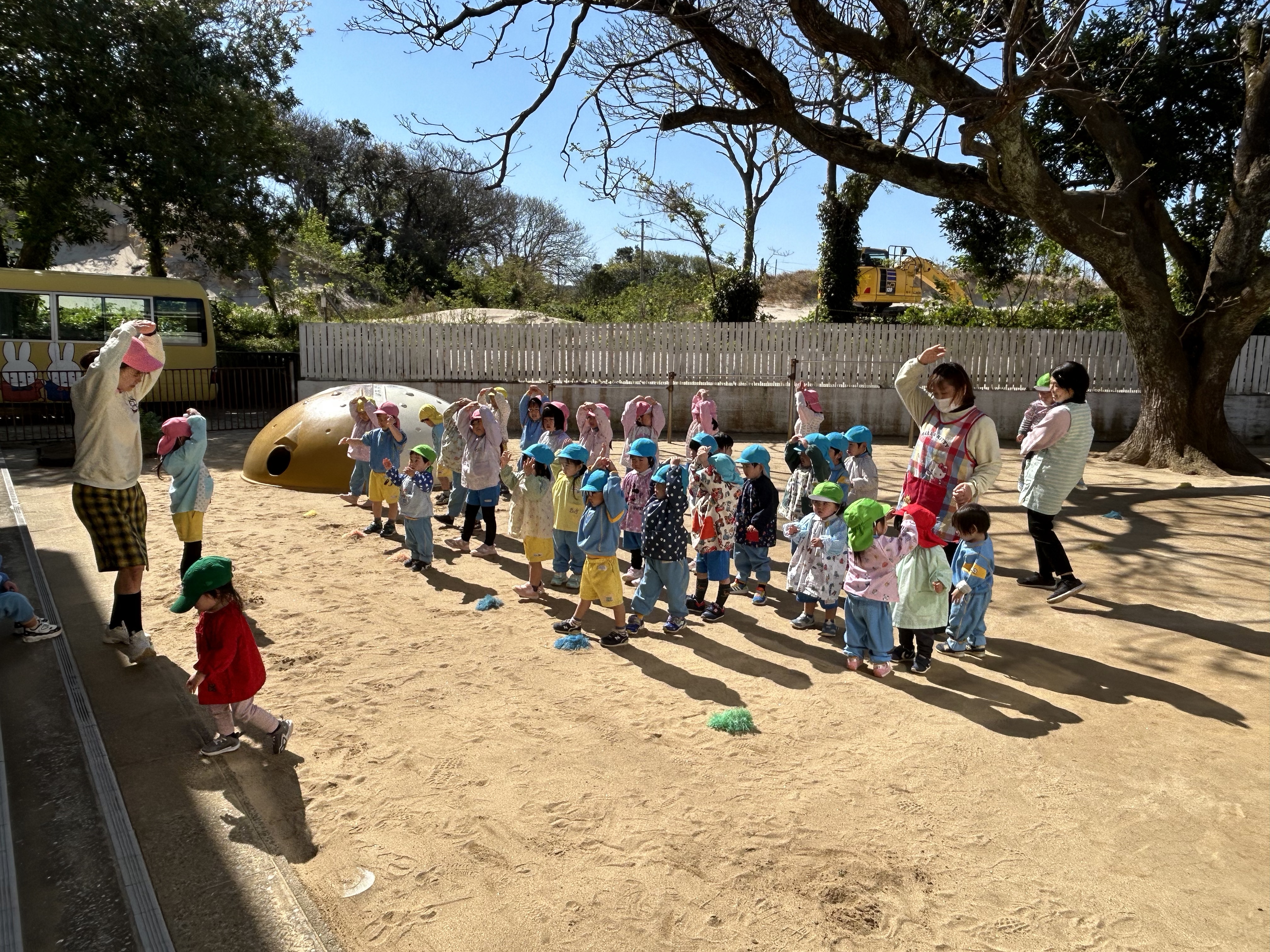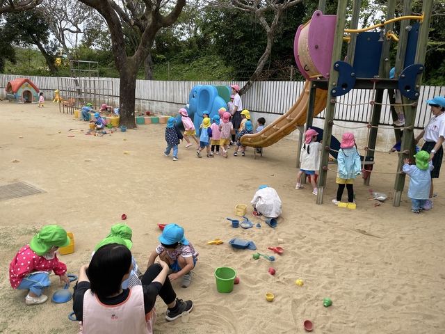 園庭で元気いっぱい遊んだり体操したり楽しかったです!
