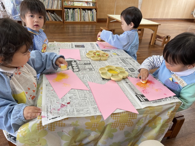 バンビルームのお子様方は初めてのこいのぼり製作。