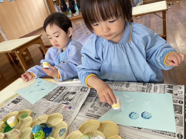 うろこをペタペタ ポンポン つけて楽しみました。