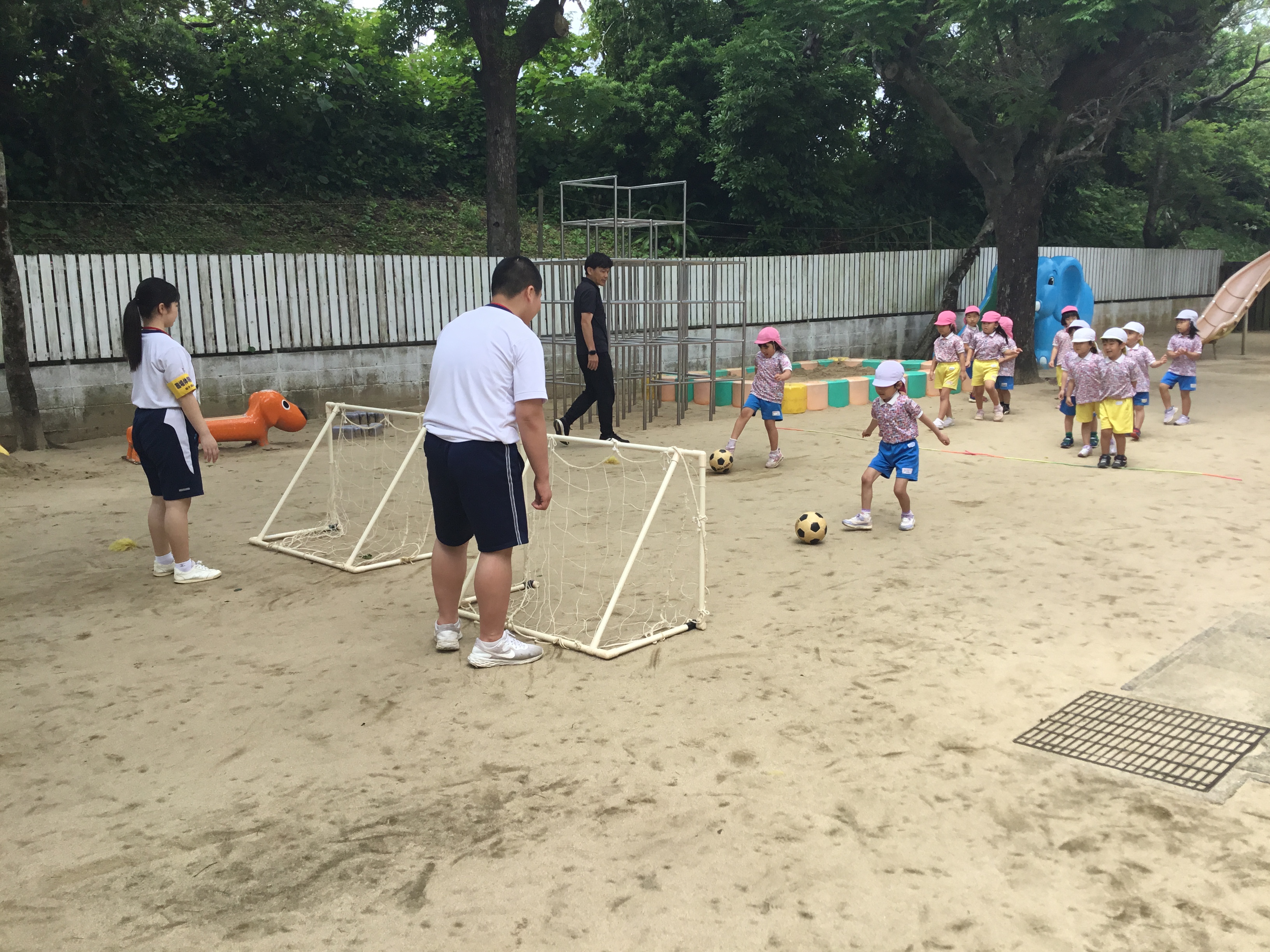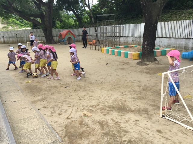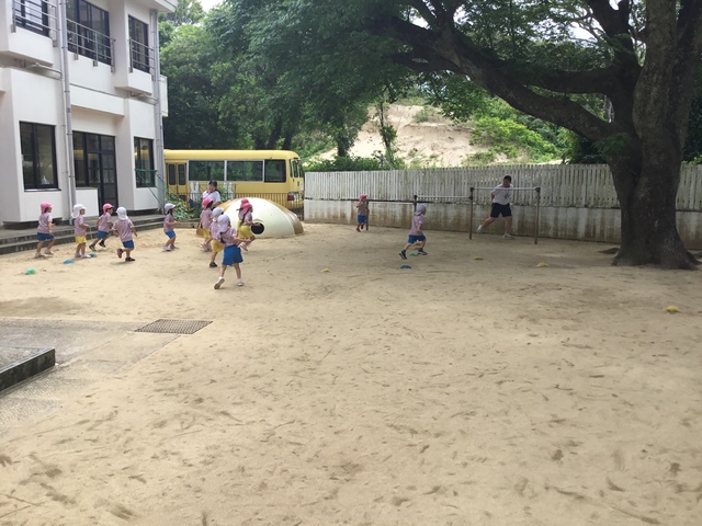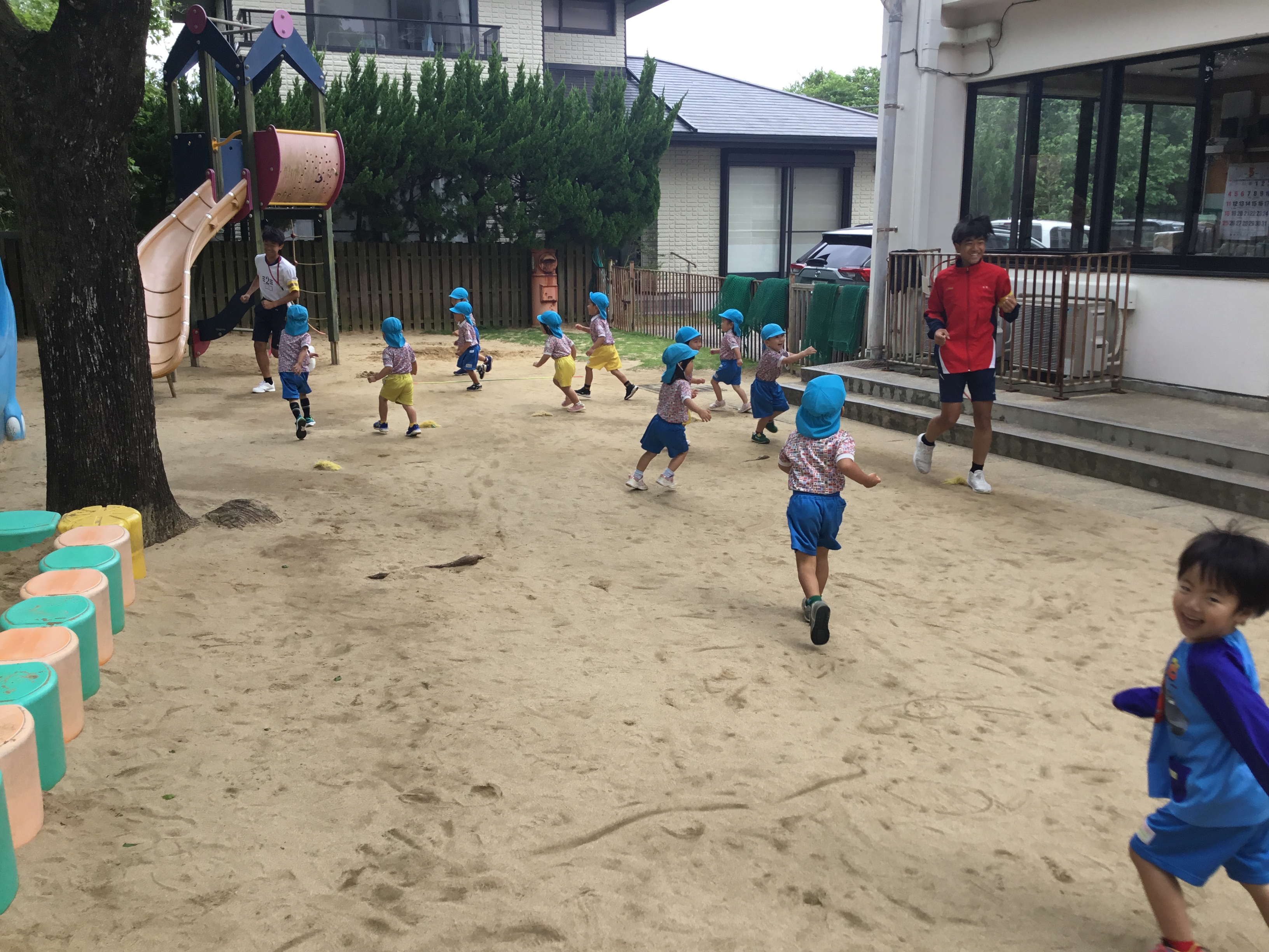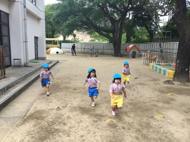 準備体操やかけっこ、お兄さんお姉さんたちとしっぽとりゲーム!