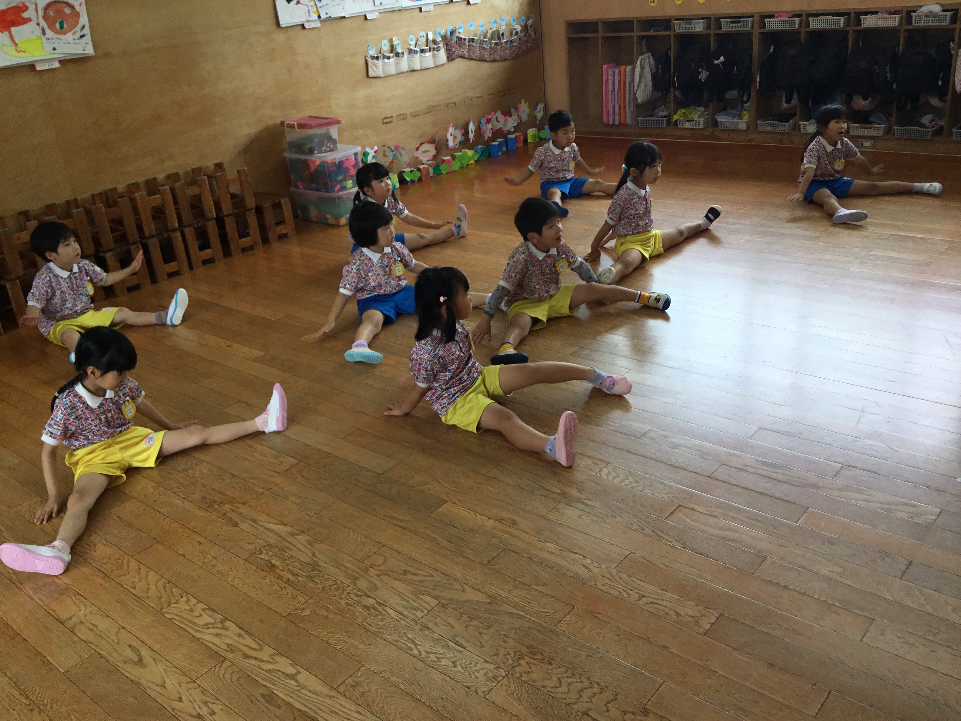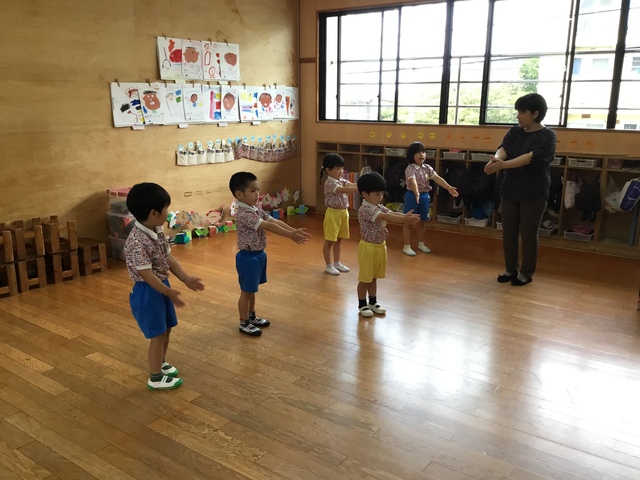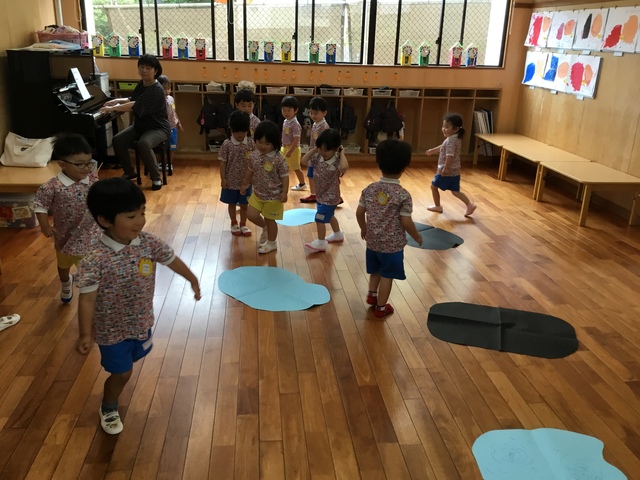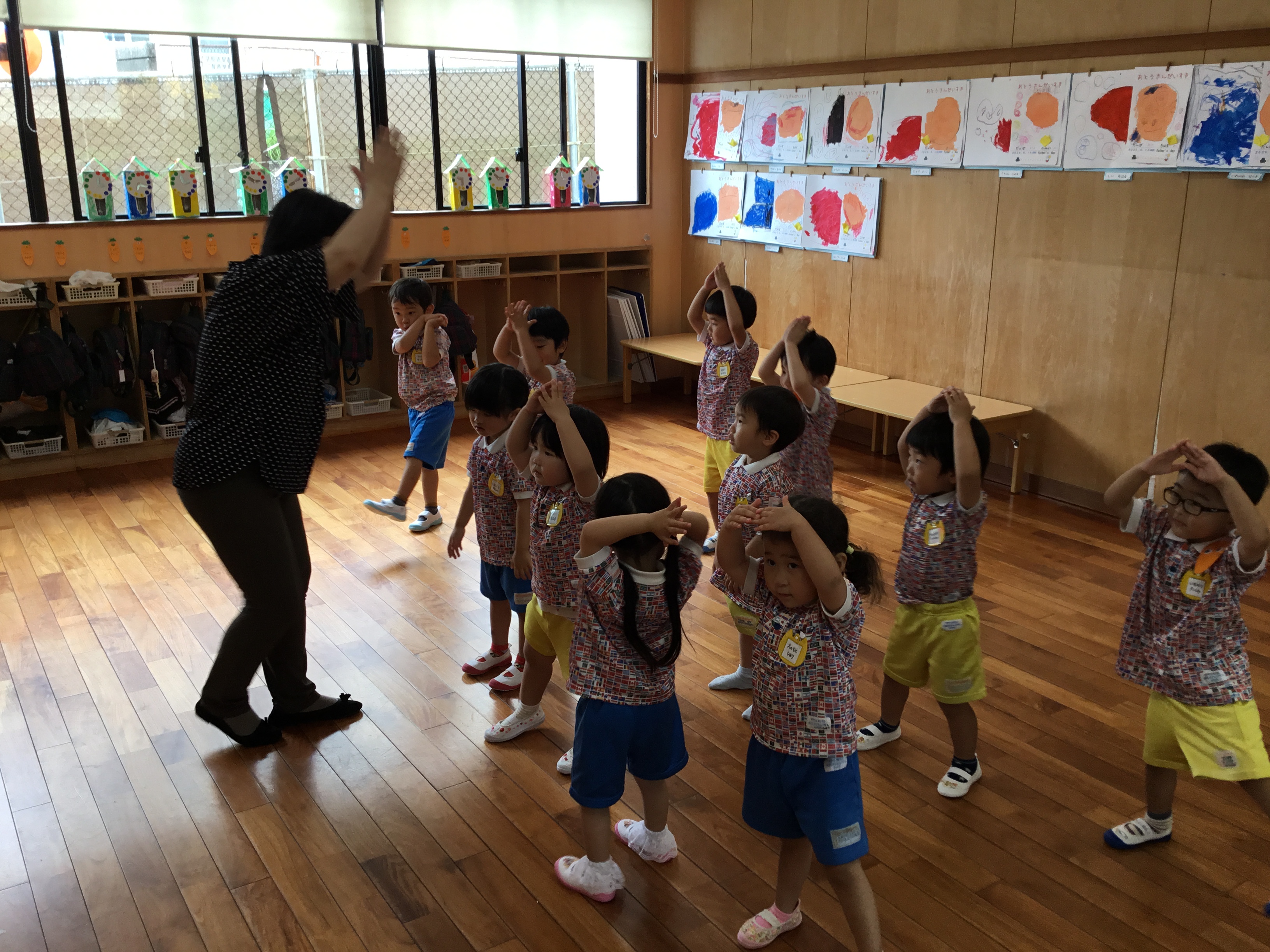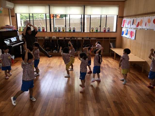 ピアノに合わせての体操やリズム遊びをとっても元気いっぱいに