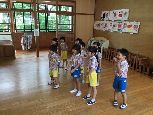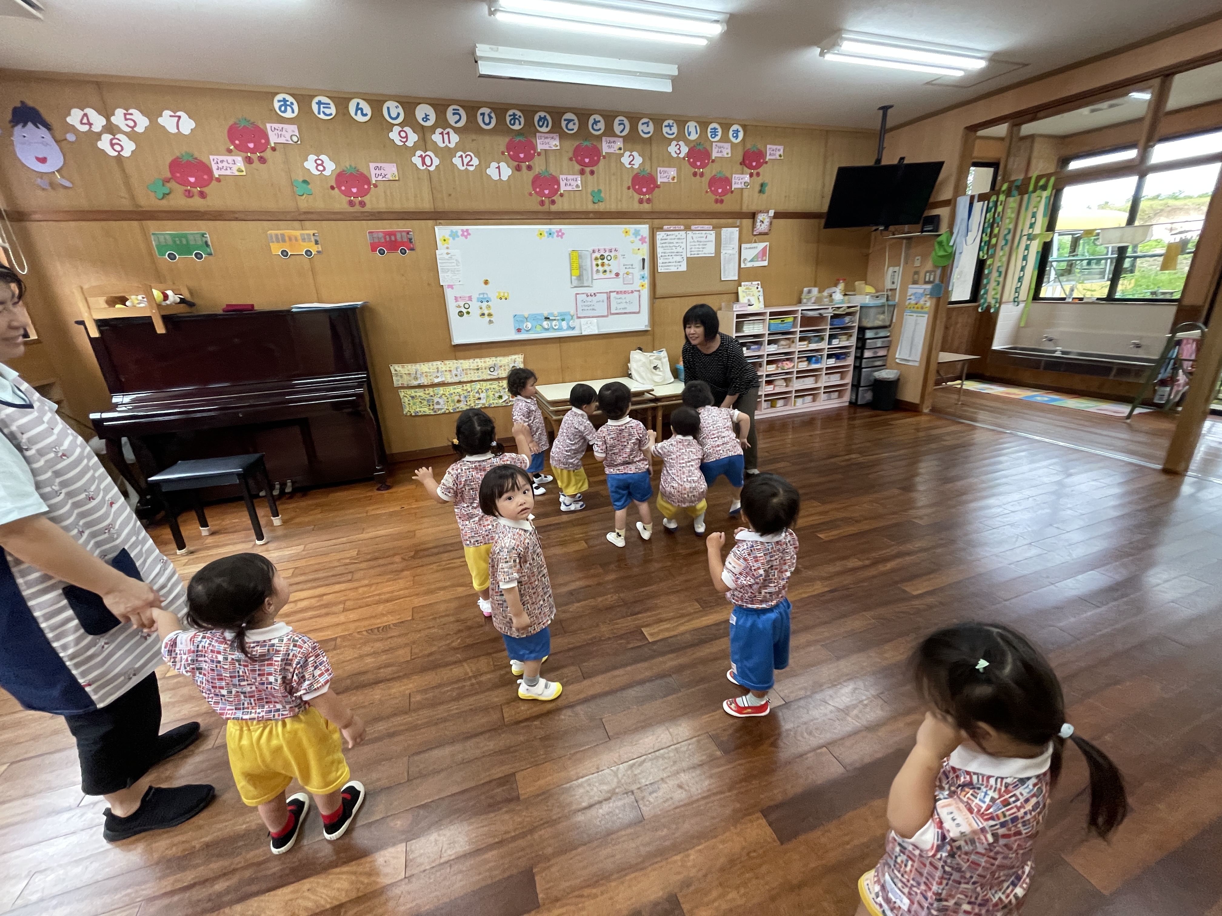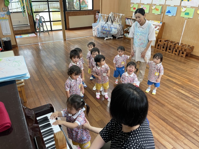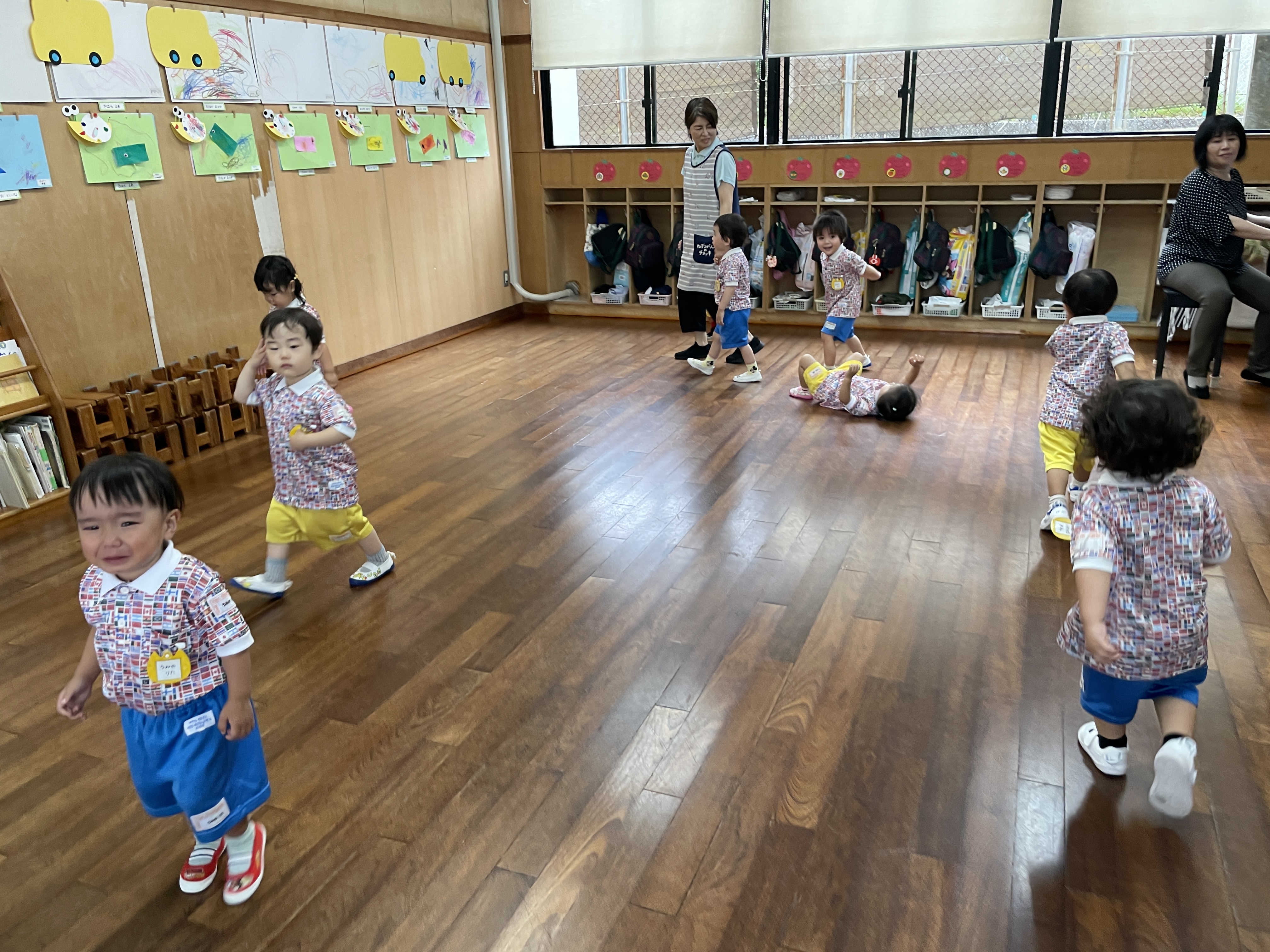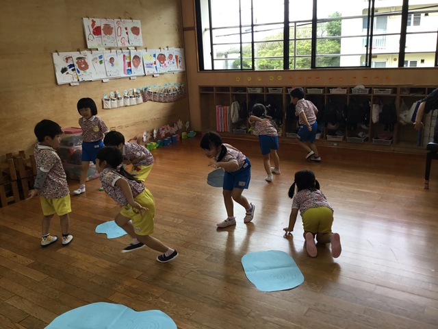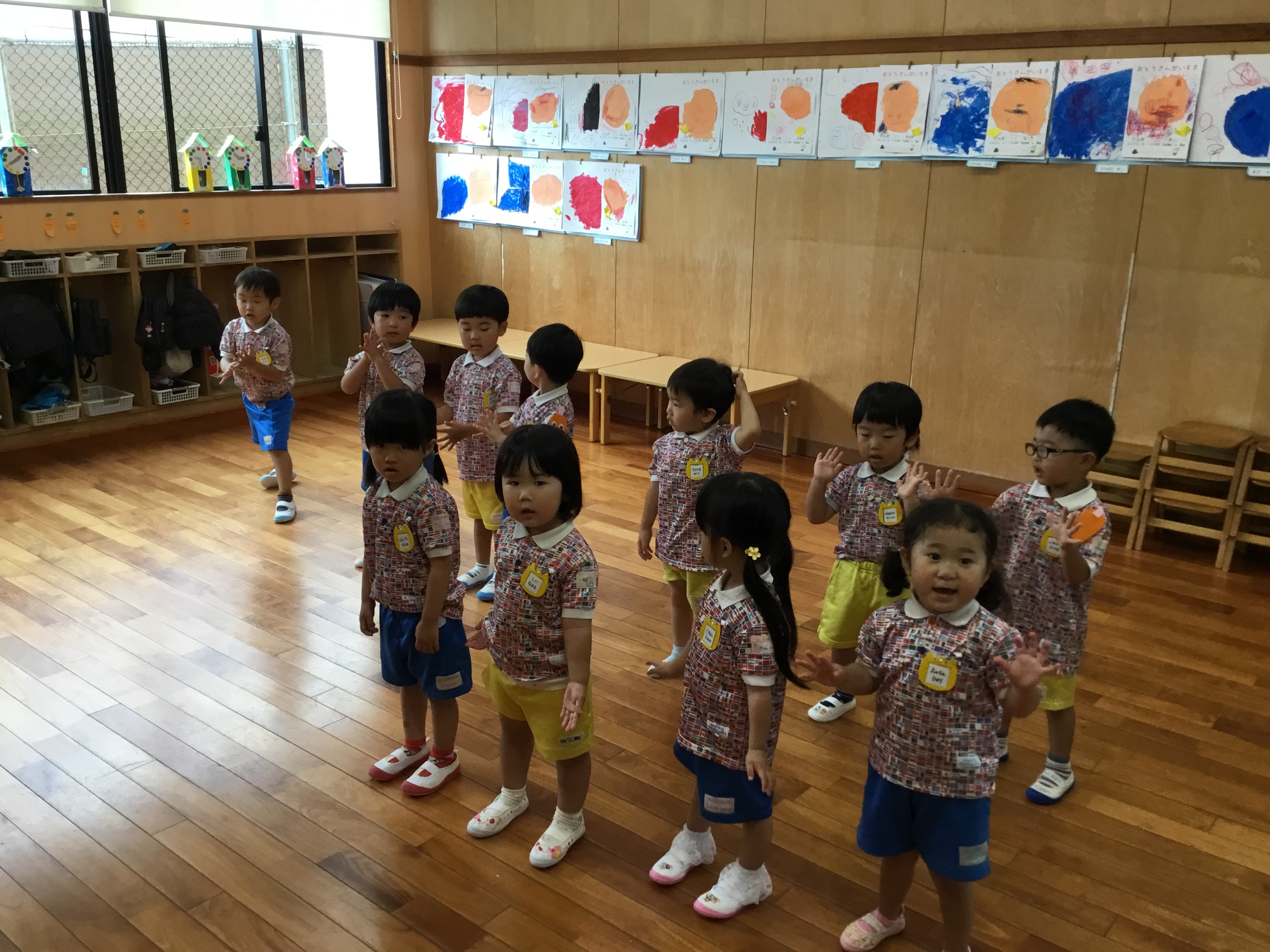ピアノに合わせての体操やリズム遊びをとっても元気いっぱいに