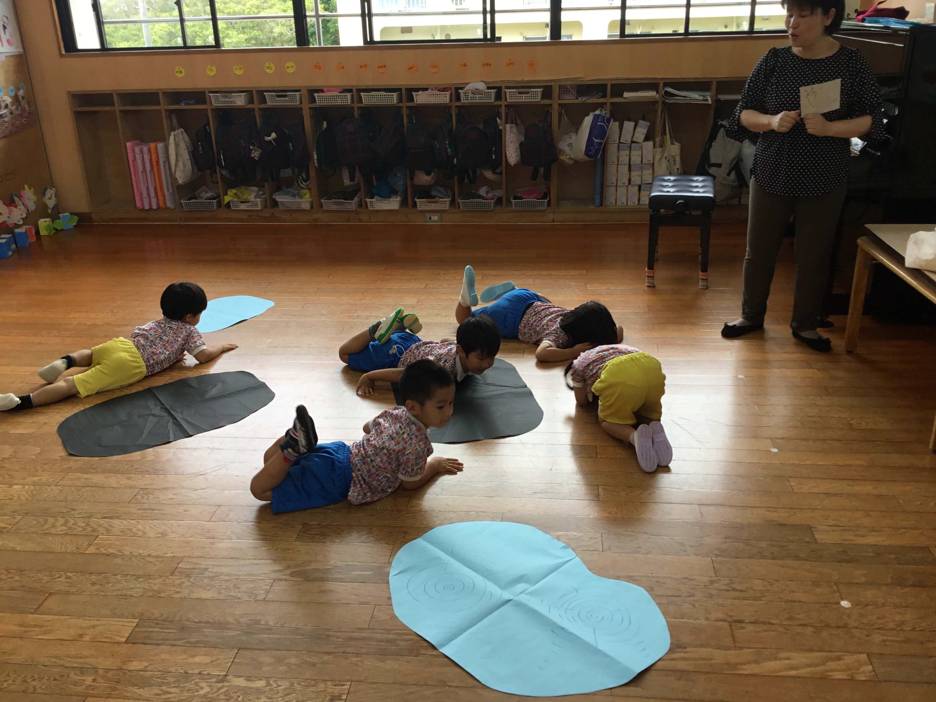 6月はカード(カエル・おたまじゃくし・てるてる坊主・かたつむり)をみて