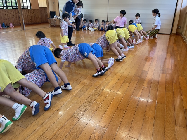 最後はトンネルごっこ!バンビさんダンボさんのトンネルを年中さん年長さんが通過!