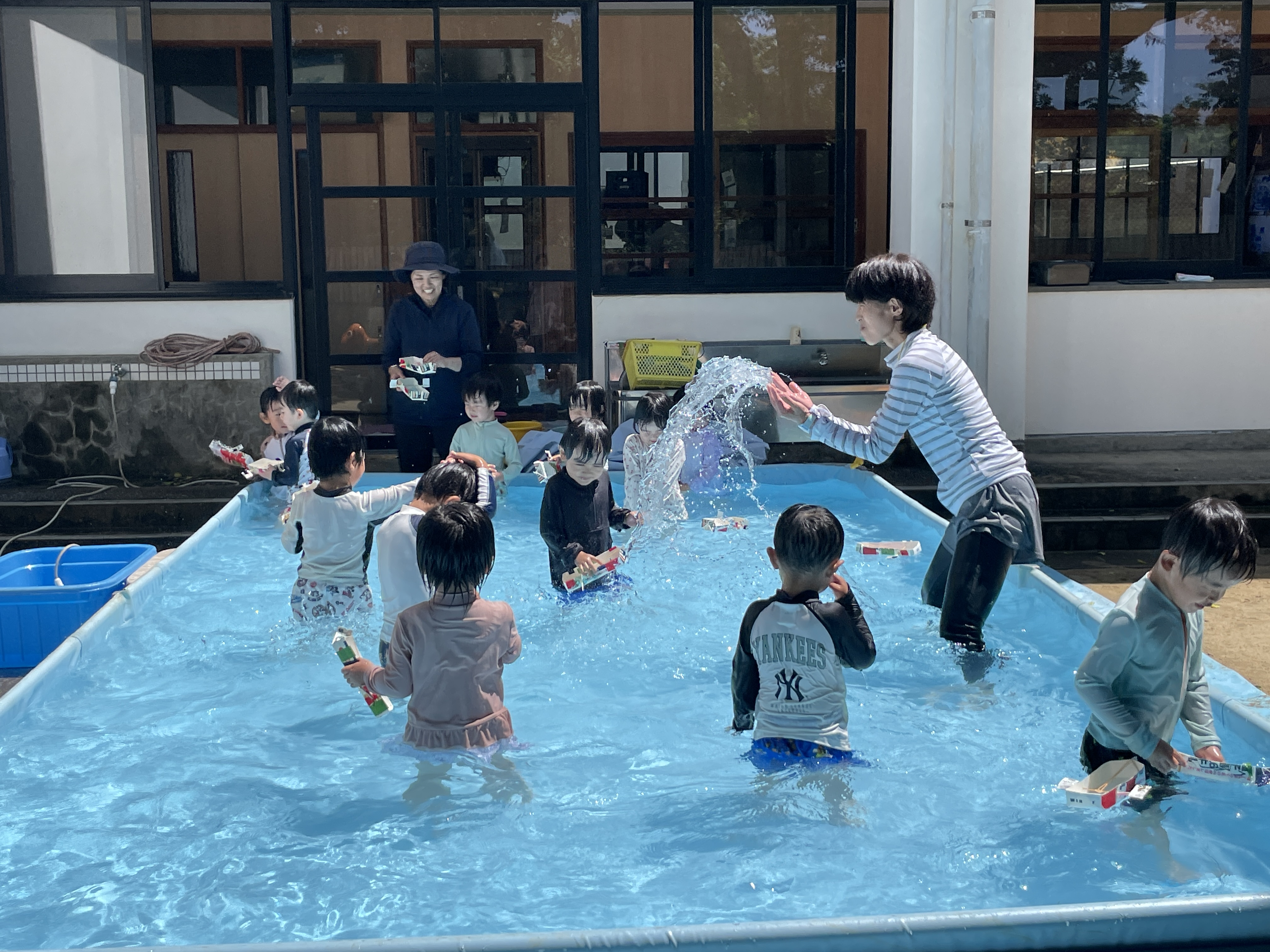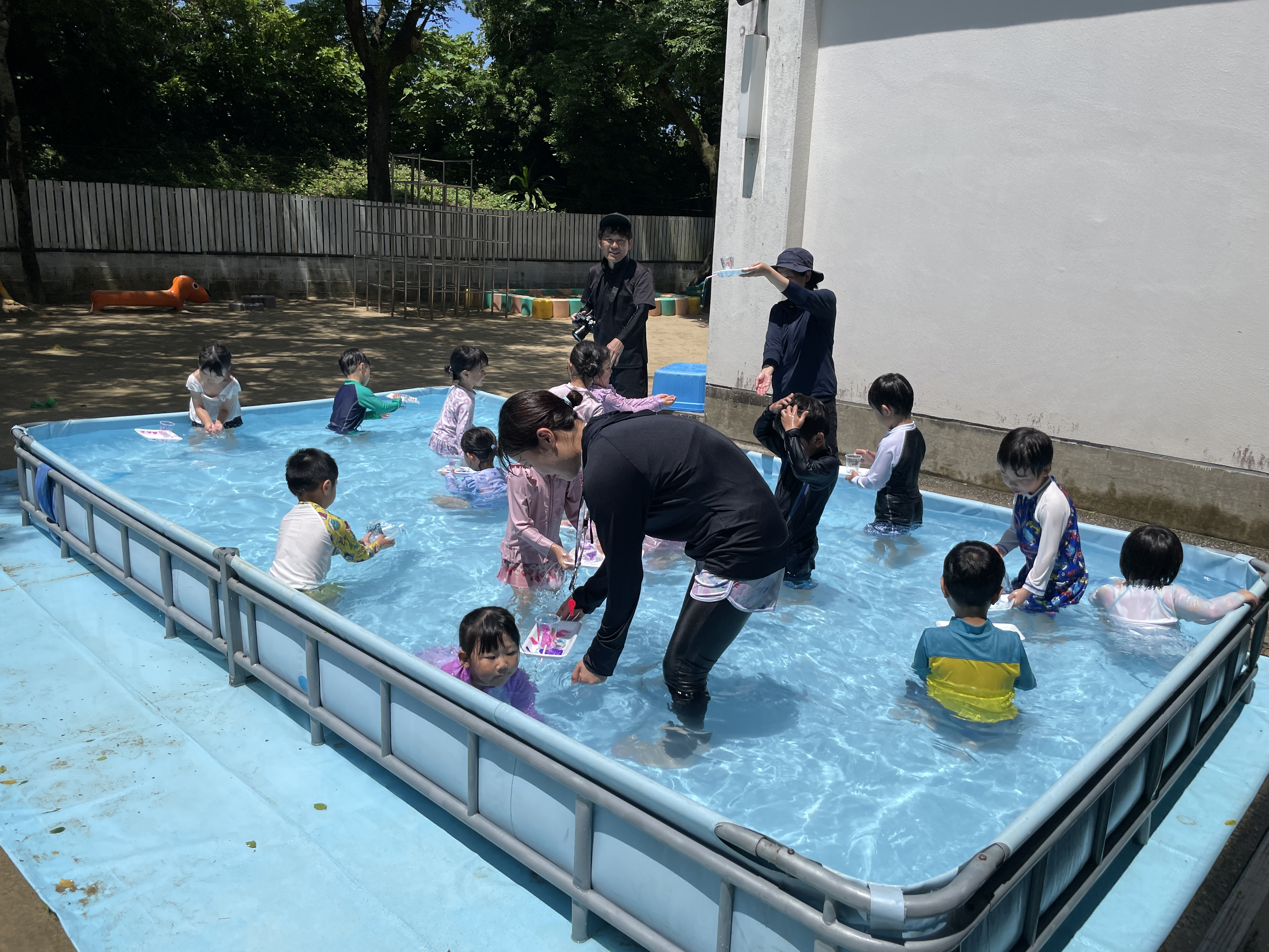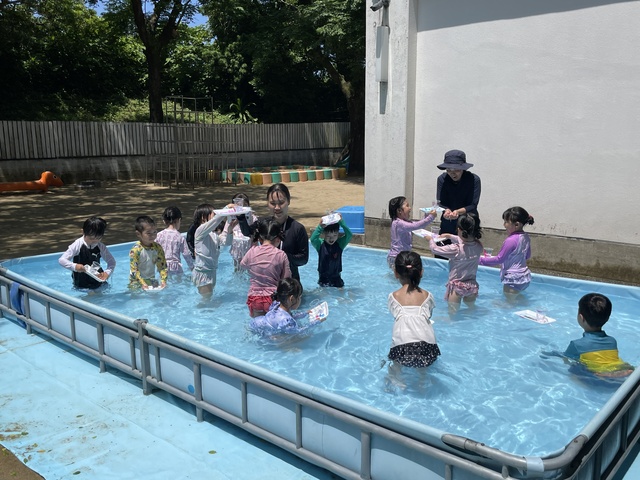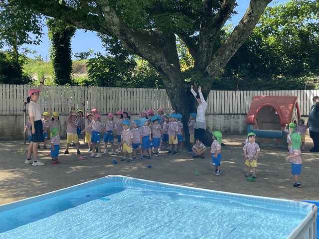 お子様方は園庭に大きなプールができていてビックリ!!