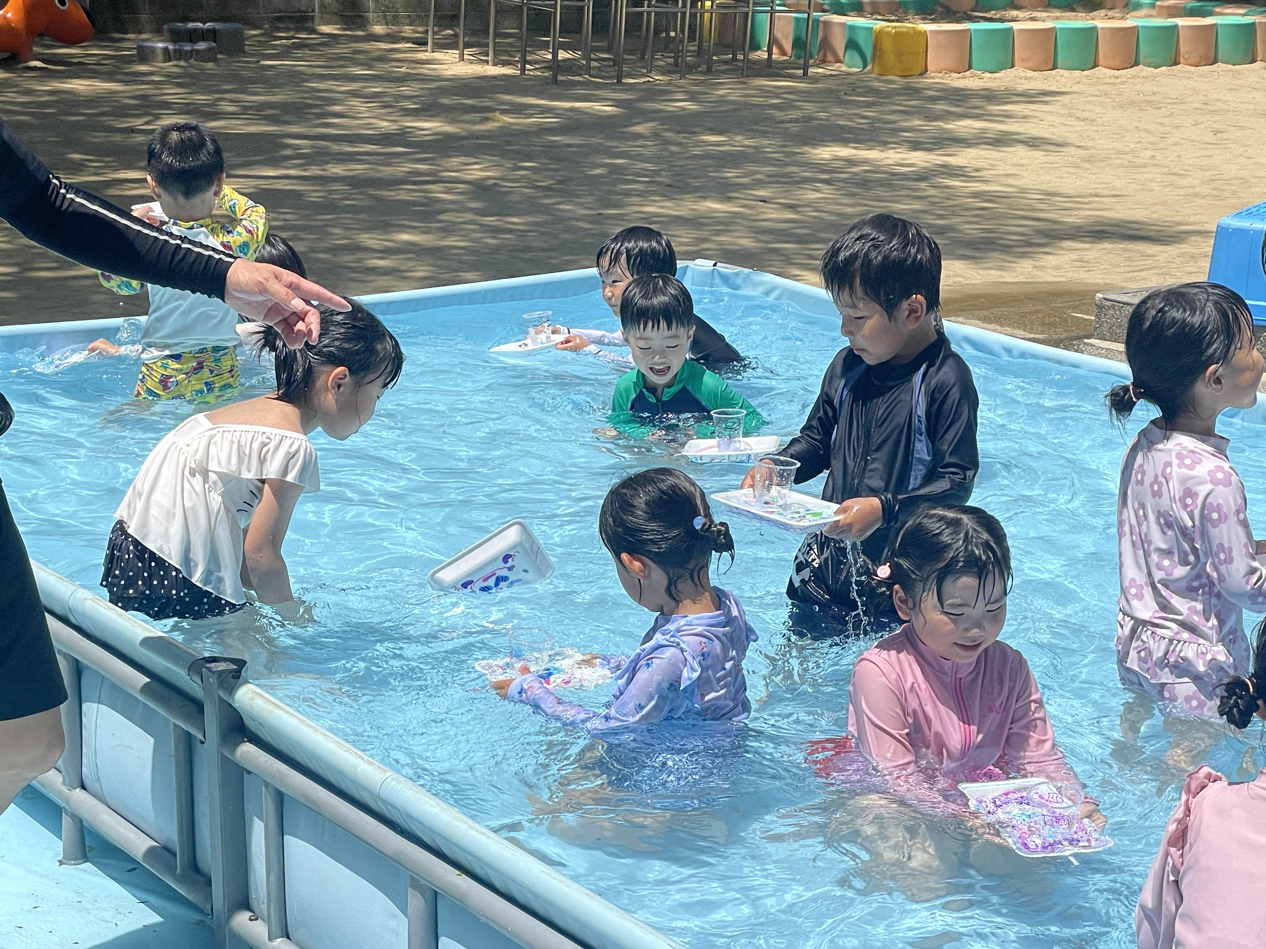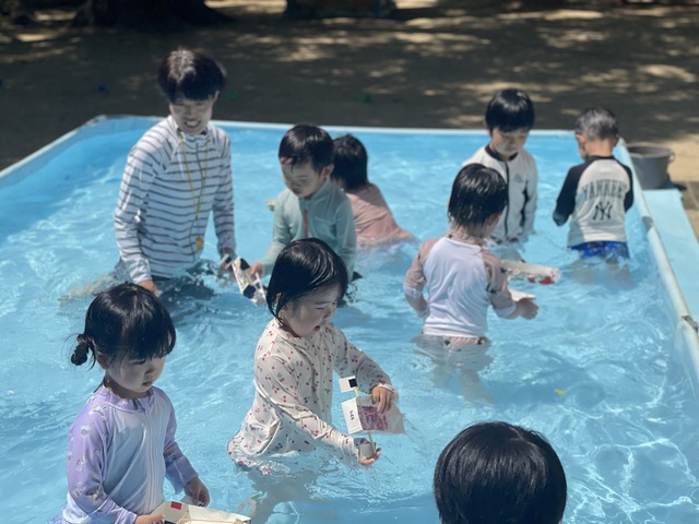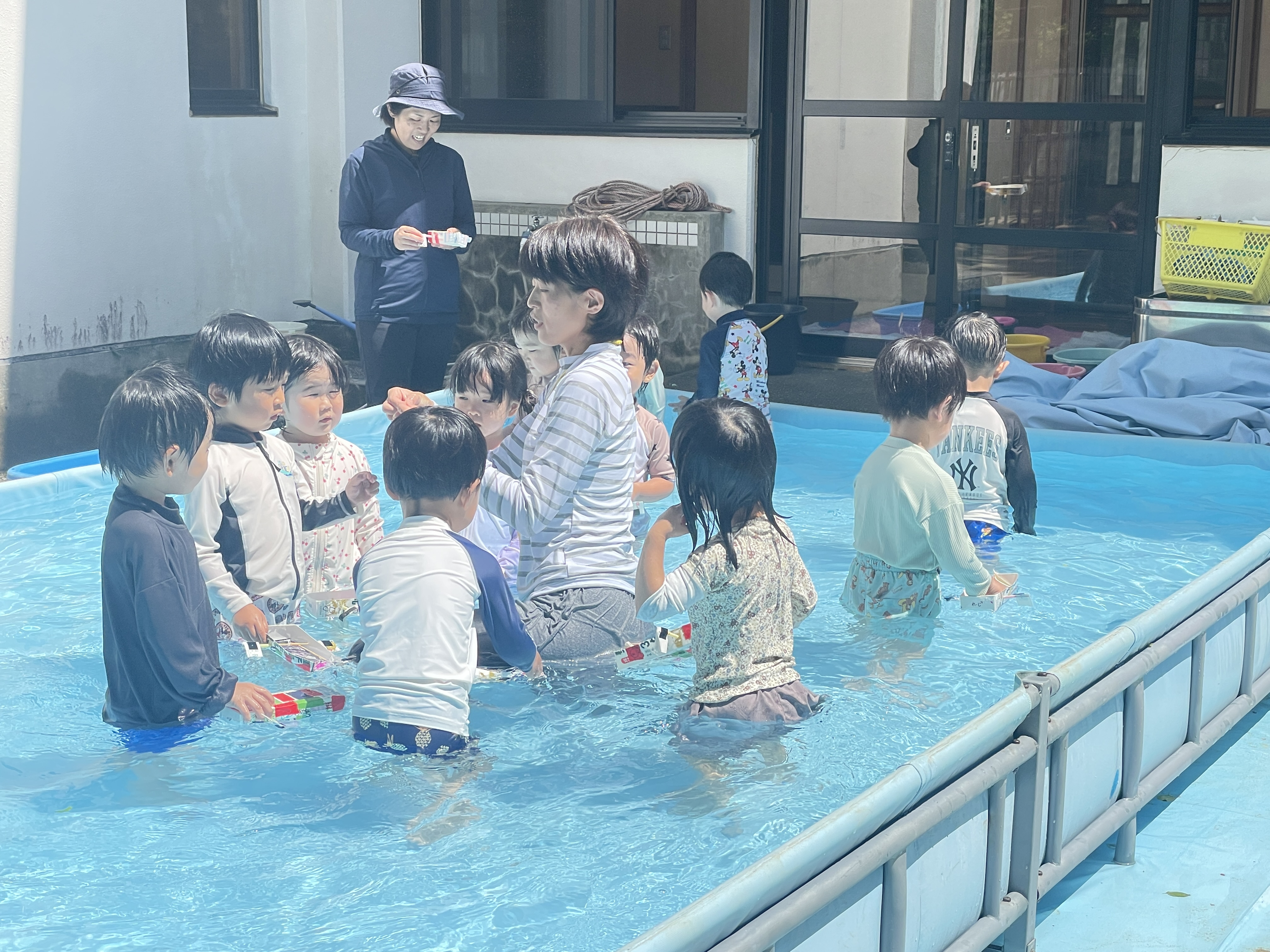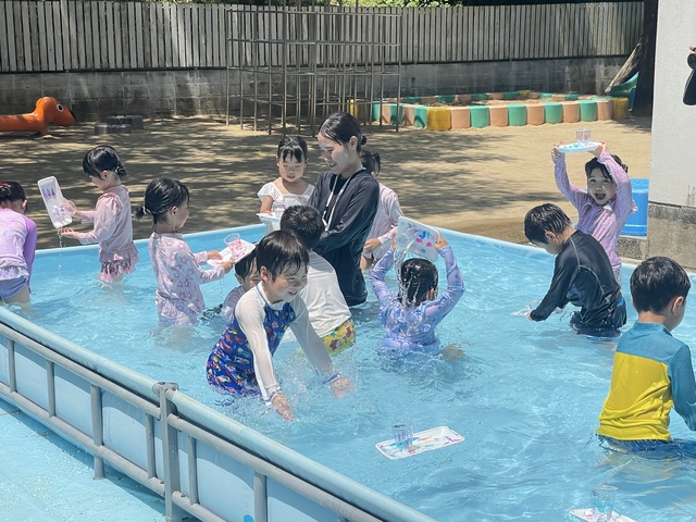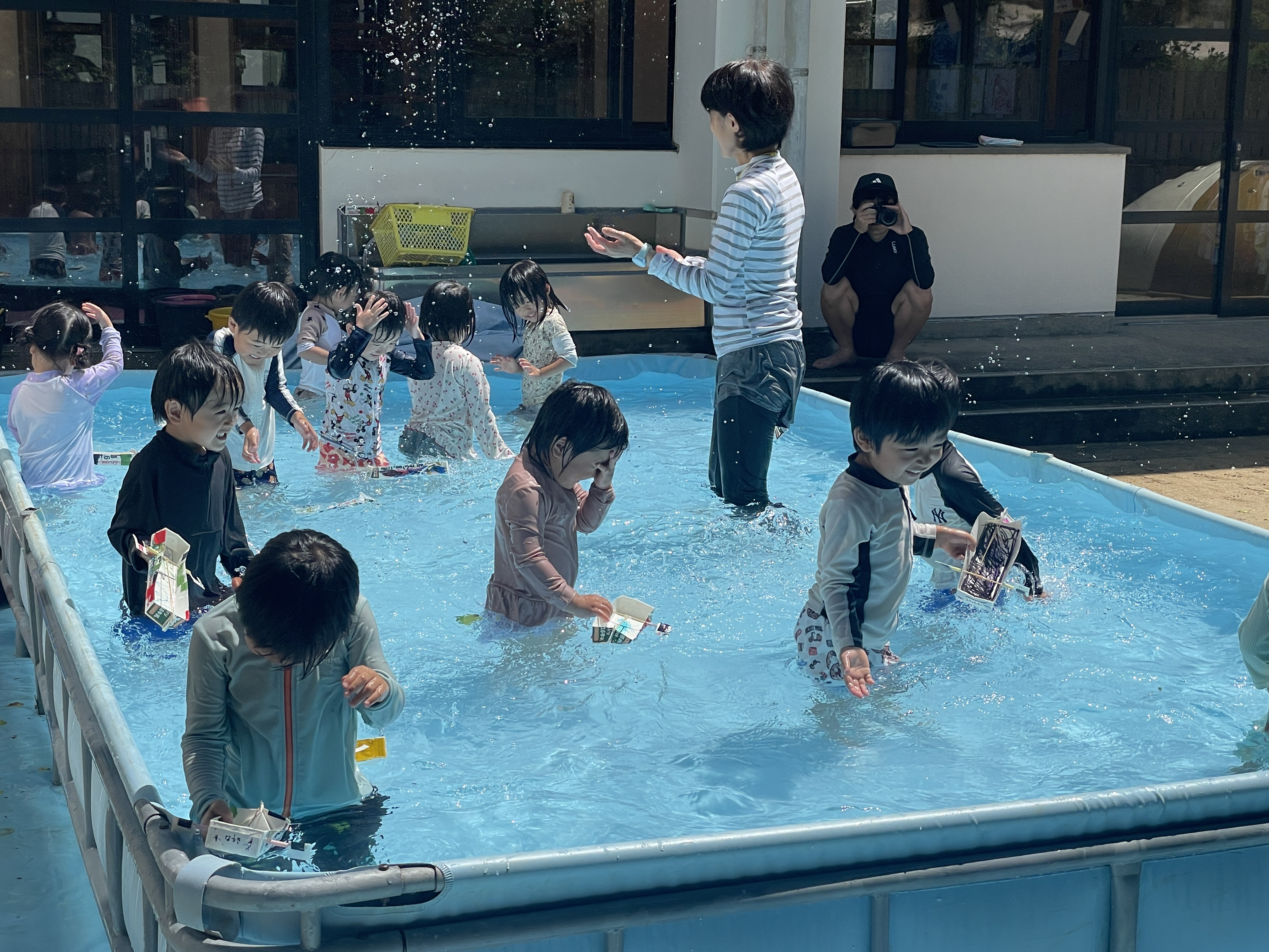 お子様方は園庭に大きなプールができていてビックリ!!