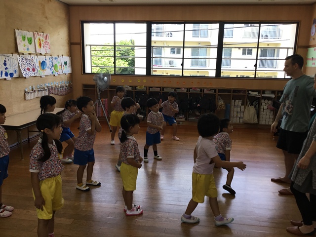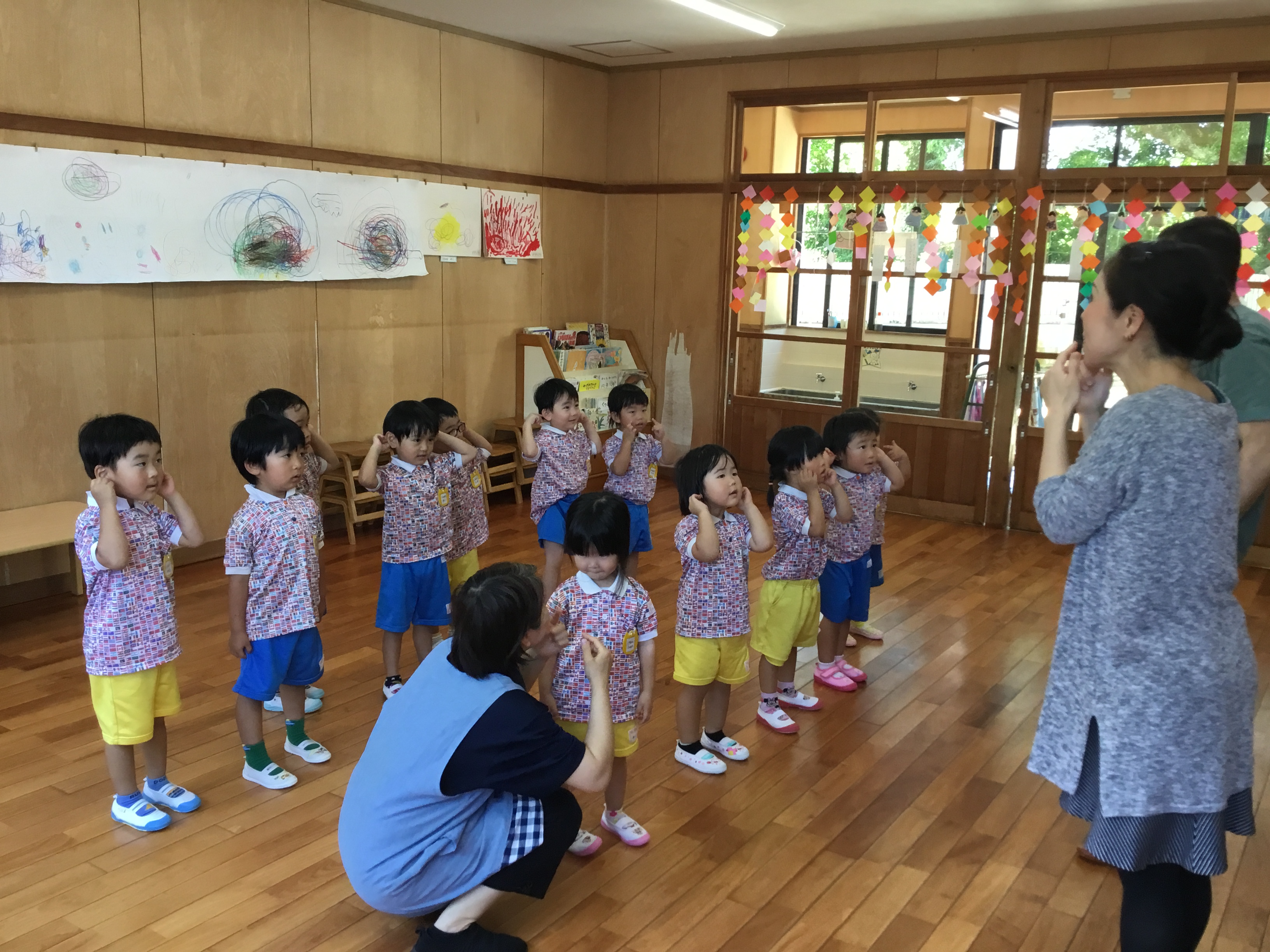 曲に合わせて体をタッチ!楽しんでいました。