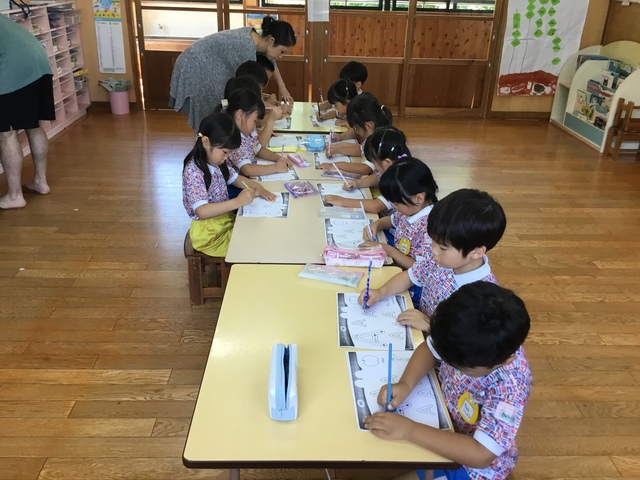 アルファベットを書くのも楽しみながら取り組んでいます。