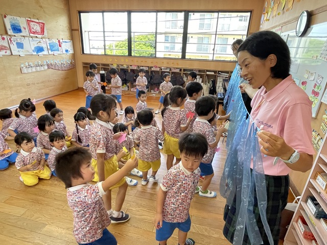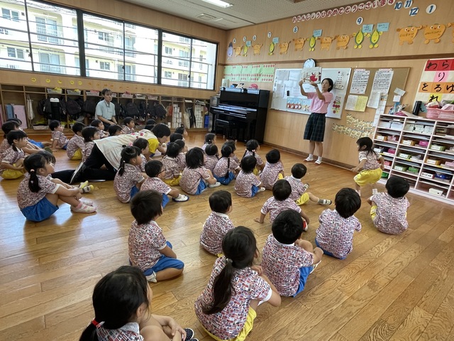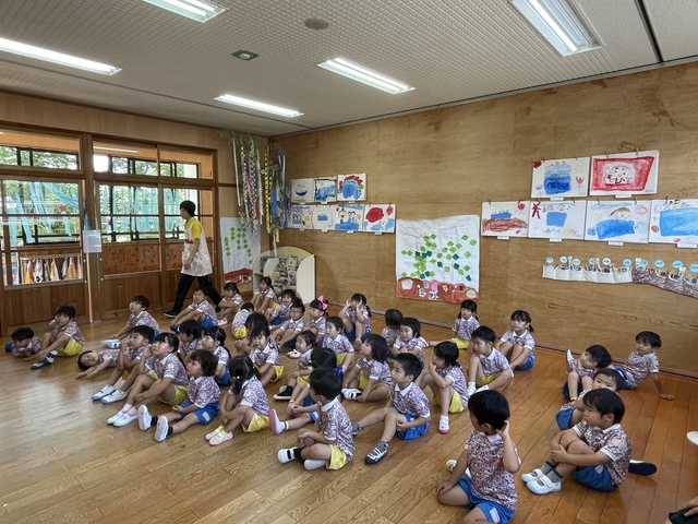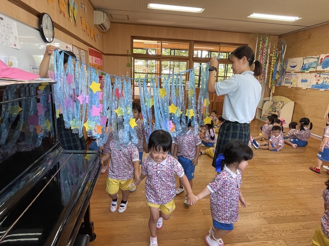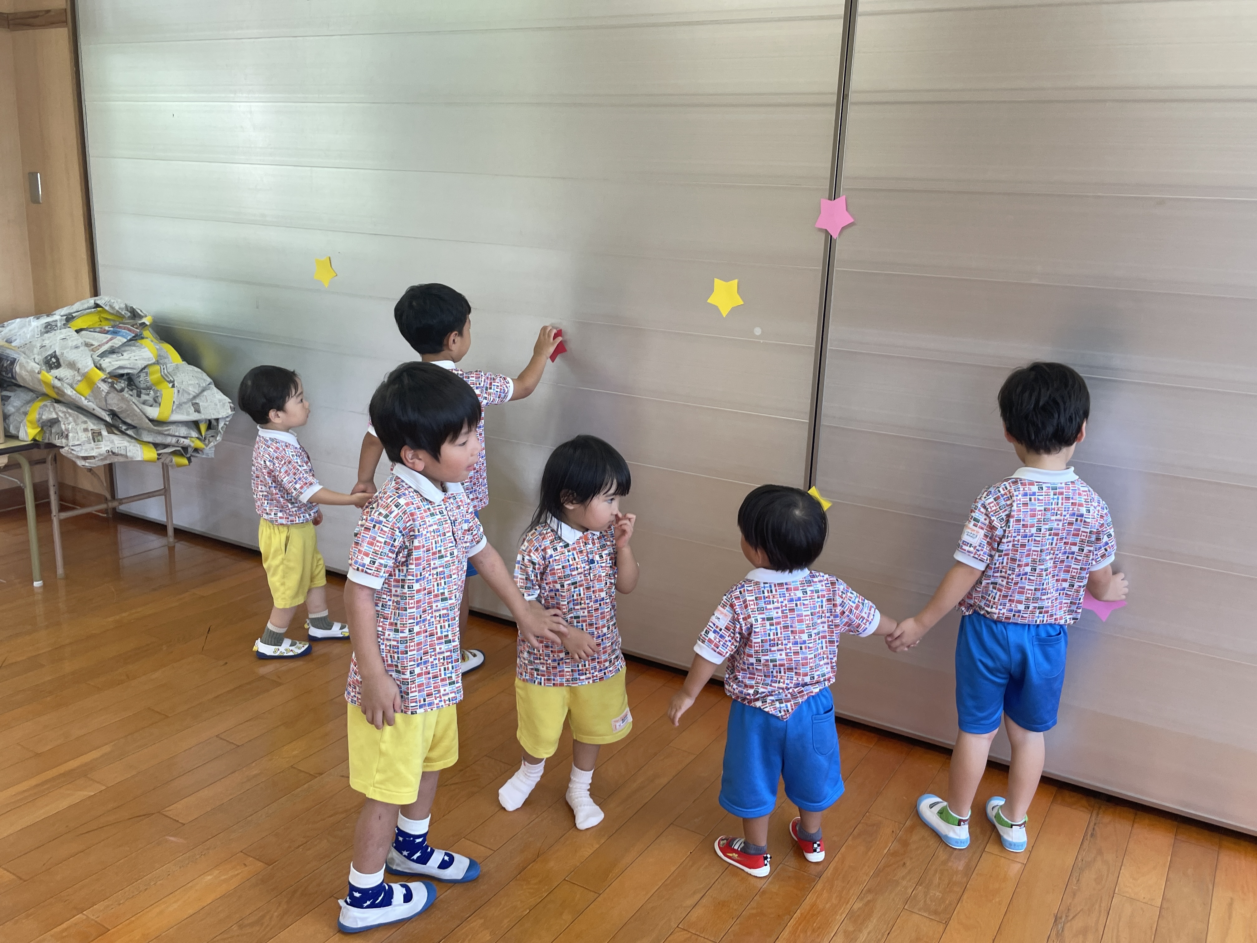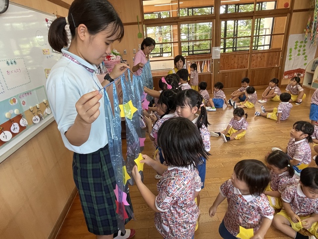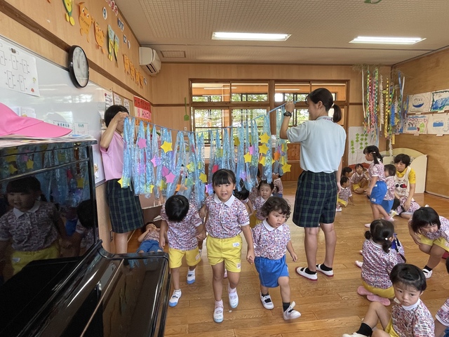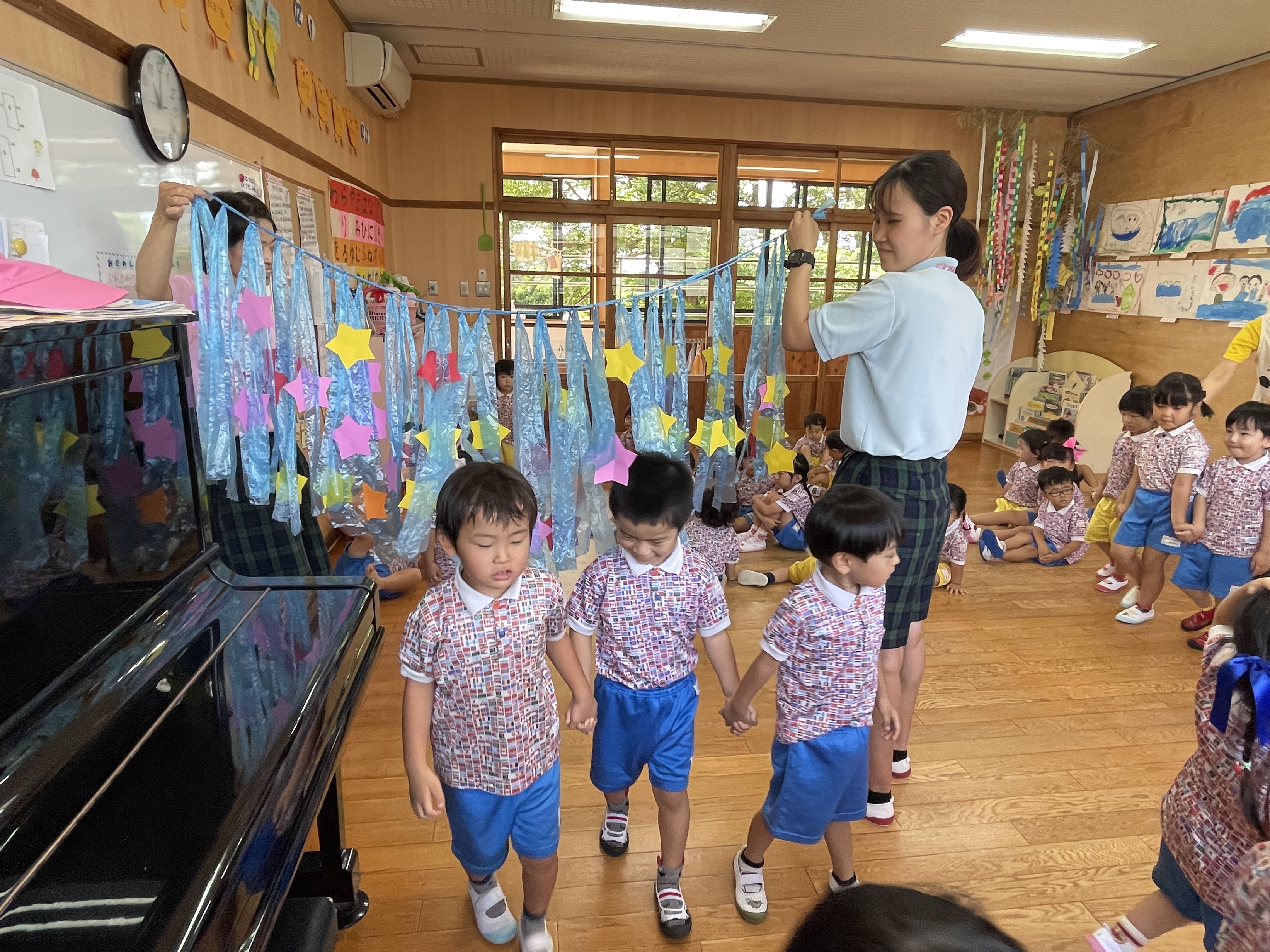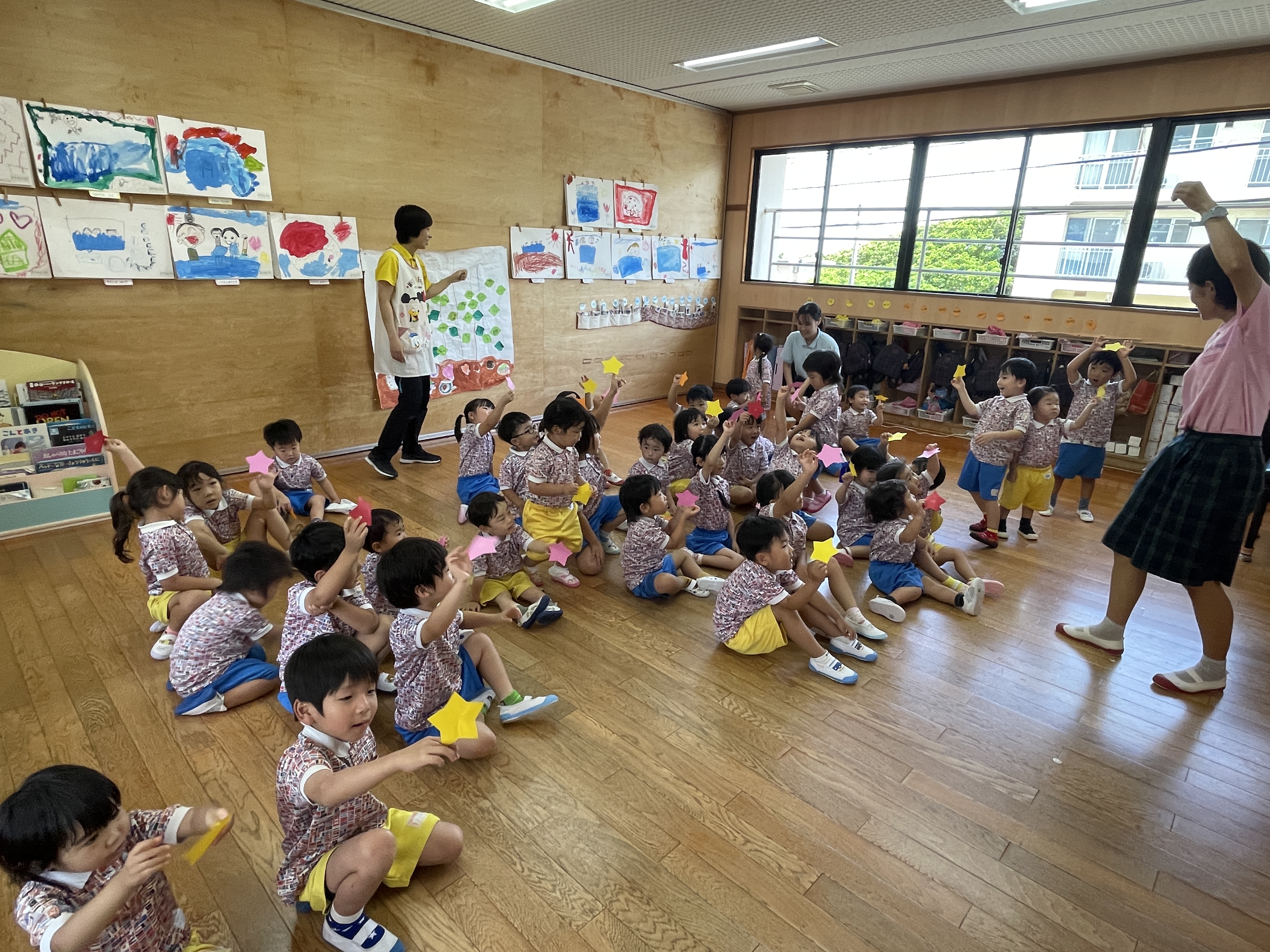 パーティーでは七夕の紙芝居を見たり、歌を歌ったりしました。