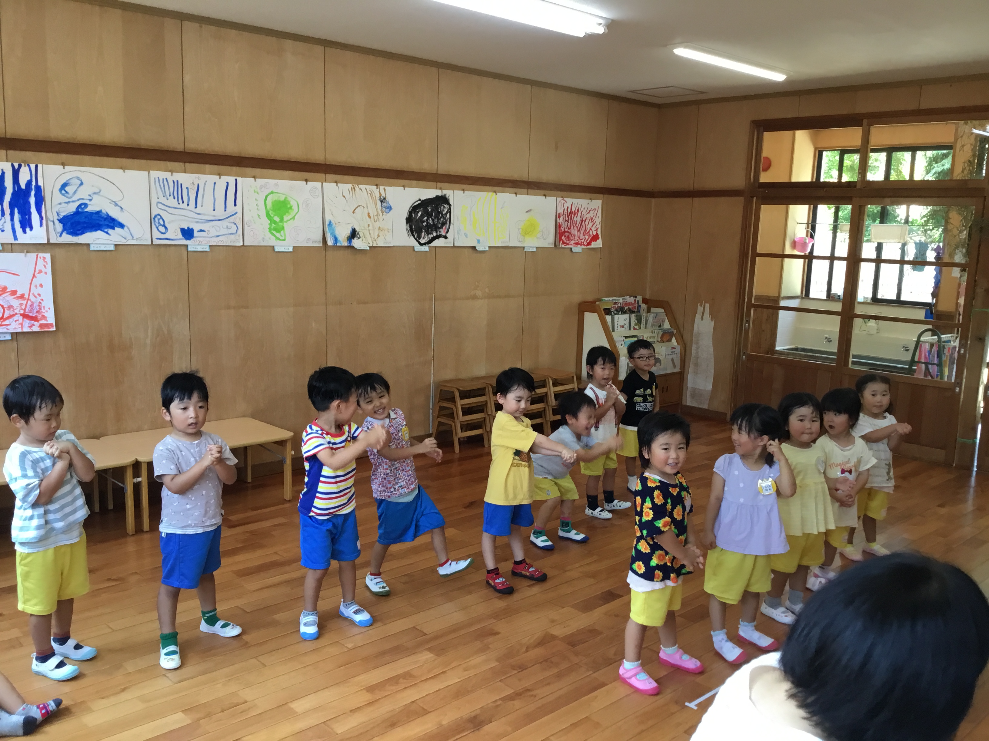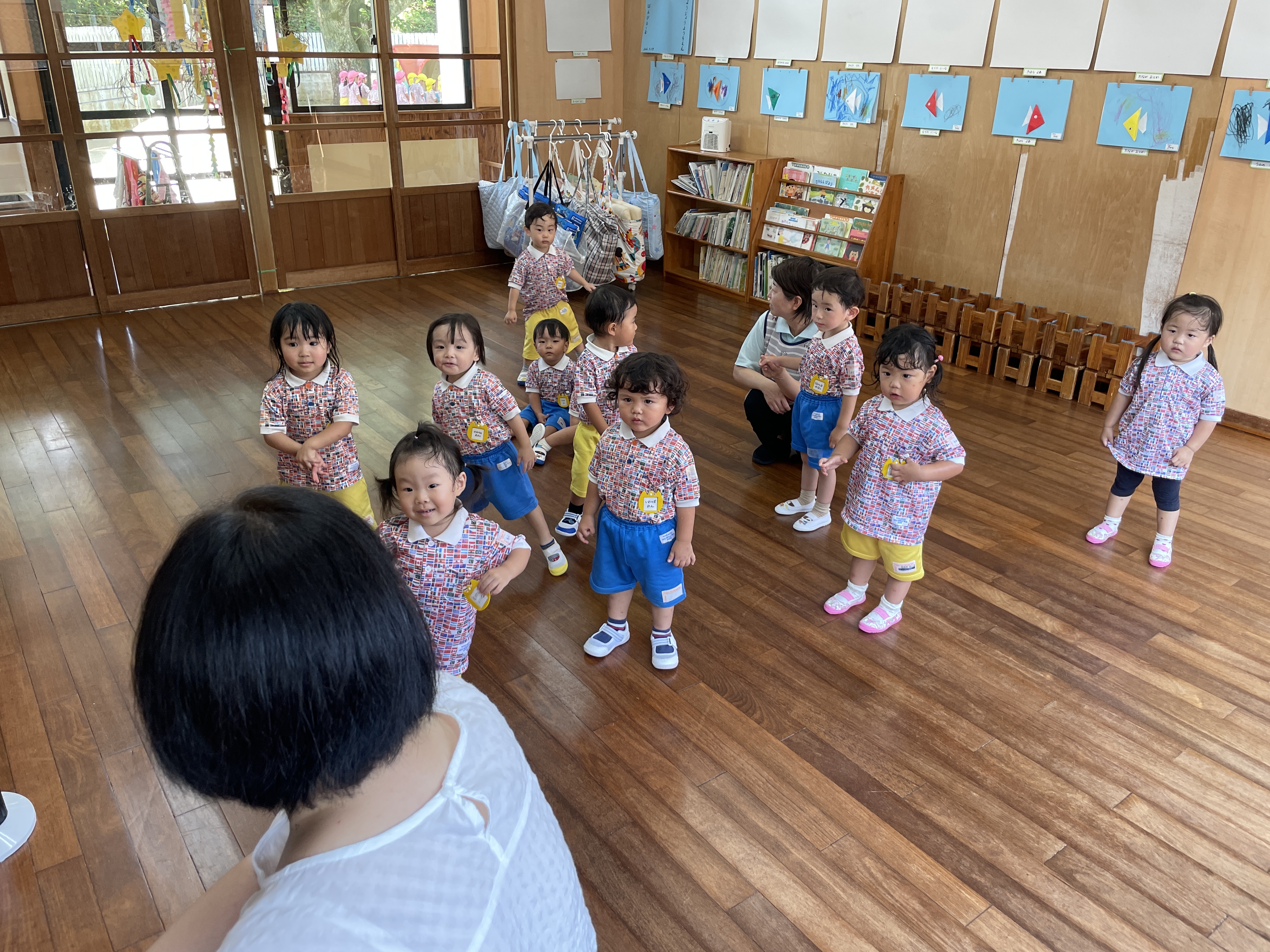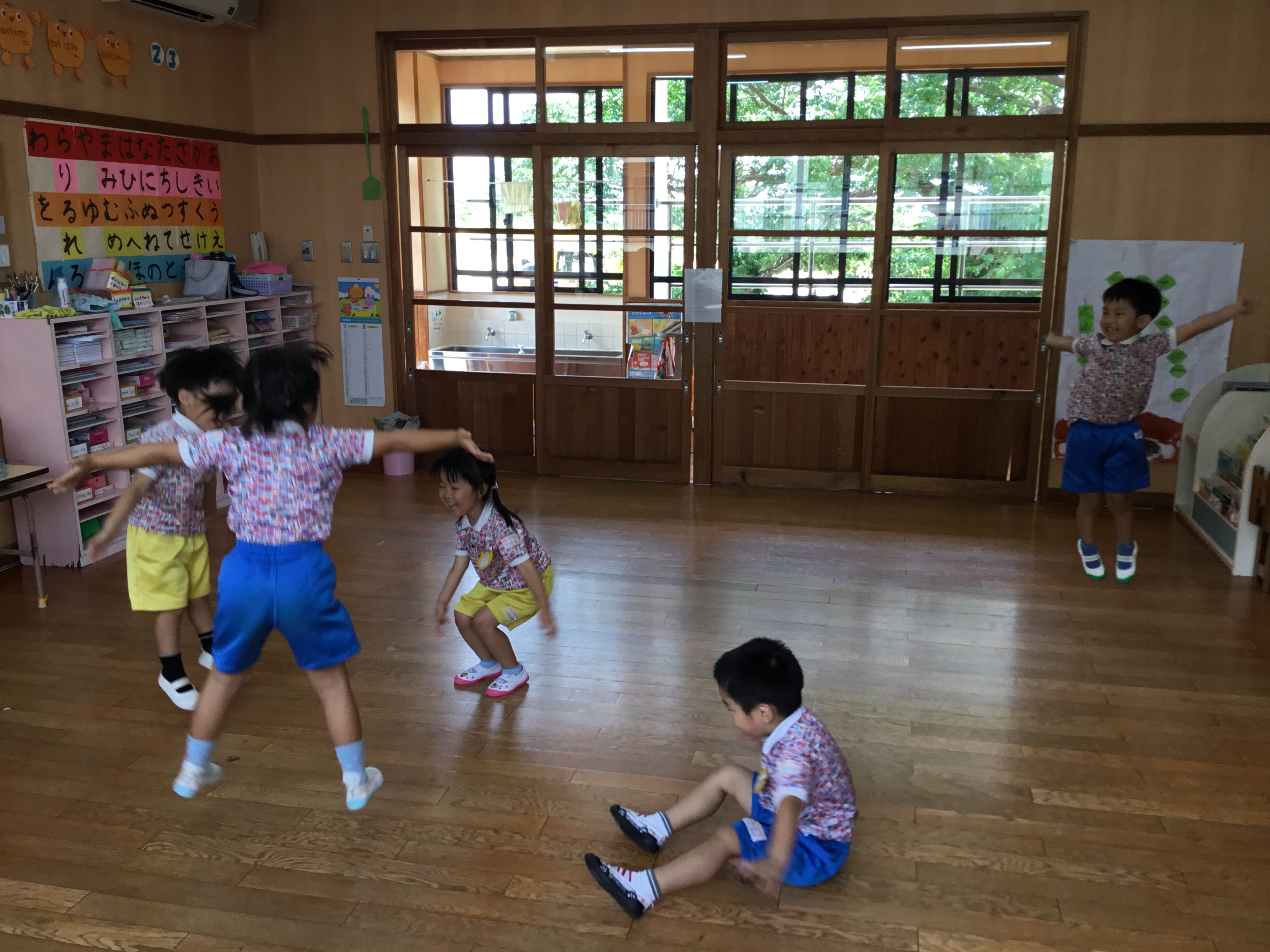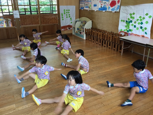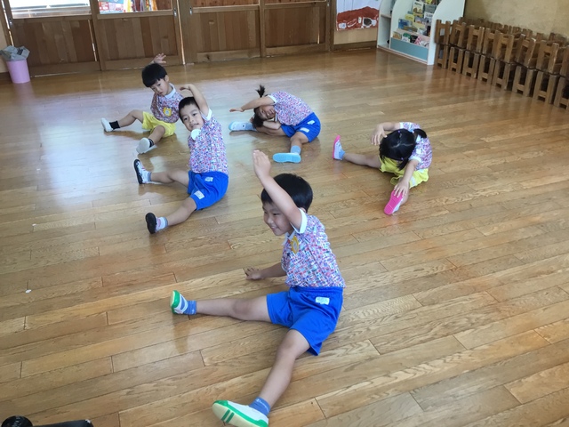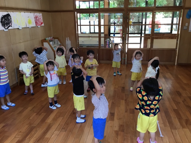 各ルームの歌を歌ったり、リズム遊び、体操と楽しんでいます。