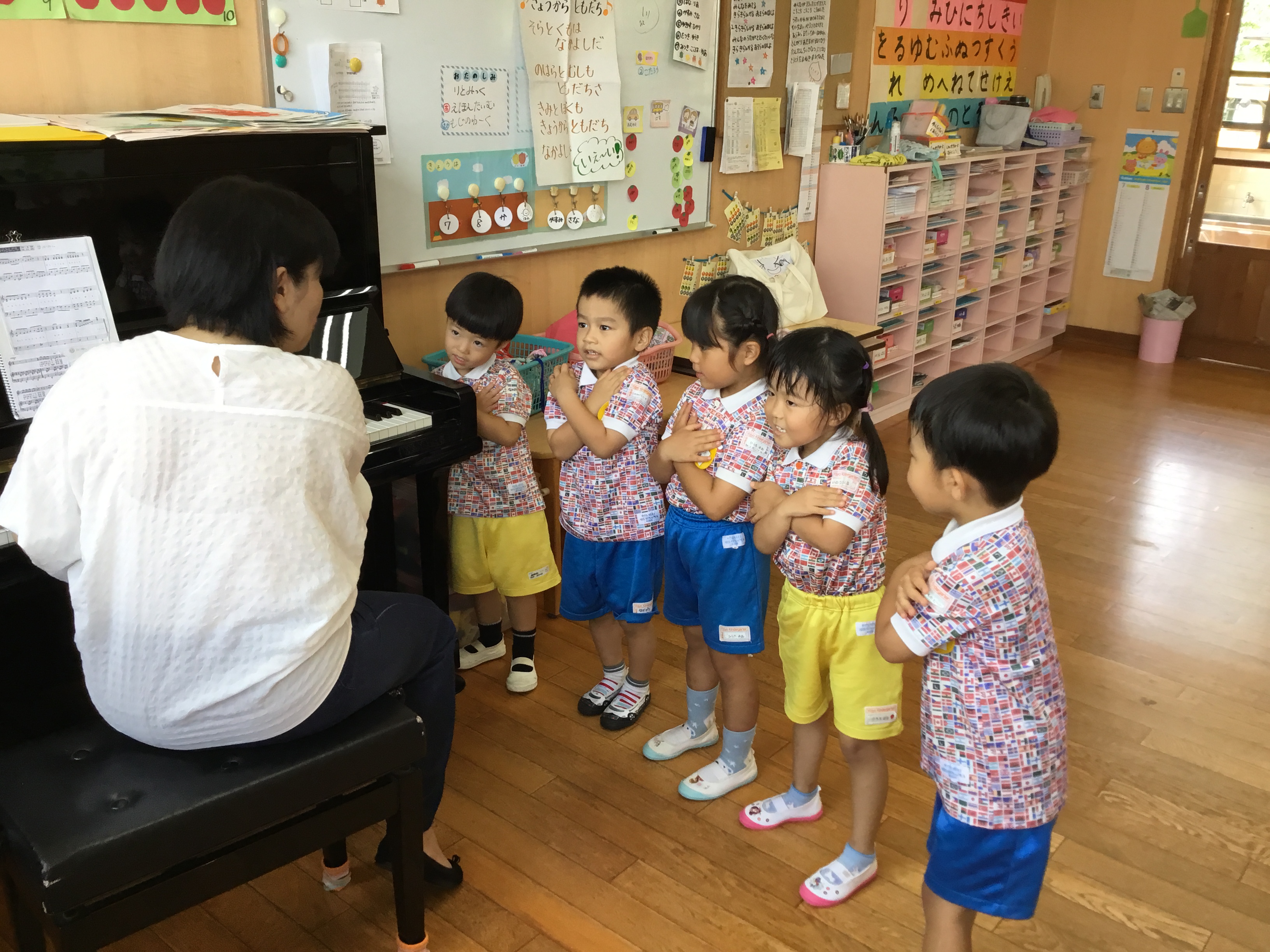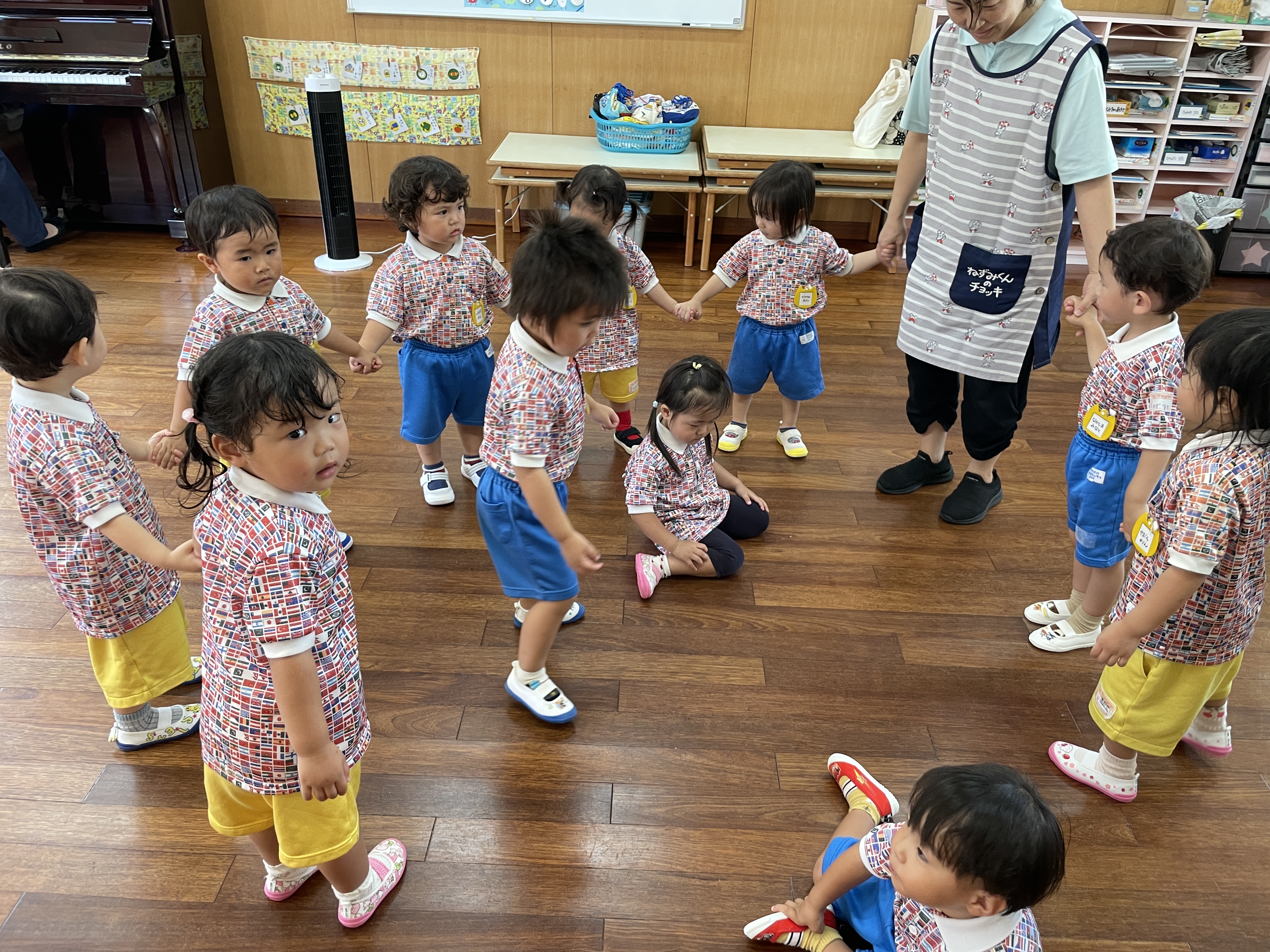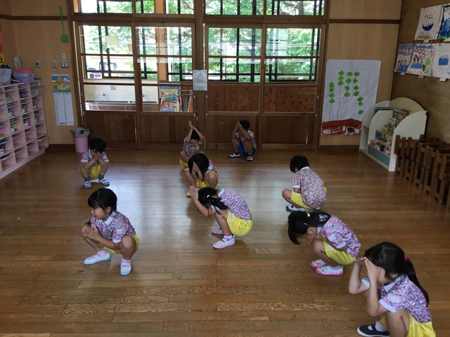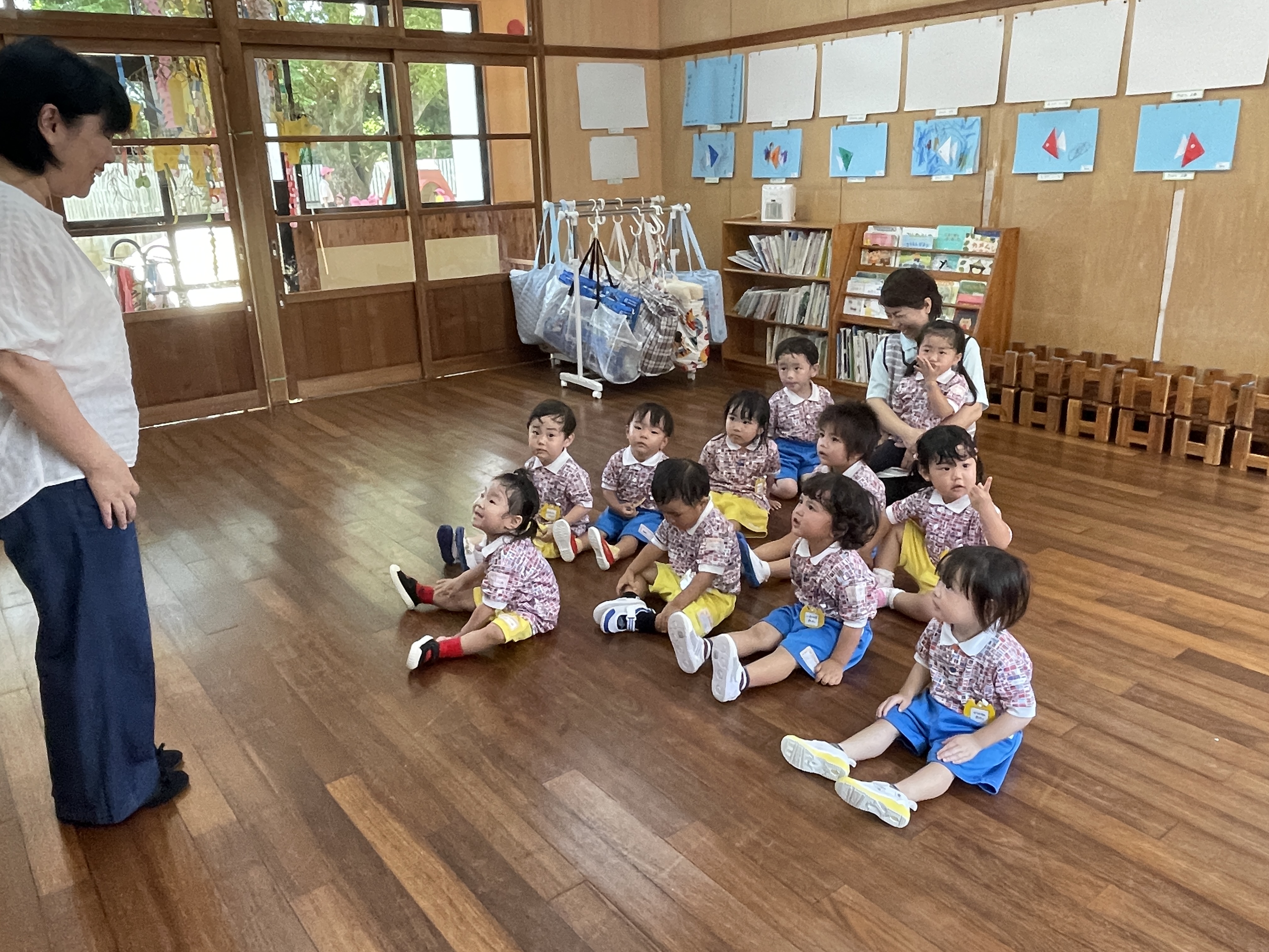 各ルームの歌を歌ったり、リズム遊び、体操と楽しんでいます。