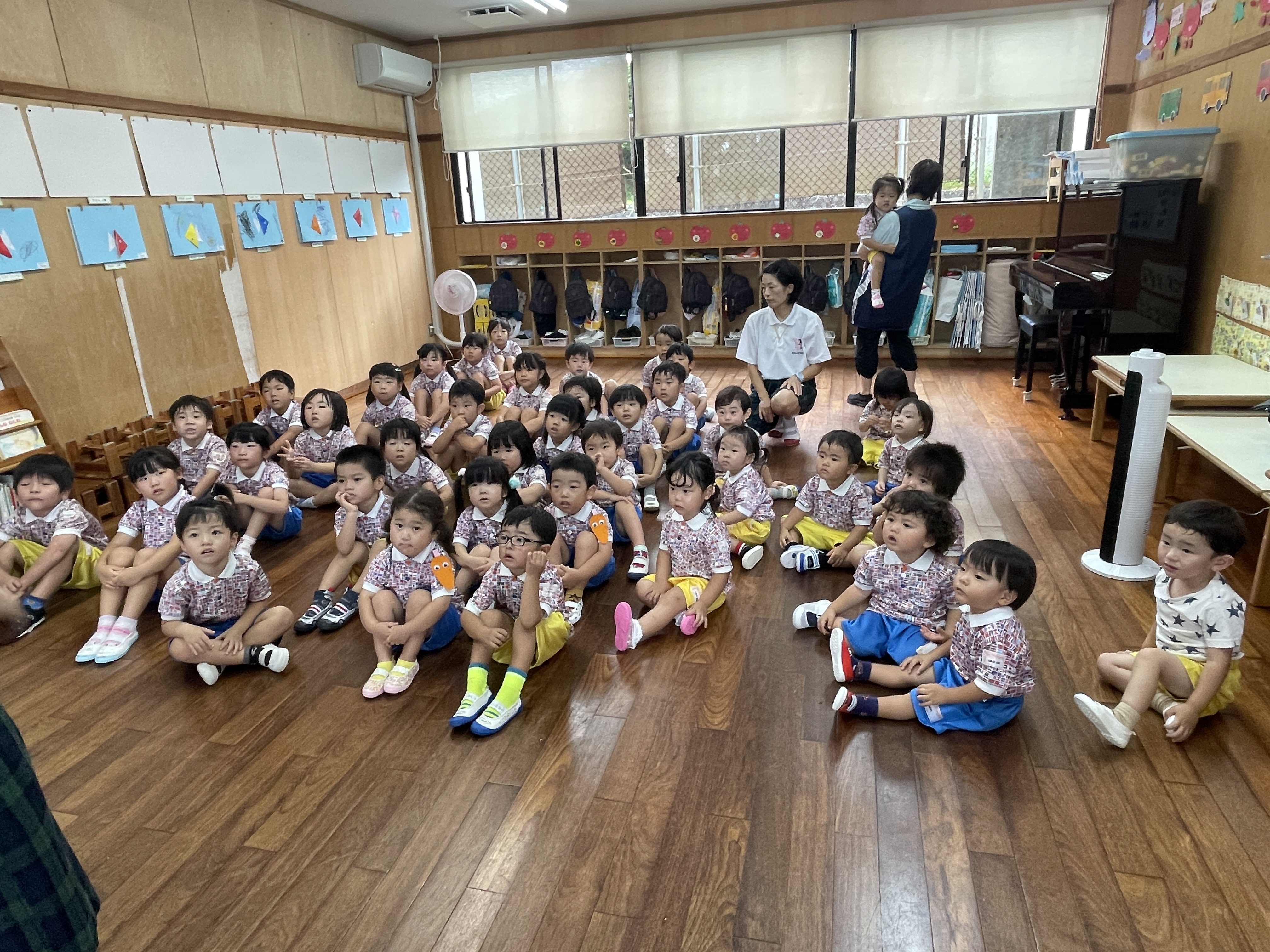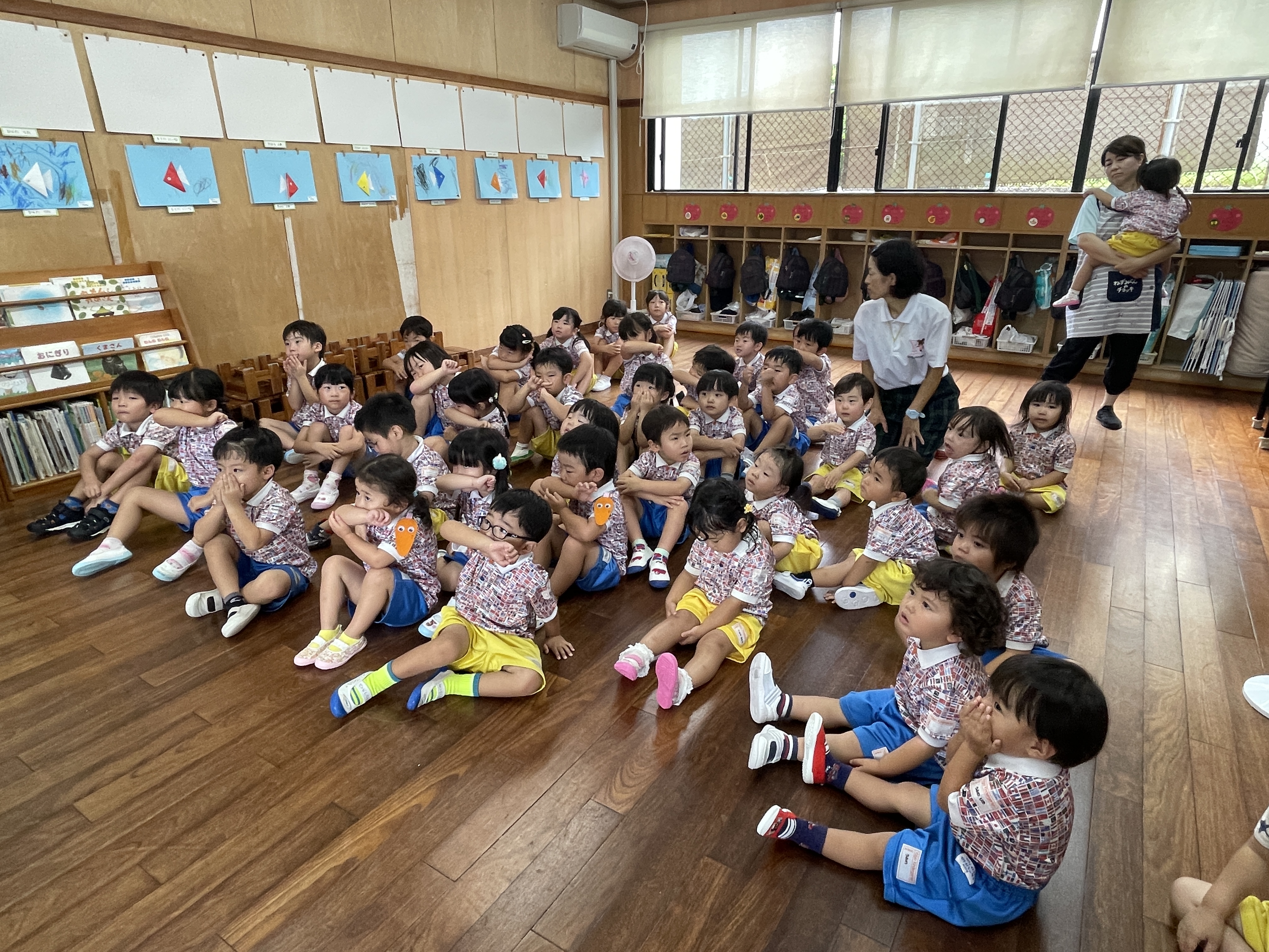 お子様方は突然の「火事でーす」の声と非常ベルの音に驚いていましたが、