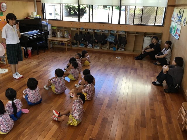 日頃の集まりや保育を見ていただき緊張するお子様方…?