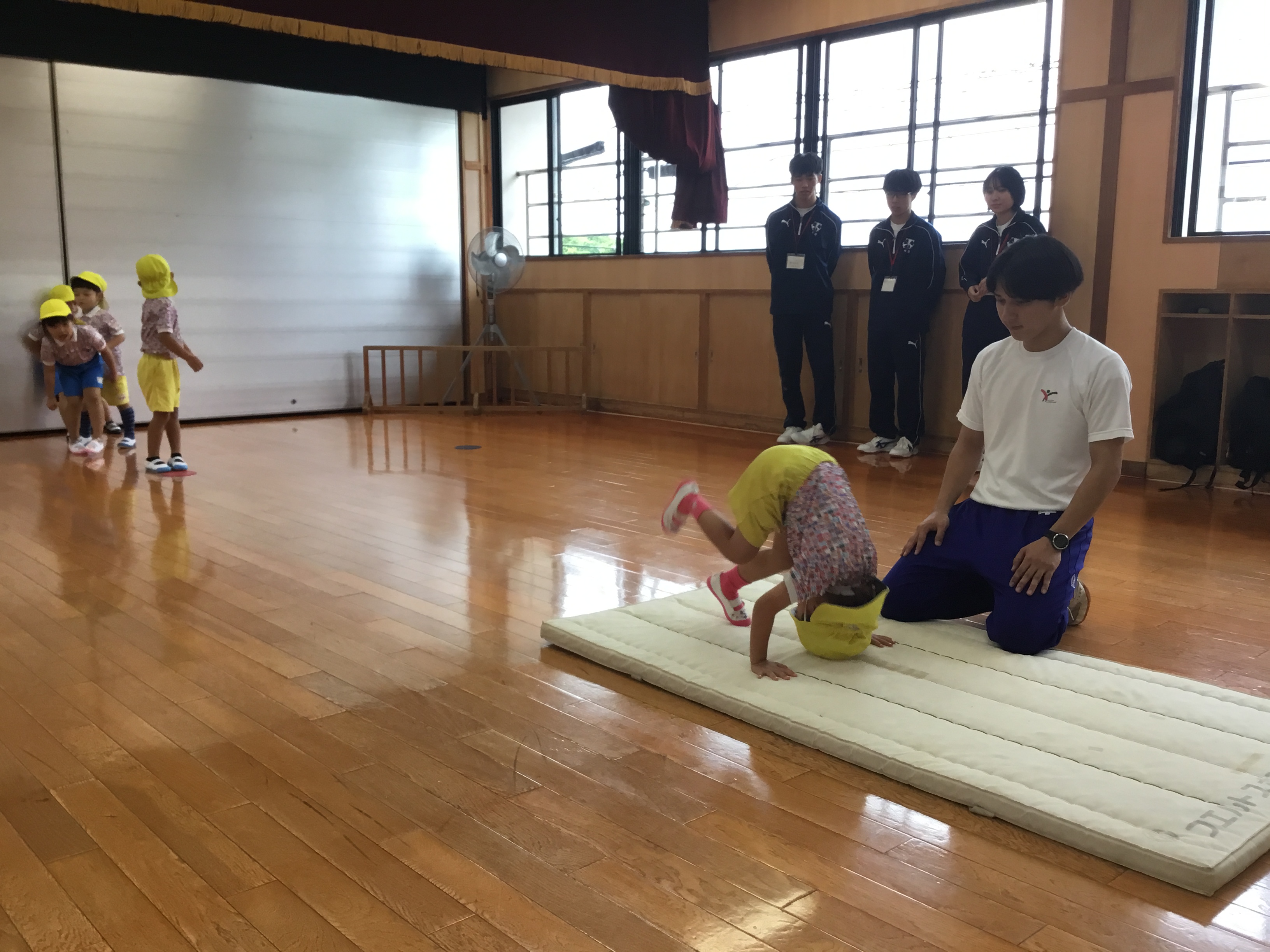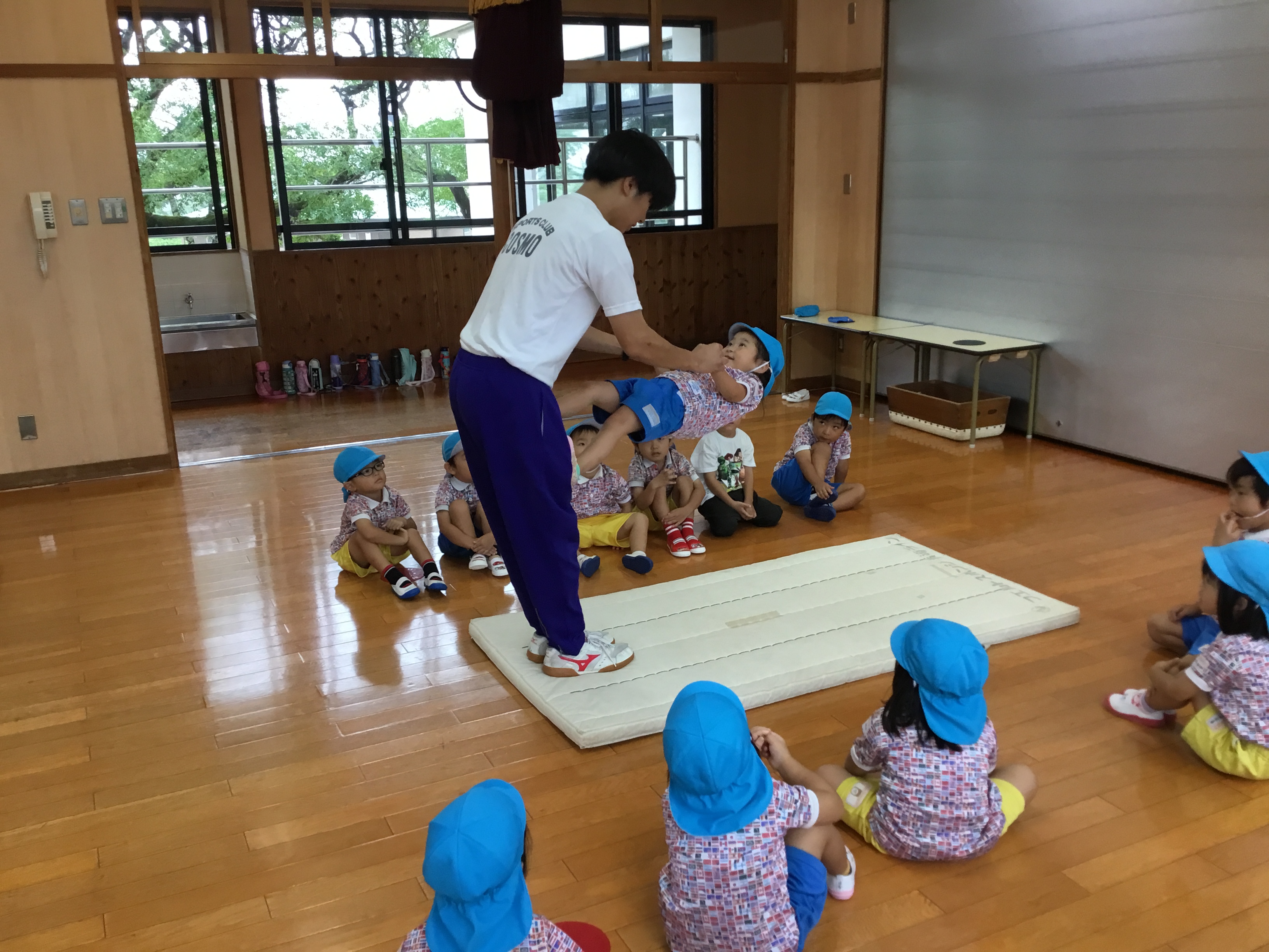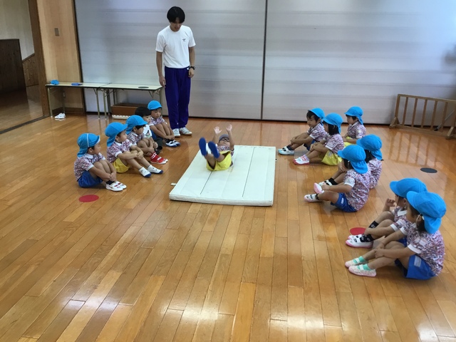 ダンボさんはマットを使って前転をがんばっています。