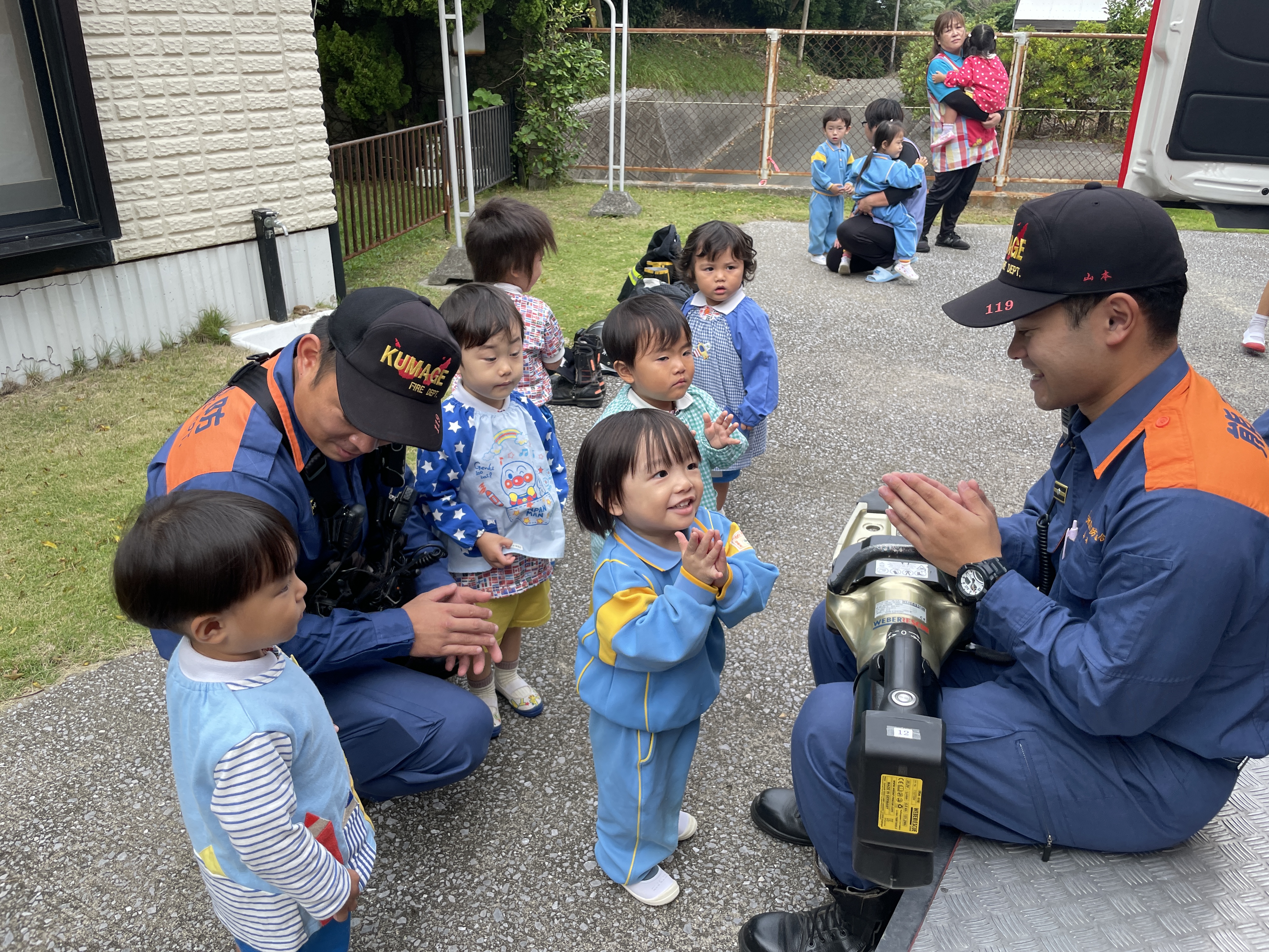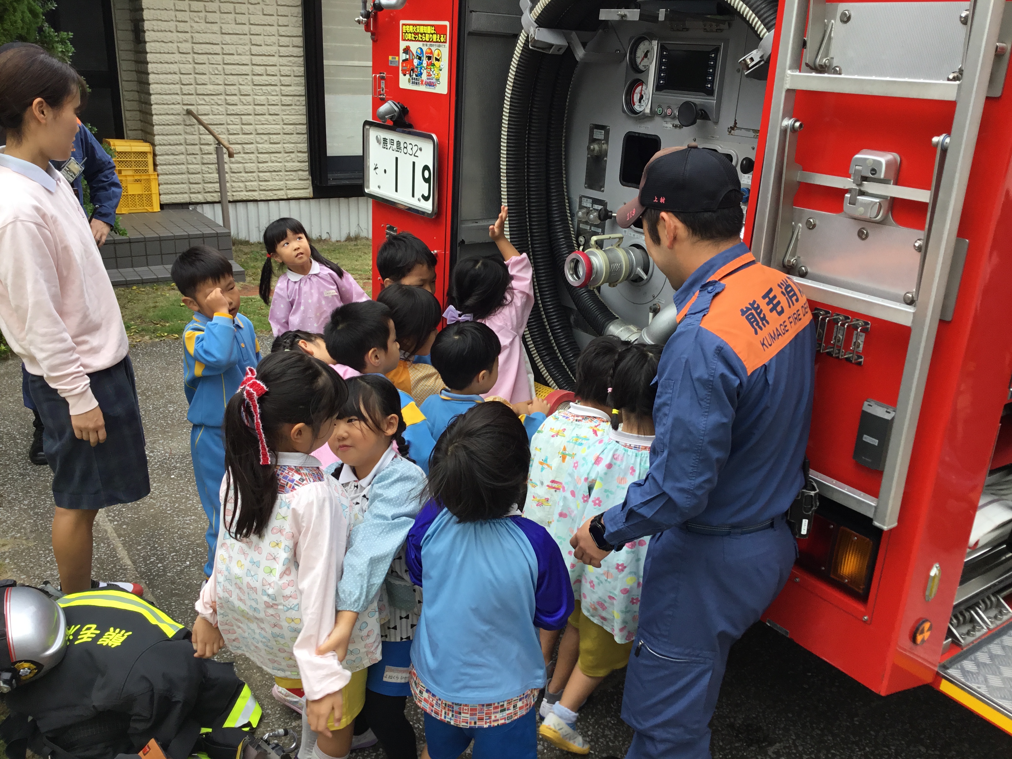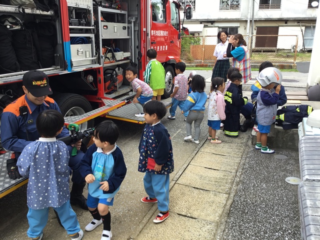 今回は消防車も来ていたので機材を教えてもらったり、消防車に乗せてもらったり