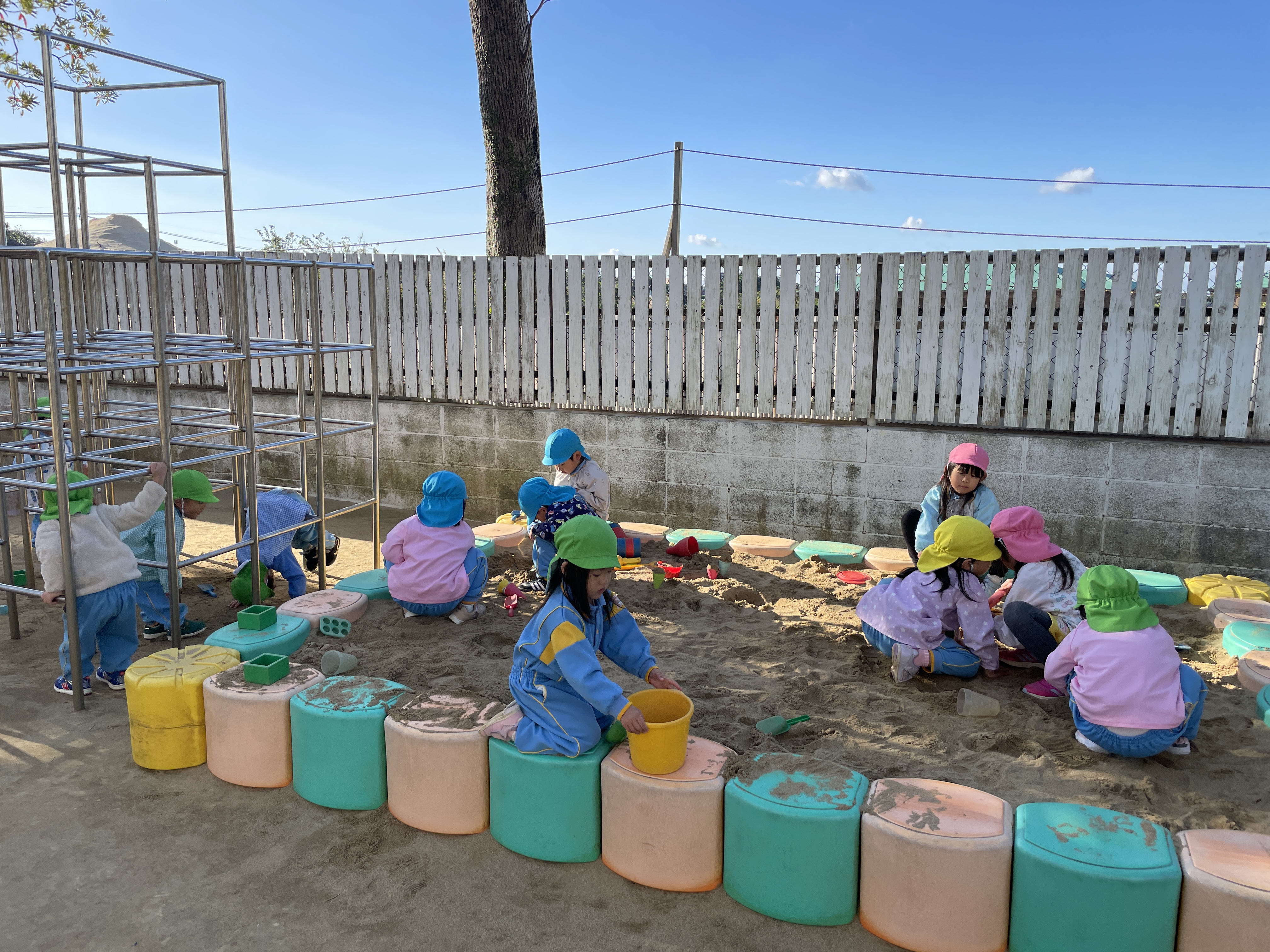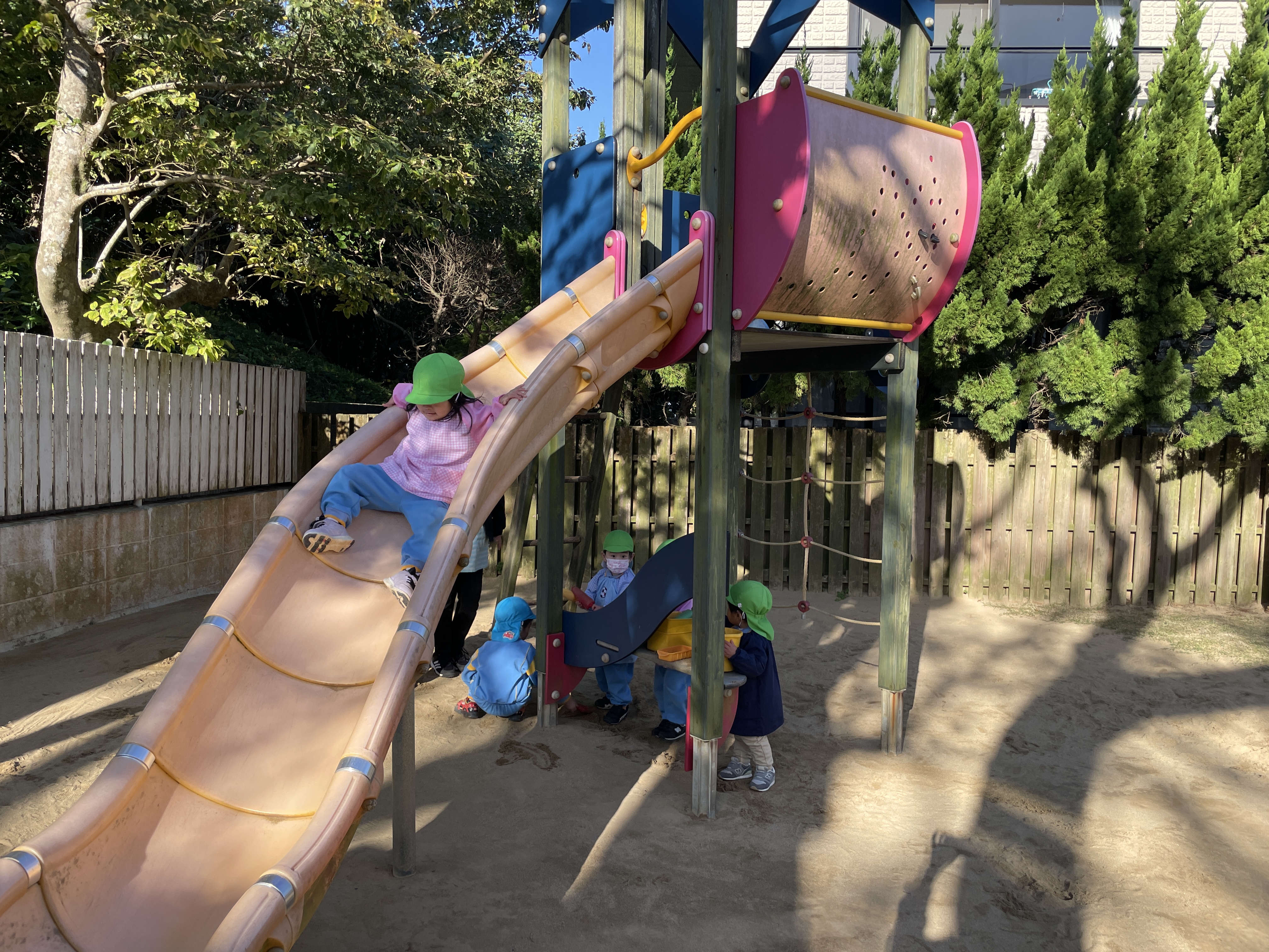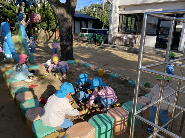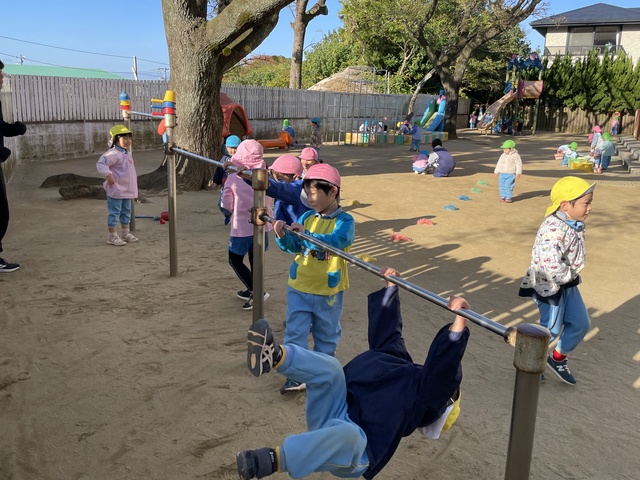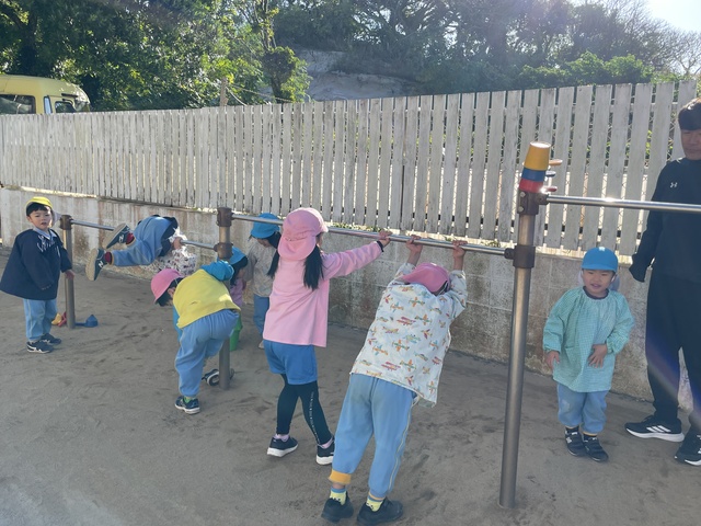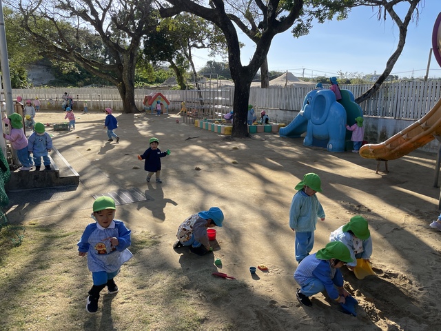 今日は太陽も出ていたので、大喜びで園庭へレッツゴー!!