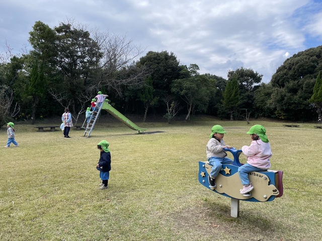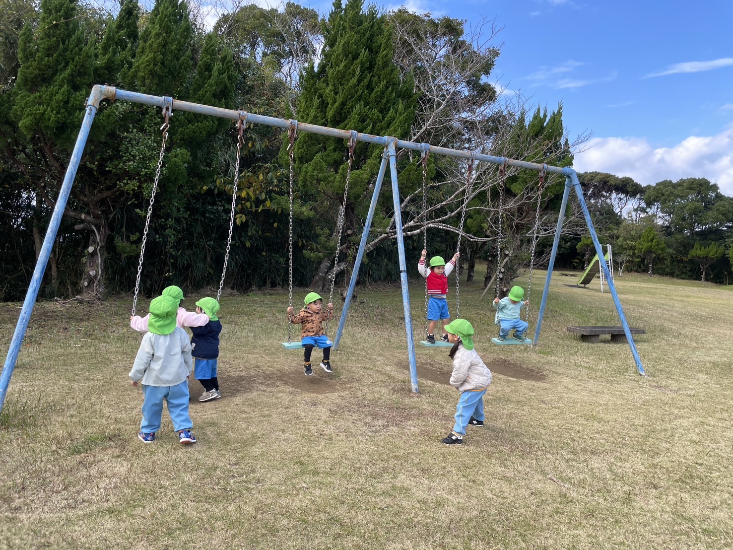 すべり台に鉄棒、幼稚園にはないブランコや遊具で楽しみました。