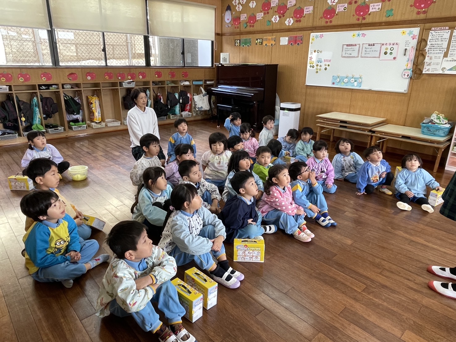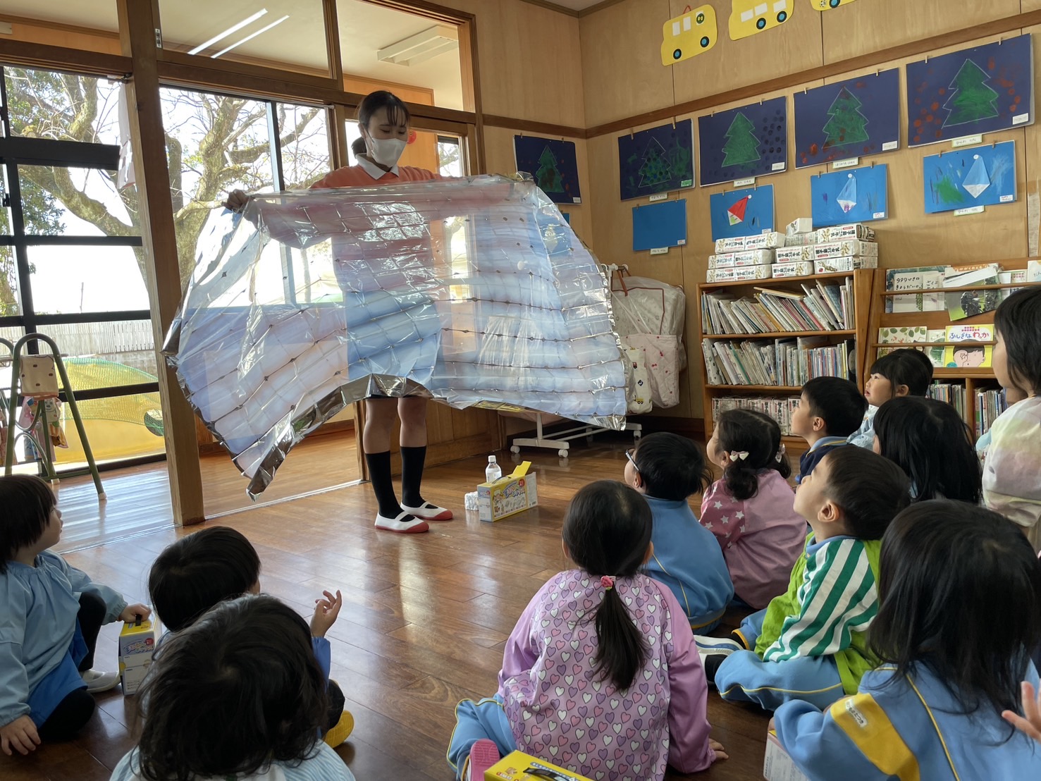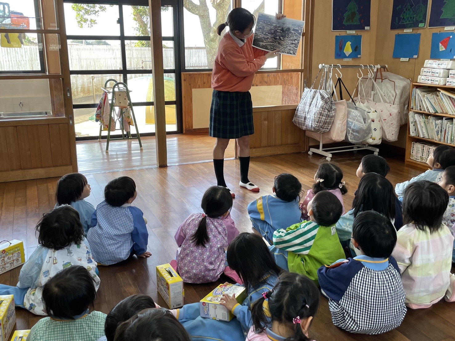 突然の声に驚くお子様方でしたが、地震!とわかると