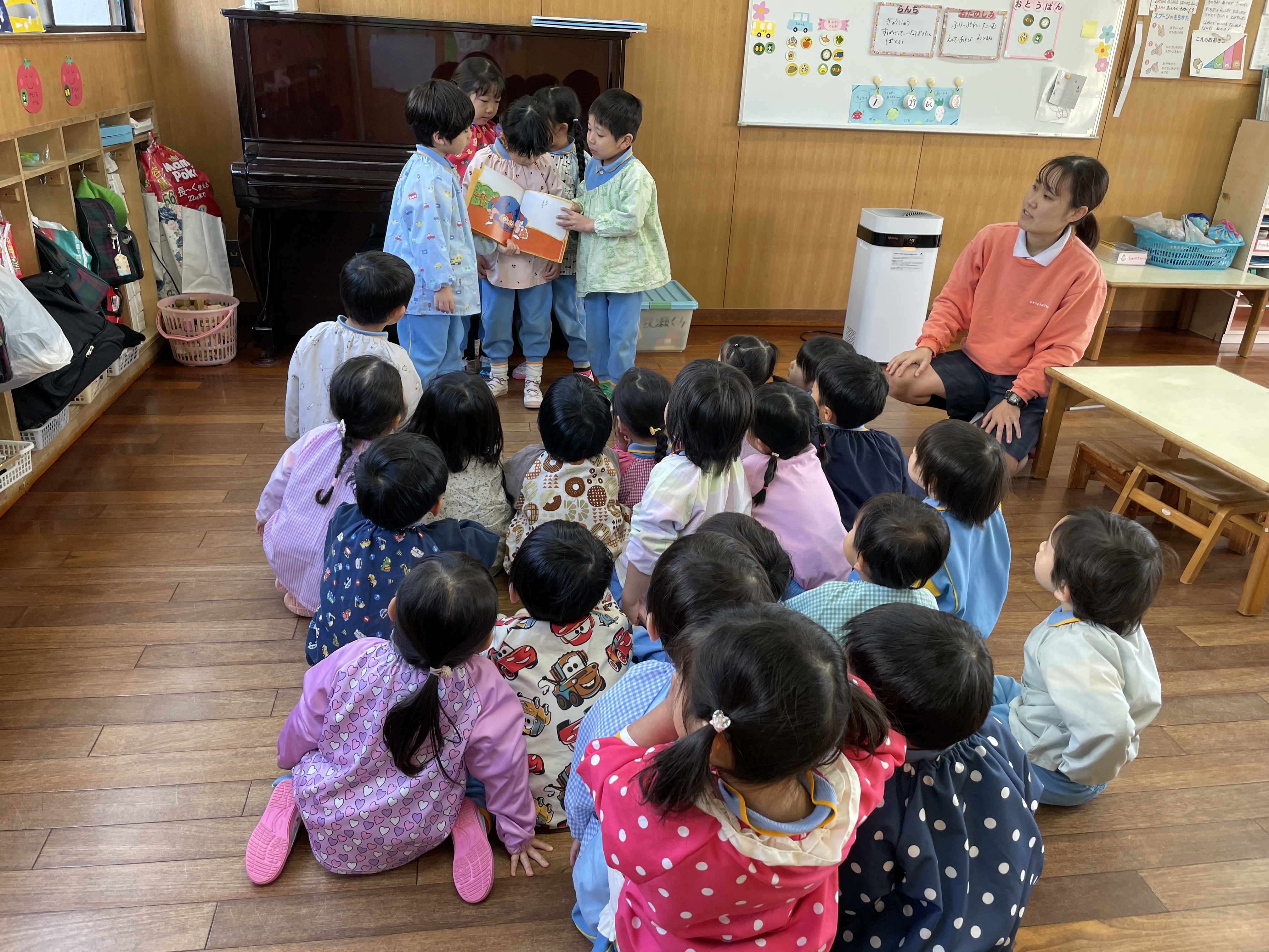 お兄さんお姉さんたちに絵本を読んでもらってスタートしました。