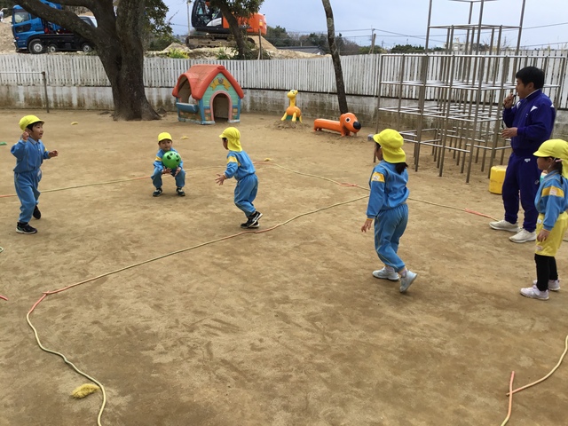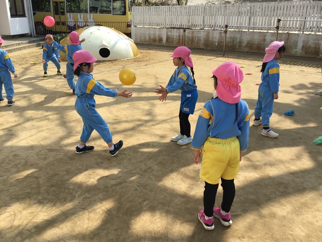 ボールでは転がしドッヂボールを楽しんでいます!