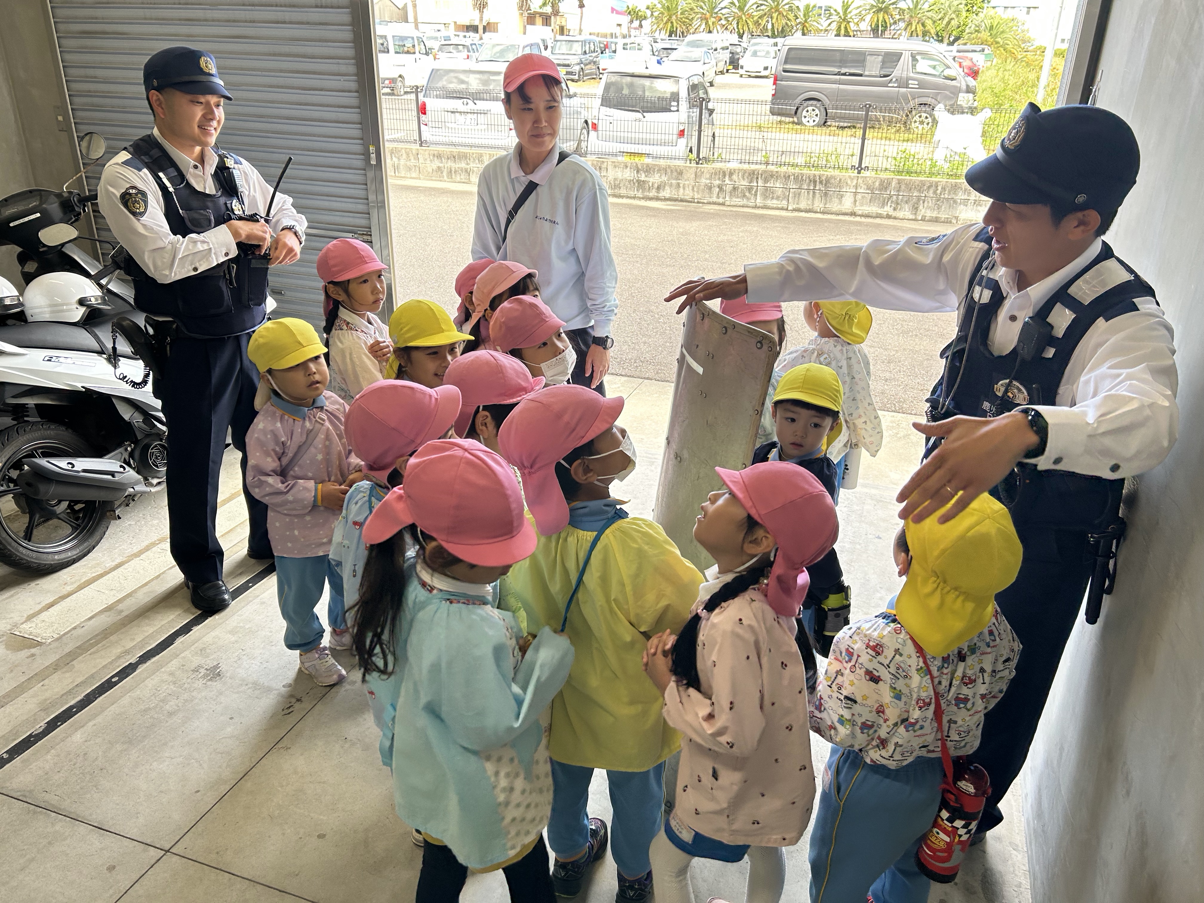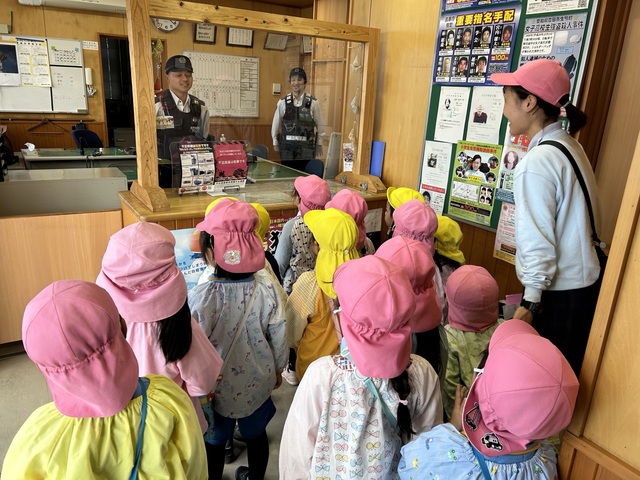 交番ではお仕事の説明を聞いたり、仕事の道具を見せて
