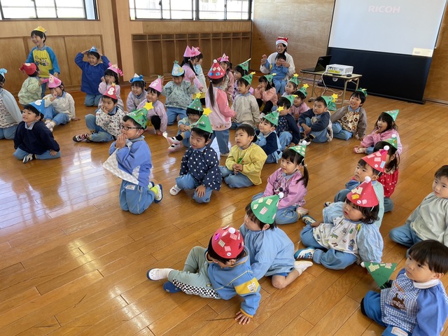 楽しんでいました。サンタさんからお菓子のプレゼントが届き、喜んで食べました。