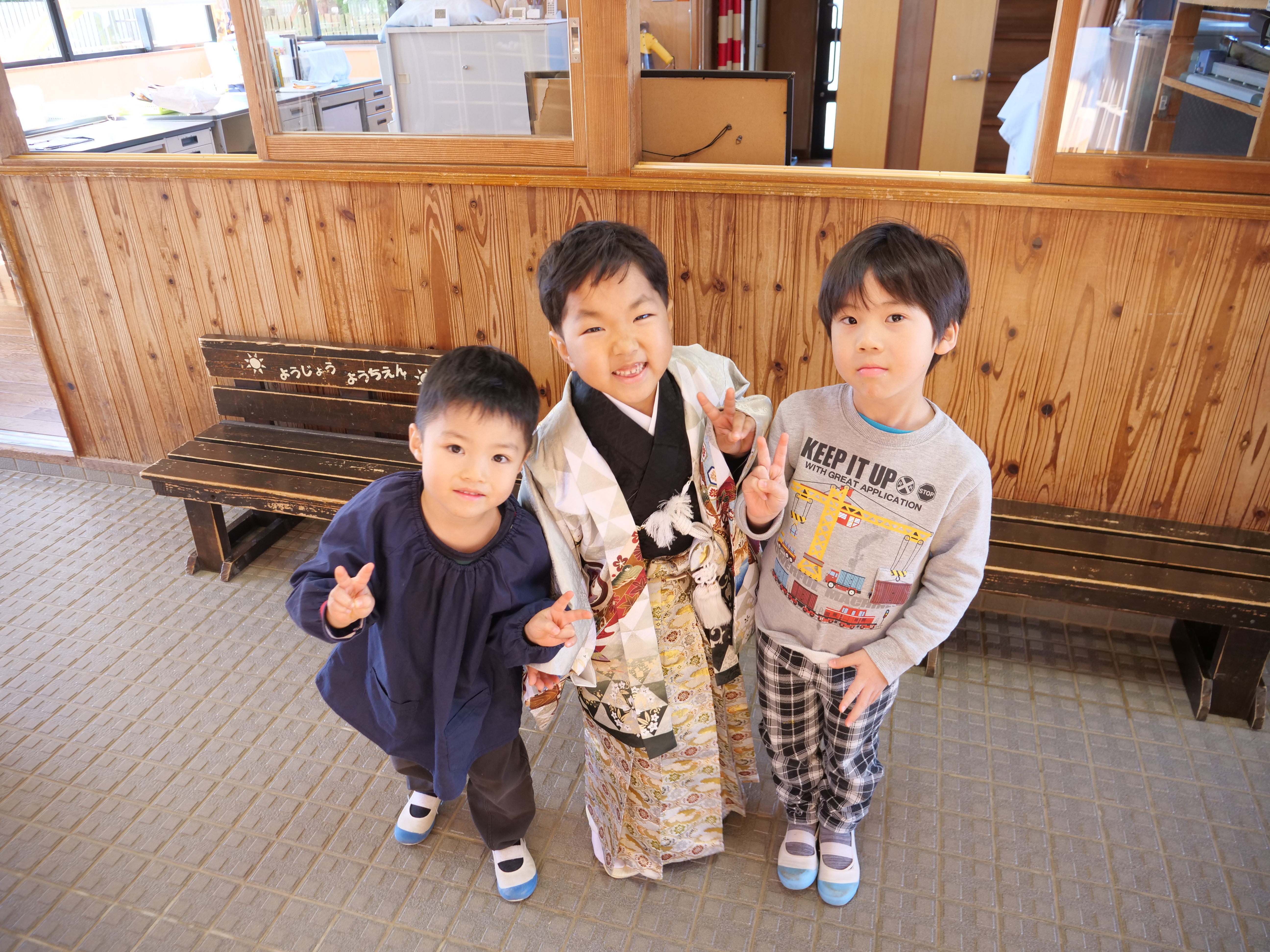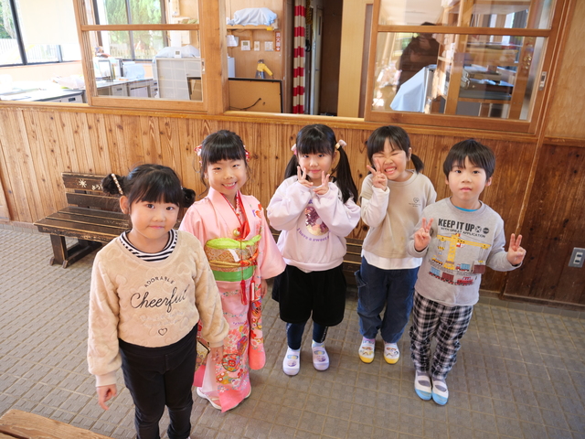七草のお祝いをしたお子様方が晴れ姿を見せに来てくださいました。