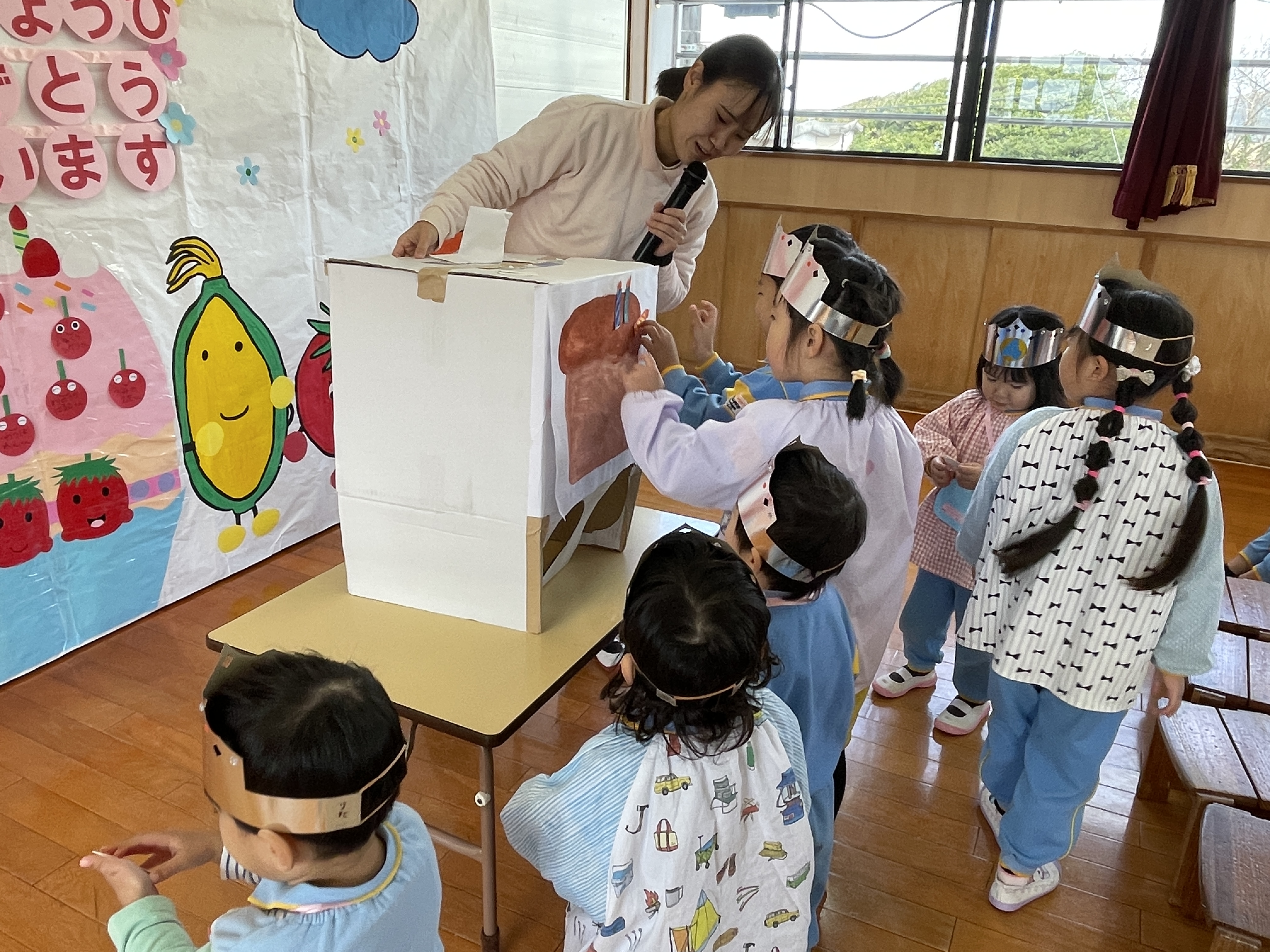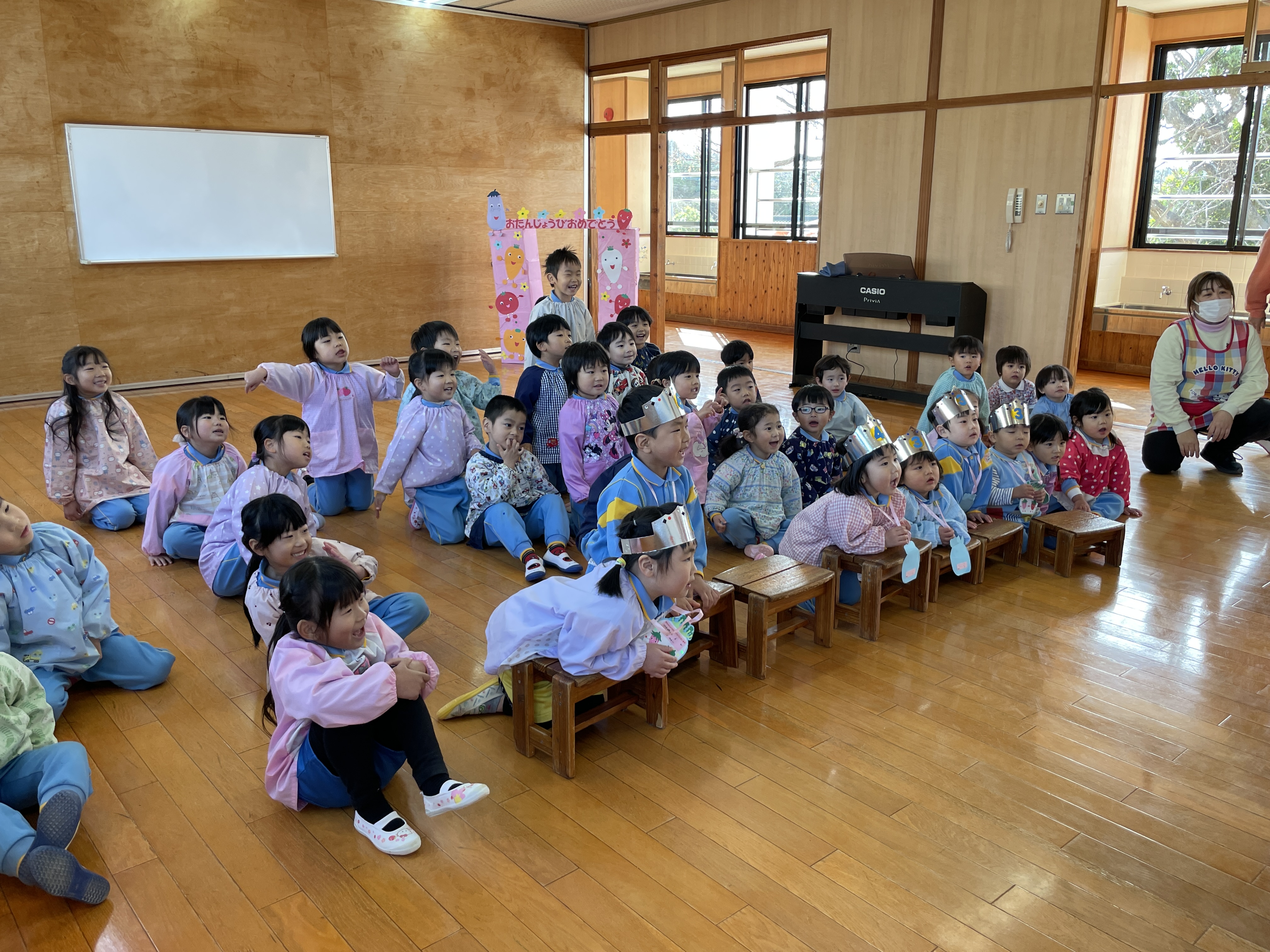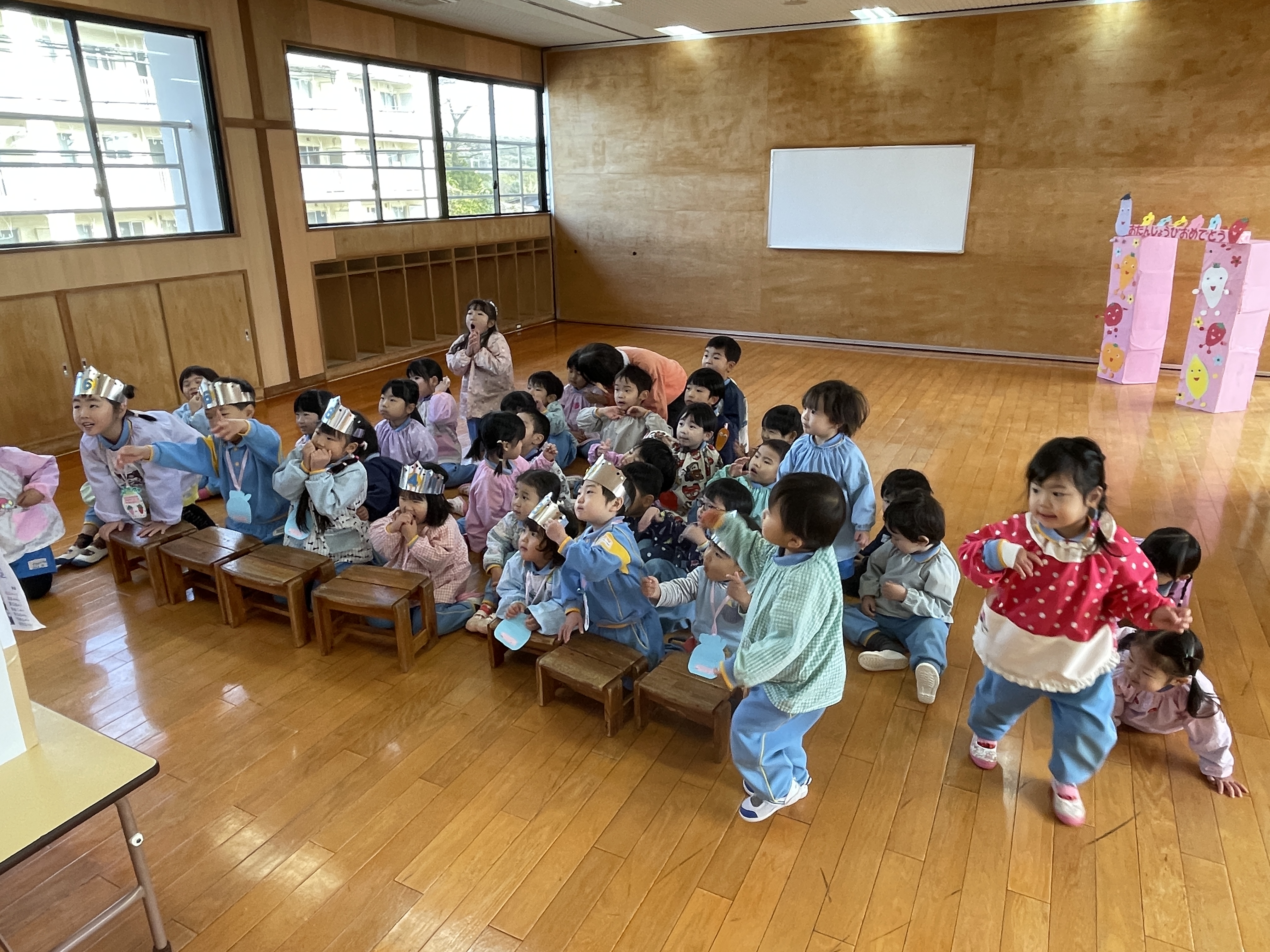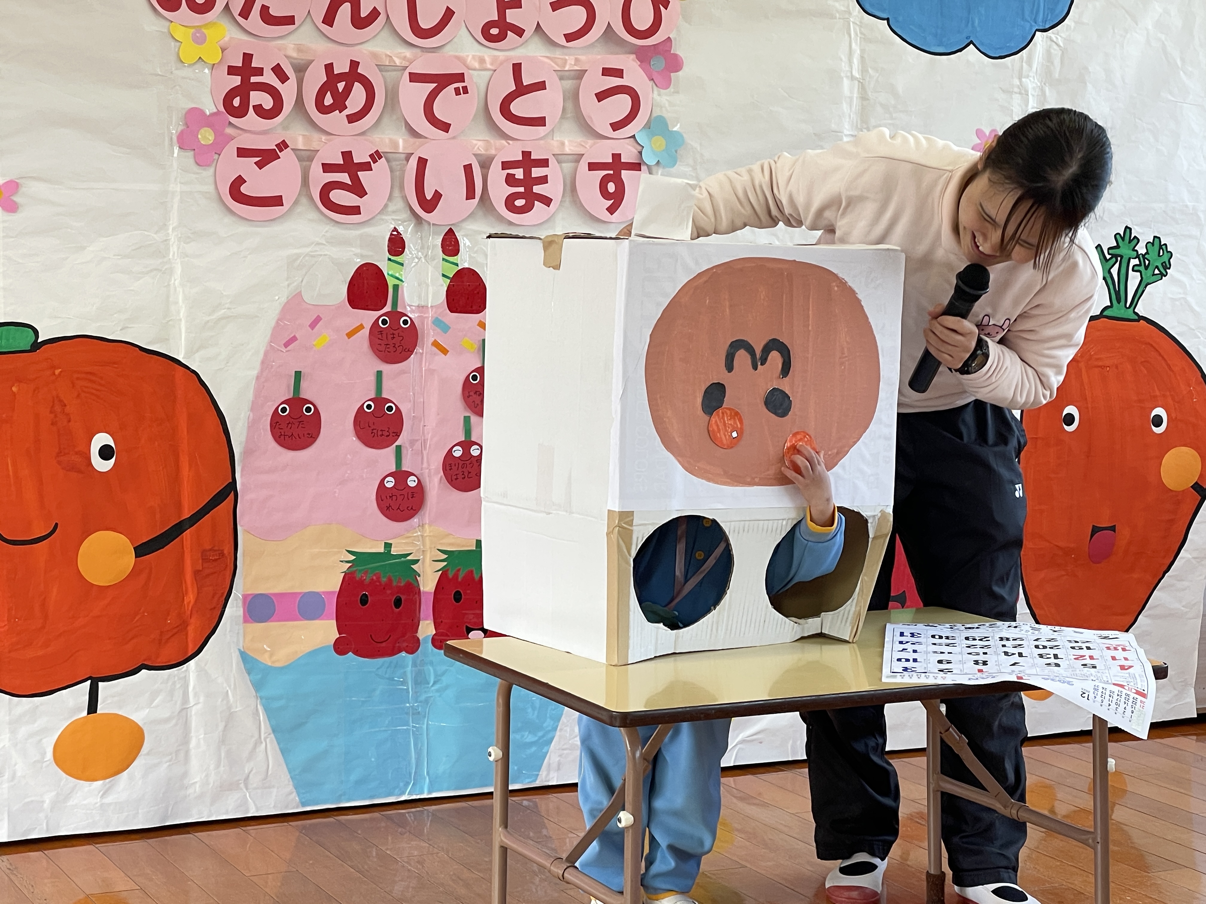 職員からのプレゼントは『福笑い』を使った出し物でした。
