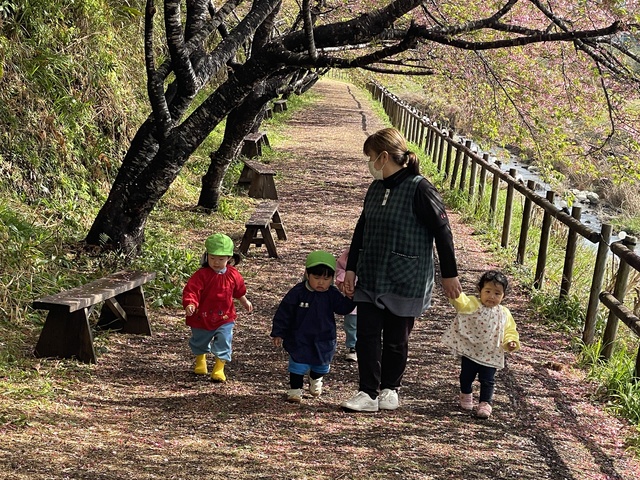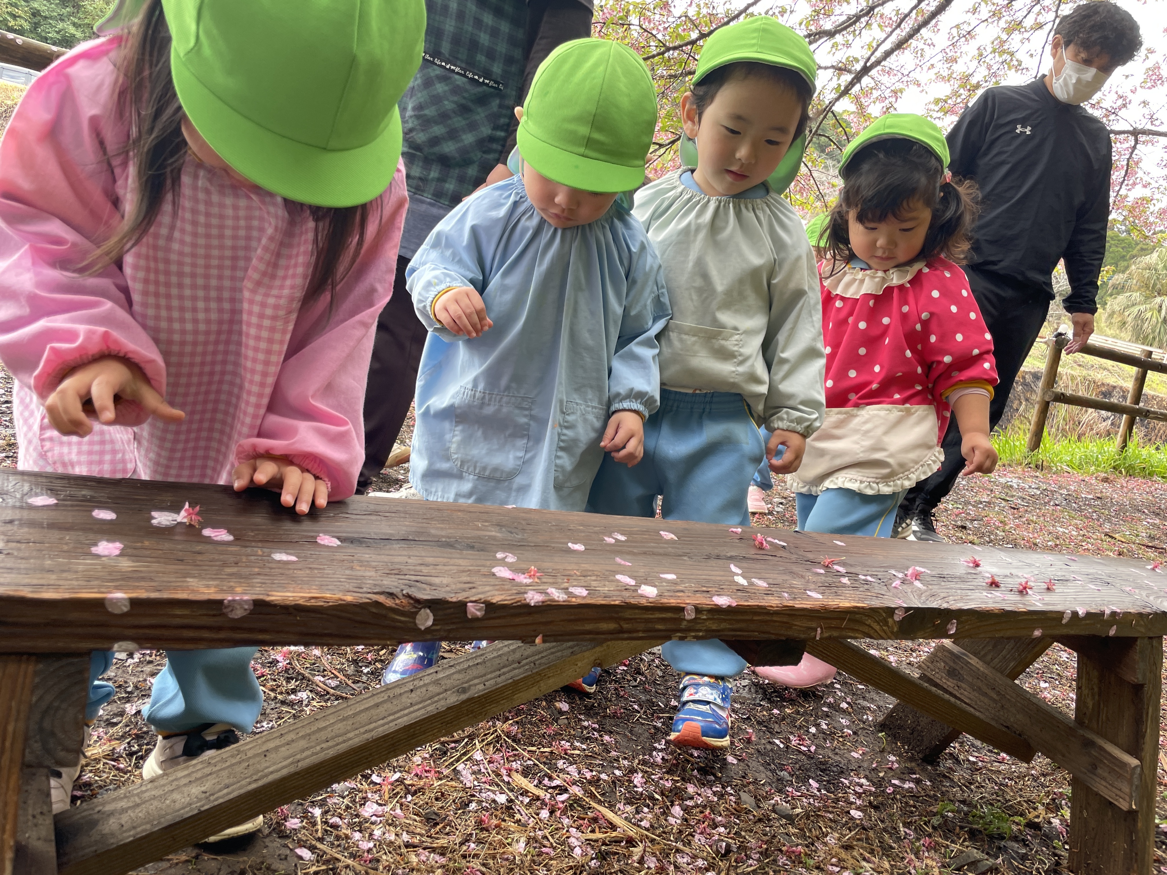 「わぁ~お花がいっぱ~い」「桜が咲いてるね~」「桜の雨が降ってきた~」