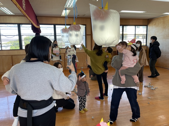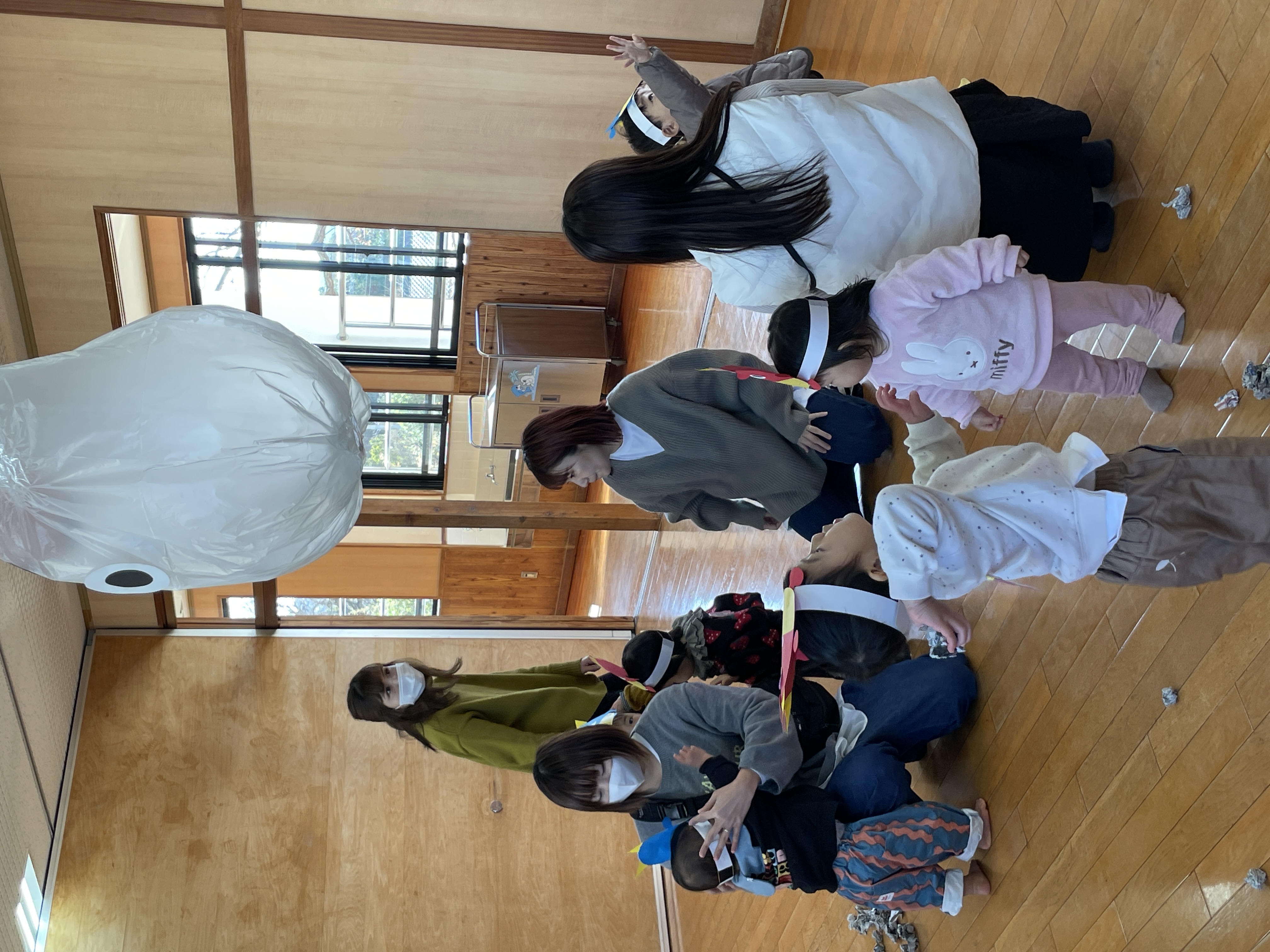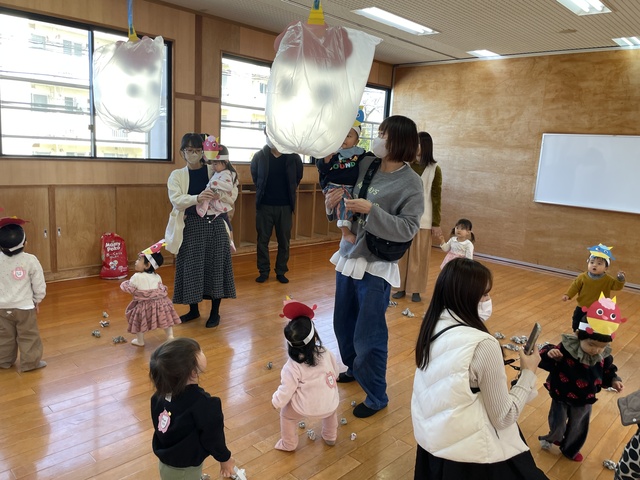 おゆうぎ室には大きい風船の鬼さんがぶ~らんぶ~らん!